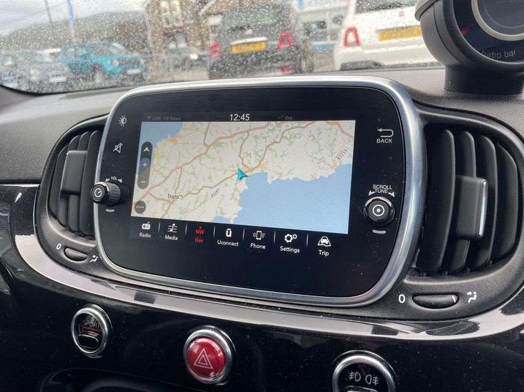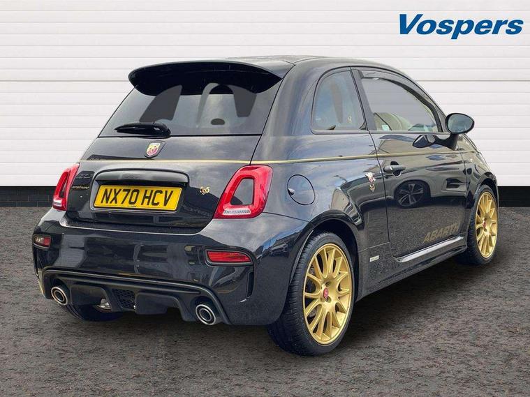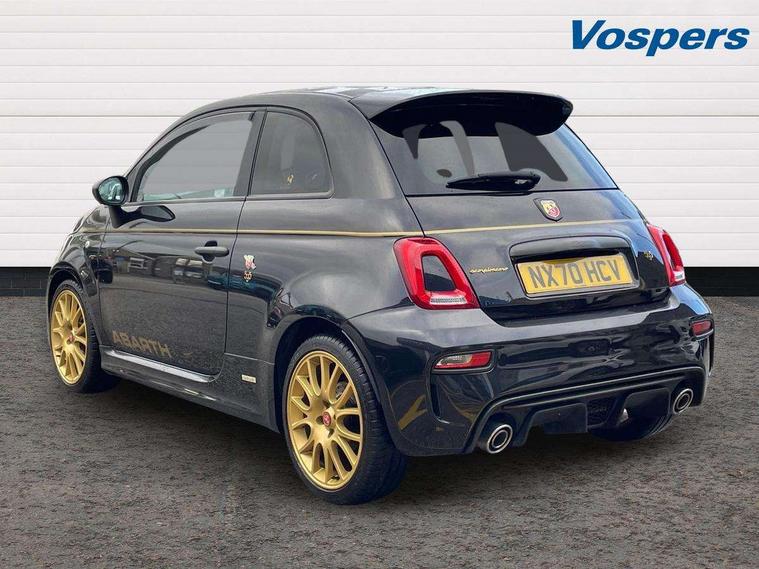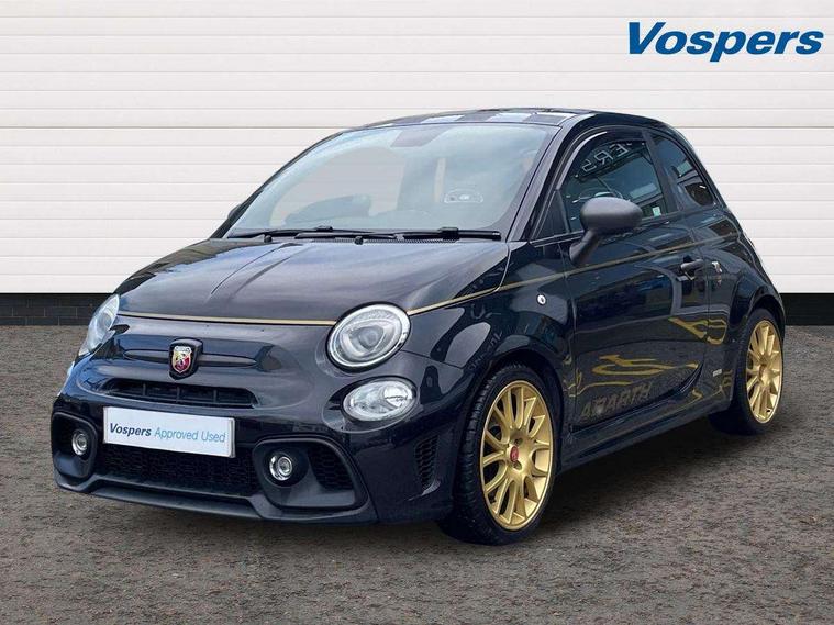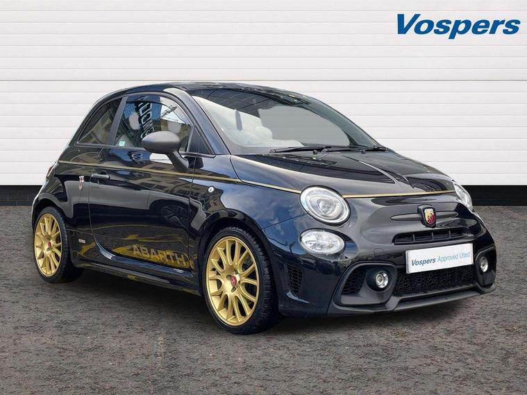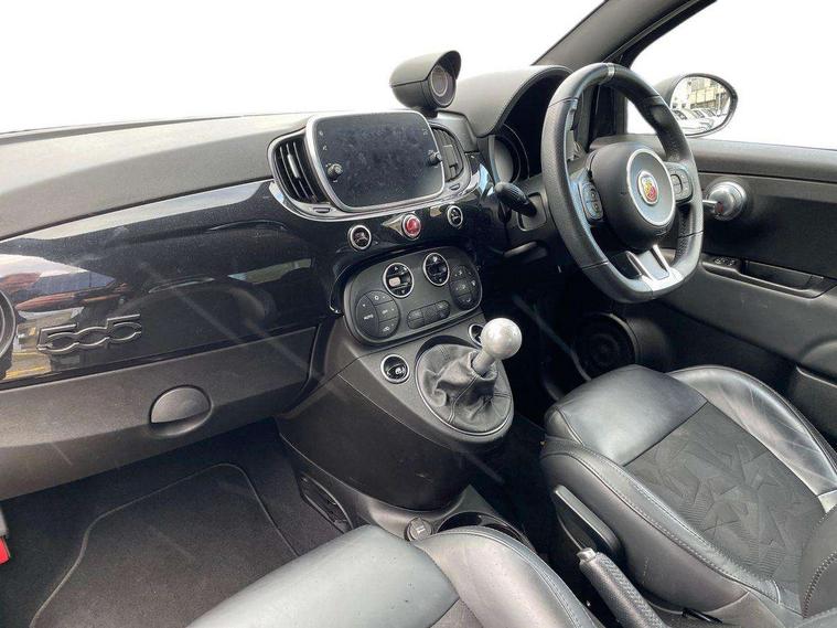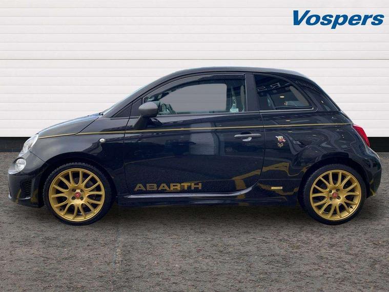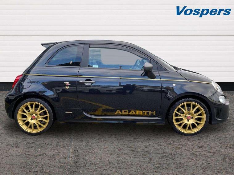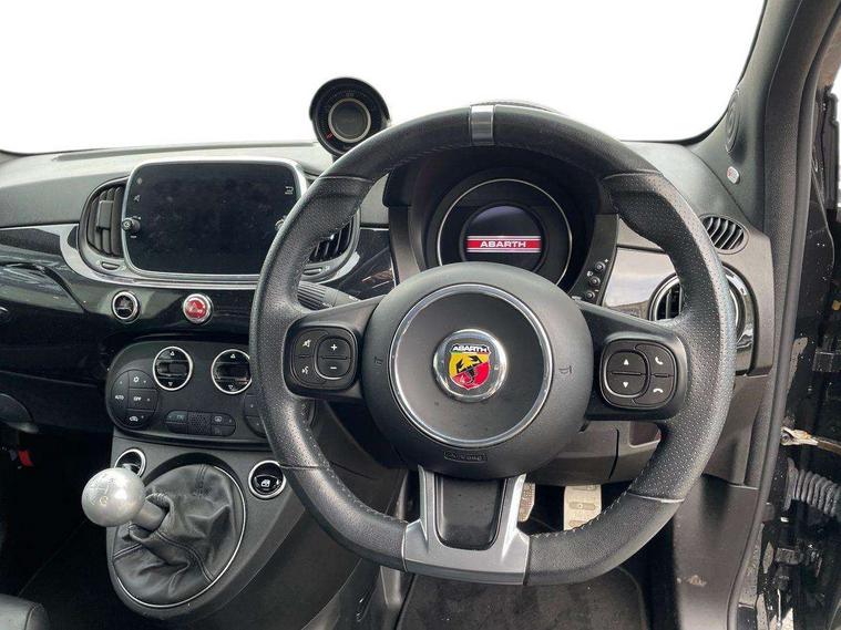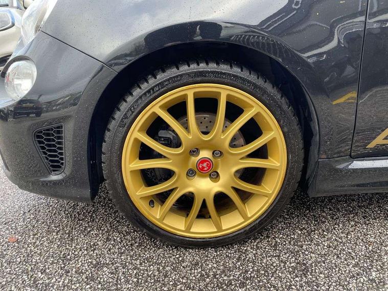 7" TFT instrument display with sports mode, 7" Touchscreen radio with 3D navigation, bluetooth, USB and DAB, Apple car play/Android Auto, Dualdrive PAS, Rear parking sensors, Sports button, Trip computer, U-connect access via mobile, Uconnect live service, Front Mac-Phersonsuspension with anti roll-bar, Front telescopic shock absorbers with Frequency Selective Damping (FSD), Koni rear suspension, Torque transfer control (TTC), Hifi by beats audio system, Abarth chromed rear twin exhaust, ABARTH side sticker, Black door mirrors, Body coloured bumpers, Chequered roof sticker, Dark tinted rear windows, Dusk and rain sensors, Electric front windows, Front bumper with honeycomb grille and embossed Abarth logo, Front fog lights, LED daytime running lights, Metallic paint with golden livery, Poly elliptical headlights, Rear wiper, Window integrated aerial with aluminium roof cap, 12V socket, Abarth sport seats, Alutex gearknob, Alutex sports pedals, Automatic dual zone climate control, Floor mats, Front head restraints, Front passenger seat memory, Glovebox, Height adjustable steering wheel, High performance BMC air filter, Interior stowage net, Italian tricolore embroidered driver and passenger headrests, Leather upholstery with fabric inserts and scorpion embroidery, Rear headrests, Scorpioneoro embroidered driver and passenger headrests, Scorpioneorologo embroidered on passenger and driver seat, Specific interior plaque of authenticity, Sports leather multifunction steering wheel with controls and satin chrome detailing, ABS, Drilled and ventilated front brake discs, Driver and passenger airbags, Drivers knee airbag, ESP + ASR/MSR + HBA + Hill holder, Front side airbags, High performance perforated brakes, Rear brake discs, Tyre pressure monitoring system, Window airbags, Alarm, Central locking, Immobiliser, Remote central locking, Black dashboard with gold finish, Gold 500 logo on dashboard, 17" Formula alloy wheels with gold finish, Fix and go kit,