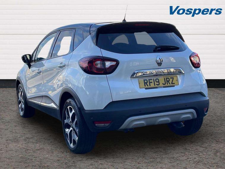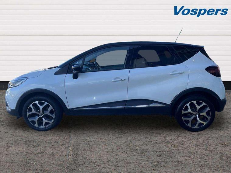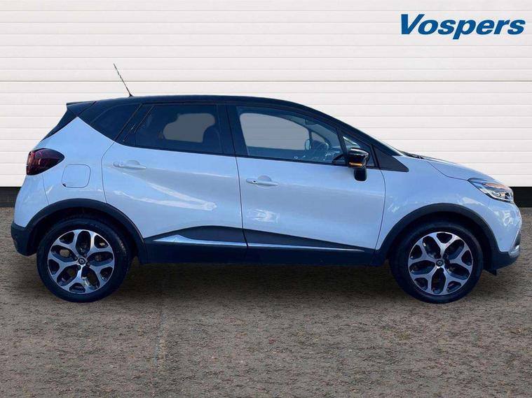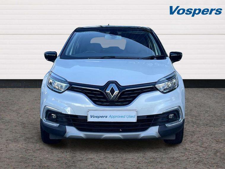 Cruise control + speed limiter, Eco mode, Handsfree parking with side moulding and blind spot warning, Smartphone cradle, Trip computer, Variable PAS, Auxiliary input socket, Body colour door handles, Body coloured bumpers, Electric adjustable/heated/folding door mirrors, Electric front windows + one touch + anti-pinch, Electric rear windows, Extra tinted glass in rear windows and tailgate, Grey front and rear skid plate, LED daytime running lights, LED front fog lights with static cornering light function, Rain sensitive wipers + automatic lighting, Rear wiper, Variable intermittent front wash/wipe, 12V Accessory socket, 3 rear headrests, 60/40 split folding rear seat bench, Automatic climate control with one touch demist function, Centre console storage tray, Compartment in glovebox, Front centre armrest, Front cupholder, Front seat backrest storage nets, Heated front seats, Heating system with pollen filter, Height adjustable driver's seat, Height adjustable front headrests, Height/reach adjust steering wheel, ISOFIX on front passenger and rear outer seats, Leather steering wheel and gear knob, Light harmony dashboard and door panels, Part leather/cloth upholstery, Removable storage between driver and passenger, Reversible boot floor, Storage area on top of dashboard, Storage compartments in doors, Storage space near handbrake, Variable boot floor, Exterior touch pack Chrome - Captur, Interior touch pack Chrome - Captur, Premium pack - Captur, Techno pack with front and rear parking sensors - Captur, 3 point seatbelts on all rear seats, ABS+EBA, Driver/Front Passenger airbags, ESC - Electronic Stability Control + traction control, Front passenger airbag deactivation, Front side airbags(head+thorax), Hill start assist, Rear door child safety locks, Seatbelt warning, Tyre pressure monitor, Automatic door locking, Deadlocking system, Hands free access with keycard and start button, RAID (Renault Anti-Intruder Device) with automatic door locking, Remote central locking, Thatcham Cat 2 engine immobiliser, 17" Emotion alloy wheels with black insert,