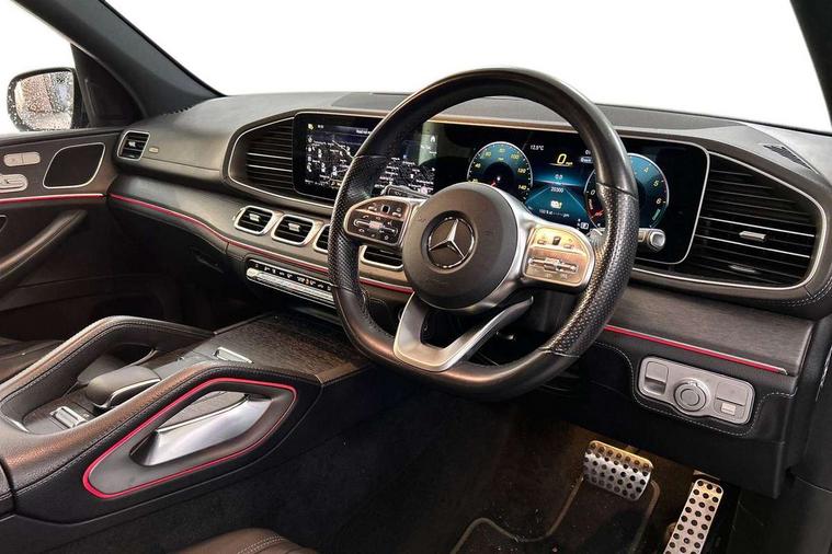 12.3 High resolution wide screen cockpit display with choice of three display styles Classic, Progressive or Sport and unique ambient lighting setting, Attention assist, Blind spot assist, Brake wear warning display, Cruise control with variable speed limiter, Direct steer speed sensitive steering, DYNAMIC SELECT with a choice of driving modes (ECO, Comfort, Sport and Individual), Easy-pack tailgate - Powered opening/closing automatically, ECO start/stop function, Geofencing, Hard-disk navigation, Hey Mercedes Voice activation, High resolution 12.3" multimedia colour display, Lane keeping assistant (LKA), Mercedes me connect including emergency call system, accident recovery, breakdown and maintenance management, Outside temperature display, Remote boot release, Reversing camera, Service indicator (ASSYST), Smartphone integration, Speed limit assist, Status display for rear seat belts in instrument cluster, Traffic Sign Assist, Traffic sign recognition including wrong way warning function and display of posted speed limits in the instrument cluster, Trip computer in multifunction display showing current fuel consumption, 3.7 kW monophase on board charger, 85 litre fuel tank, 9G TRONIC 9 speed automatic transmission, Diesel particulate filter (DPF), Incorrect fuelling protection, Lowered comfort suspension with steel springs and selective adaptive dampening with lowering by up to -15mm, Plug-in Hybrid specifics with 7.4kW AC, 60kW DC charging, Household and public charging cables, Acoustic ambient protection, Pre-entry climate control, Additional USB connection, DAB Digital radio, Dual bluetooth interface, 2 USB ports (type C), MBUX multimedia system, Adaptive brake lights, Adaptive high beam assist, Aerial for GPS, Aluminium look, illuminated running boards with rubber studs, AMG bodystyling front and rear aprons and side skirts in polished aluminium, Body colour door mirrors, Body coloured bumpers, Electric windows with one touch opening/closing and obstruction sensors, Exterior mirrors heated and electronically adjustable, Front green tinted glass, LED high performance headlamps, LED rear lights, Privacy glass - heat insulating dark tinted glass, Radiator grille with integrated star and single louvre in matt iridium silver with chrome trim, Radio aerial integrated into rear window, Rain sensing windscreen wipers, Rear wiper, Roof rail system, Top surround of side windows in polished aluminium, Visible twin pipe exhaust system integrated into bumper, Waistline in polished aluminium, 3 spoke AMG multifunction steering wheel with touch control buttons, trimmed in black nappa leather with flattened bottom section, 4 way adjustable front head restraints and 2 way rear head restraints, 4 way lumbar support, 40:20:40 split folding rear seats, AMG brushed stainless steel sports pedals with rubber studs, AMG floor mats with AMG lettering, Artico man-made leather upper dashboard with contrast topstitching, Automatic child seat recognition sensor, Black roof liner, Central stowage compartment with 12 V socket in centre console, Chrome door pins, Courtesy lights in rear grab handles with reading light functionality, Electric height/reach adjustable steering column, Front centre armrest with stowage compartment and illuminated grab handles, Gearshift paddles on steering wheel, Glove compartment - lockable, air conditioned and illuminated, Heated front seats, Interior lighting - 64 colour Ambient lighting, Seat occupancy sensor for front passenger seat, Second row three seats, Sports steering wheel, Sunvisors with illuminated vanity mirrors, Touchpad, Two zone automatic climate control, Anti theft Protection package - GLE, Memory package - GLE, Mirror package - GLE, Parking package - GLE, Active bonnet, Active braking assist, Adaptive brake system with HOLD function and brake drying in the wet, Airbags - driver and front passenger, with extended adaptivity for front passenger airbag, Airbags - sidebag for driver and front passenger with combined thorax/pelvis bag, Airbags - windowbags, Anti-lock braking system (ABS), Childproof locks manually operated for rear doors and electrically operated for rear power windows, Drivers knee airbag, Electronic parking brake, Electronic Stability Programme (ESP), ISOFIX child seat attachment points two outer rear seats, Perforated front brake discs and brake calipers with Mercedes-Benz lettering, Pre-Safe anticipatory safety system, Three point rear seat belts, Tyre pressure monitoring system and loss warning system, Warning triangle and first aid kit, Alarm system/interior protection/immobiliser, Central locking with interior switch, automatic locking and crash sensor with emergency opening function, Chrome surround in electric key, Keyless Go starting function, Dashboard and door, anthracite open pore oak wood trim, Trim - Centre console, anthracite open pore oak wood trim, 20" AMG 5 twin spoke light alloy wheels, Summer tyres with noise reducing absorber, TIREFIT with tyre inflation compressor,