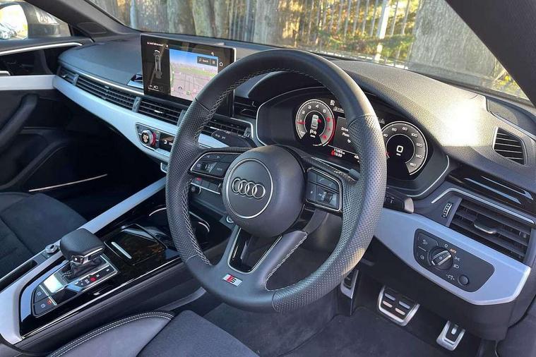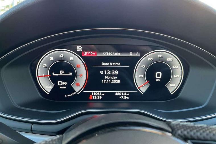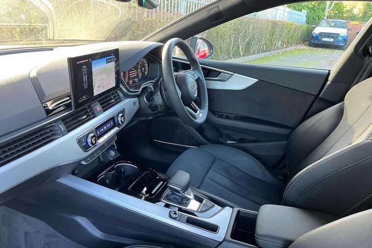 Audi connect safety and service (e-call), Audi drive select (Auto, Comfort, Dynamic and Individual), Audi smartphone interface, Audi virtual cockpit - 12.3" full colour digital instrument cluster, vehicle/engine speed, Radio/media information+Driver assistance systems, Automatic start-stop system with coasting functionality and efficiency programme, Bluetooth interface, Camera based traffic sign recognition, Electro-mechanical power steering, Email, calendar and text messages displayed via MMI, Front and rear parking sensors, Lane departure warning, MMI nav+ with MMI touch - 10.1" high resolution MMI display, touch sensitive, 3D map, route/country info, dynamic route guide, personal route assist, Power operated tailgate, Rear view camera, Service interval indicator, Voice control system, 54 litre fuel tank, Sports suspension lowered by 23mm, 8 passive loudspeakers, CD player, DAB digital radio reception, Two additional USB ports for rear passenger in rear centre console, Two SDXC card slots, Auto dimming door mirrors, Auto dimming rear view mirror, Body colour bumpers, Body colour door handles, Body colour front spoiler lip, Body colour side sill trim, Body coloured door mirrors, Electric adjustable heated door mirrors, Electric folding door mirrors, Electric front windows, Front fog lights, Honeycomb structure radiator grille in grained matt black, Kerb-view function for passenger side, LED headlights and rear lights with LED daytime running lights, LED side indicator lights integrated into door mirrors, LED third brake light, Matt aluminium silver tailpipe trim, Privacy glass, Rain and light sensors, Rear side wing doors, Rear wiper, S line badges on front wings, S line front and rear bumpers with side skirts, S Line rear diffuser in matt anthracite black with trim strip in matt aluminium silver, Side air inlets in grained matt black with matt aluminium silver inlay, Variable front intermittent wipers, Windscreen with acoustic glazing, 3 seat bench in 2nd row, 3 spoke high multifunction leather sport steering wheel with paddle shfit and S badging perforated leather grips, 4 way electric lumbar support for driver and front passenger, 40/20/40 split folding 3 seater rear bench seat, Adjustable steering column, Black cloth headlining, Black perforated leather gearknob, Contrast stitching on seats, steering wheel and gear lever gaiter, Deluxe 3 zone electronic climate control, Front centre armrest, Front head restraints, Front/rear floor mats, Heated front seats, Illuminated door sill trim with S logo, ISOFIX child seat mounting and top tether, Luggage compartment mat, Manual seat adjustment, Rear centre armrest, Rear headrests, Single front passenger seat, Stainless steel pedals and footrest, Sunvisors with vanity mirrors, LED interior light pack - A5/RS5, 3x3 point rear seatbelts, 6 airbags - Driver, front passenger, curtain and side airbags, Attention and drowsiness assist, Electromechanical parking brake, Electronic Stabilisation Control (ESC) including ABS, ASR and EDL, Front passenger airbag deactivation, Height adjustable front seatbelts, Hill hold assist, Manual child lock in rear doors, Multi collision brake assist, Pop-up bonnet for pedestrian protection, Pre sense city, Seatbelt monitoring, Tyre pressure warning, Variable restraint system, Warning triangle and first aid kit, Anti theft alarm system, Anti theft wheel bolts, Immobiliser, Keyless Go, Remote central locking, Matt brushed aluminium inlays, Tool kit, Tyre repair kit,