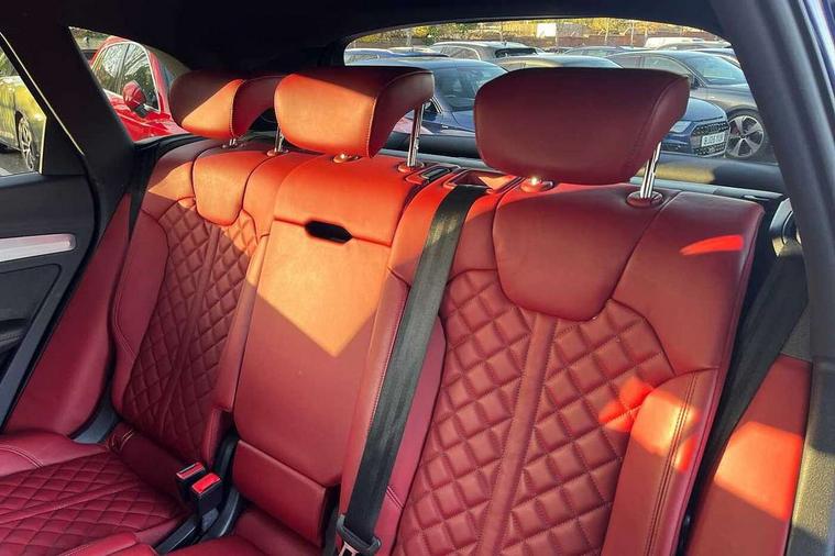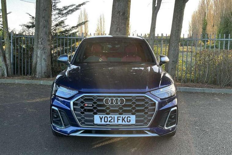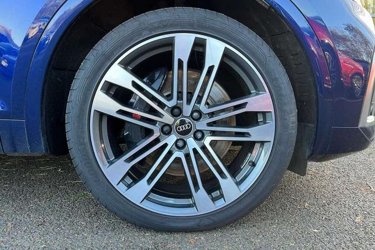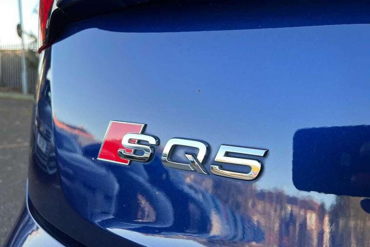 Audi connect safety and service (e-call), Audi connect with Amazon Alexa Integration, Audi drive select, Audi phone box with wireless charging, Audi virtual cockpit plus with 12.3" screen and three different layout designs, Audi wireless smartphone interface, Automatic start-stop system with coasting functionality and efficiency programme, Bluetooth interface, Electro - mechanical power assisted steering, MMI navigation plus with 10.1" touch screen, Power tailgate, Reversing camera, Service interval indicator, Voice control system with Audi hotword activation "Hey Audi", 70 litre fuel tank and 24 litre AdBlue tank, Diesel particulate filter, Quattro on demand, S sports suspension, 2 x USB charging port with aux input socket, Audi sound system, DAB Digital radio, Acoustic windscreen, Aluminium roof rails, Audi beam, Auto dimming rear view mirror, Automatic headlights and windscreen wipers, Body colour bumpers, Body colour rear diffuser with matt aluminium silver surrounds, Body colour underbody protection, Chrome plated exhaust trims, Door sills in Selenite silver, Electric adjustable/heated/folding door mirrors, Front air inlet surrounds in aluminium, Front and rear electric windows, Front radiator grille in honeycomb design, Headlight washers, Lower bumpers painted in contrast Manhattan grey, Rear chrome trim strip below lights, Rear privacy glass and rear side windows, Rear spoiler, Rear wiper, Roof bars, S front and rear bumpers, S Line side skirts, S specific rear diffuser, 3 rear headrests, 4 way electric lumbar support for driver and front passenger, 40:20:40 split folding rear seat with rear centre armrest, Black cloth headlining, Comfort front centre armrest, Contrast stitching on seats, steering wheel and gear lever gaiter, Deluxe 3 zone electronic climate control, Fine Nappa leather upholstery with diamond pattern contrast stitching + front sport seats with S embossed logo, Front/rear floor mats, Fully electrically adjustable seats, Gear lever in black leather, Heated front seats, Height adjustable front head restraints, Height/reach adjustable steering column, Illuminated door sill trims with S logo, ISOFIX child seat mounting and top tether, Luggage compartment cover, Massage function for front seats, Rear seat bench plus, Removable luggage compartment floor, Stainless steel pedals, Sunvisors with vanity mirrors, Extended interior upholstery pack - Q5, High gloss pack - Q5, LED interior light pack - Q5, 3 point seatbelts on all seats, 6 airbags - Driver, front passenger, curtain and side airbags, Electrically operated child locks on rear doors, Electromechanical parking brake, Electronic stabilisation control including ABS, ASR and EDL, Front passenger airbag deactivation, Hill descent control, Hill hold assist, Multi collision brake assist, Pop-up bonnet for pedestrian protection, Pre sense city, Seat belt force limiter, Seatbelt monitoring, Tyre pressure warning, Warning triangle and first aid kit, Anti theft alarm, Anti-theft wheel bolts, Keyless Go access/ignition system,