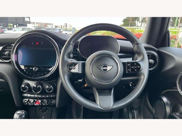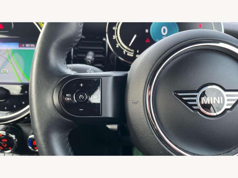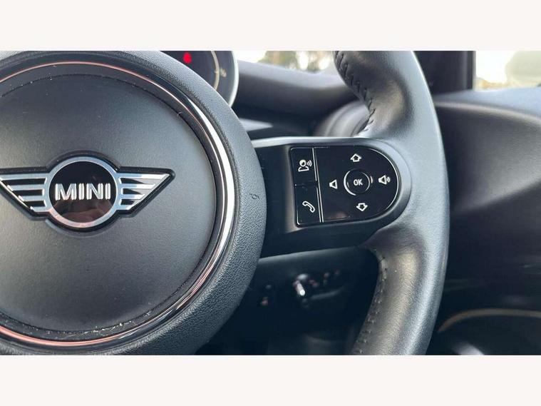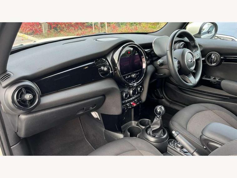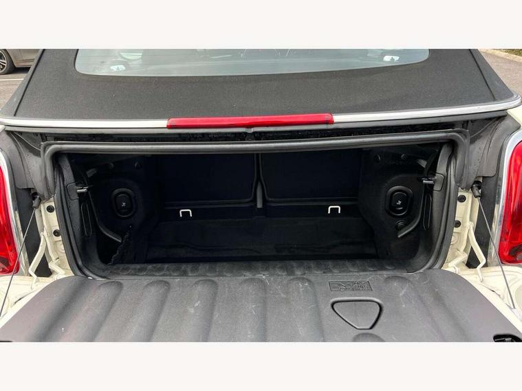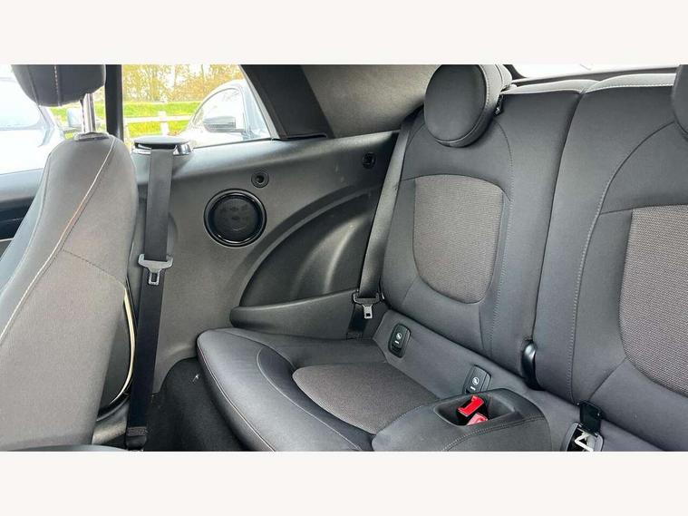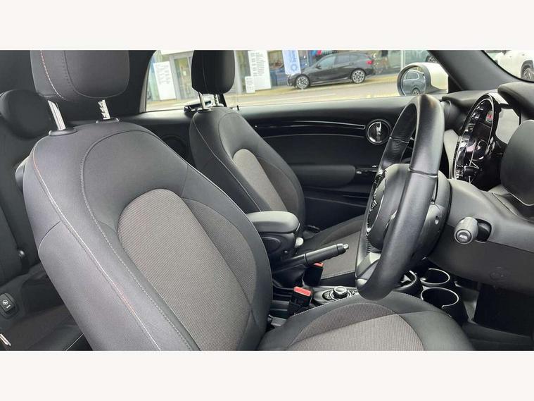 Apple CarPlay, Automatic start/stop function with brake energy recuperation, Compatible mobile phone bluetooth with audio streaming, Cruise control with brake assist, Electro-mechanical speed dependant steering assistance, Instrument cluster, Mini E-call, MINI TeleServices, On board computer, Rear park distance control, Service interval indicator, 6 Speed manual transmission including gear change indicator display, Double Vanos system, Fully variable valve control, High precision injection, Performance Control, 8.8" touchscreen with LED ring, FM tuner and DAB digital radio, Automatic headlight activation switch, Body colour fuel filler cap, Chrome border high gloss black slats radiator grille, Dynamic brake lights, Electric windows, Fully electric black softtop with integrated sunroof functionality, Heated rear window, Heated windscreen washer jets, LED headlight with closed ring and daytime driving lights, Left exhaust tailpipe with chrome finisher, Metal door sill strips with MINI imprint, Model logo Cooper on right of tailgate, Rain sensor window wipers, Rear boot, Rear fog lights, Rear LED lights with union jack design, Side scuttle panel with integrated indicator, Sun/heat protection glass, Third brake light, White indicator lenses, 12V Accessory socket in centre console, 2 seat bench in 2nd row, 4 lashing eyes in luggage compartment, 50/50 split folding rear seats, Chrome interior highlights, Colour line - Carbon black, Cupholders, Easy Load boot handles, Front and rear head restraints, Front and rear isofix with front passenger airbag deactivation, Glove compartment, Height and length steering column adjustment, Interior lighting with 12 different colours running across the dashboard, underneath door bezel illuminated laser engraved design on central display, Leather gearshift lever and handbrake gaiters, LED reading lights, vanity mirror lights, front foot well light and spotlight on front seats, Manual air conditioning, Mechanical seat adjustment, driver seat height adjust, forward/back and front seats backrest, Multifunction steering wheel, Single front passenger seat, Sports steering wheel, Storage compartments in doors, Sunvisors with vanity mirrors, Three spoke steering wheel with speed limiter and audio/communication controls, Velour floor mats, Convertible pack with comfort access - Mini Convertible, 3 point seatbelts on all four seats, 6 Airbags - front, side and seat belt tensioners, Active rollover protection, Anti-lock braking system (ABS), DSC - Dynamic Stability Control, Front and rear disc brakes, Hill start assist, Single tone fanfare horn, Tyre pressure monitoring system, Alarm system with tilt sensor, monitoring doors, bonnet interior and tailgate, Electronic vehicle immobiliser, Keyless Go, Piano black interior trim, Tool kit, Tyre repair kit,