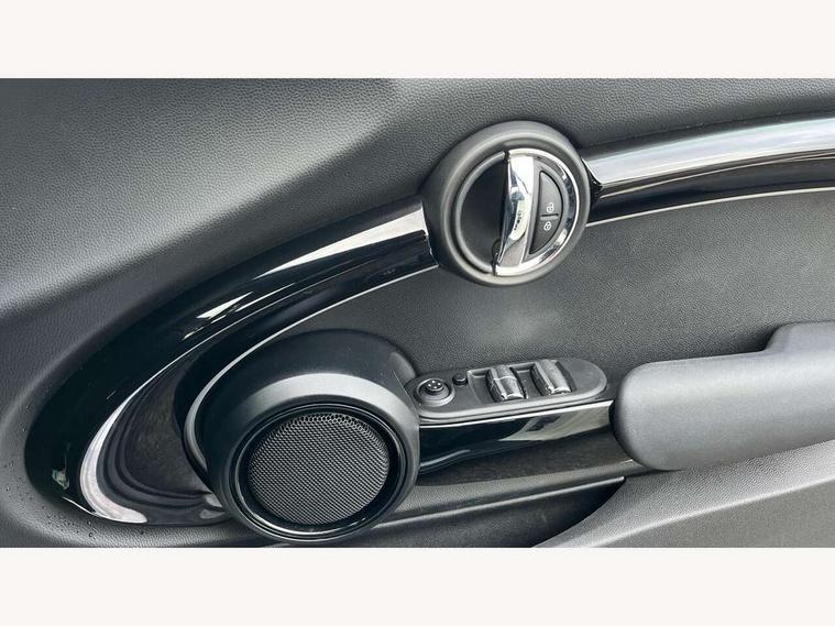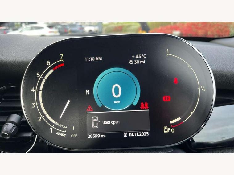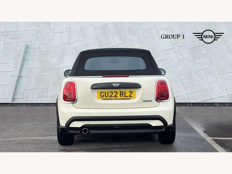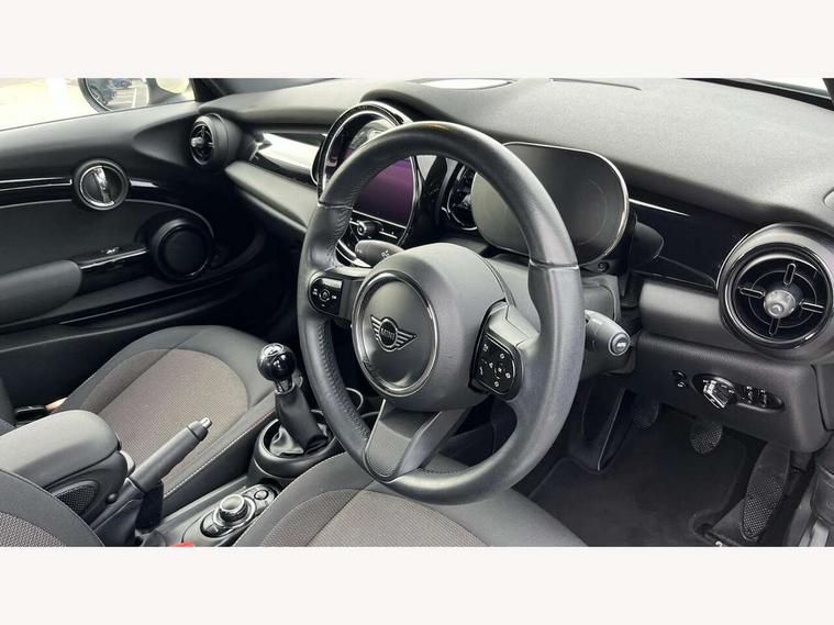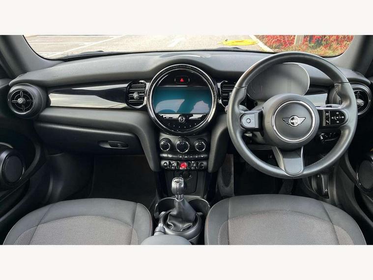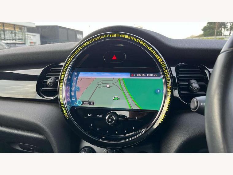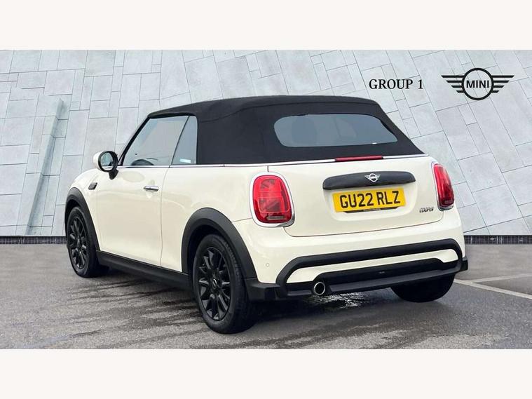 Apple CarPlay, Automatic start/stop function with brake energy recuperation, Compatible mobile phone bluetooth with audio streaming, Cruise control with brake assist, Electro-mechanical speed dependant steering assistance, Instrument cluster, Mini E-call, MINI TeleServices, On board computer, Rear park distance control, Service interval indicator, 6 Speed manual transmission including gear change indicator display, Double Vanos system, Fully variable valve control, High precision injection, Performance Control, 8.8" touchscreen with LED ring, FM tuner and DAB digital radio, Automatic headlight activation switch, Body colour fuel filler cap, Chrome border high gloss black slats radiator grille, Dynamic brake lights, Electric windows, Fully electric black softtop with integrated sunroof functionality, Heated rear window, Heated windscreen washer jets, LED headlight with closed ring and daytime driving lights, Left exhaust tailpipe with chrome finisher, Metal door sill strips with MINI imprint, Model logo Cooper on right of tailgate, Rain sensor window wipers, Rear boot, Rear fog lights, Rear LED lights with union jack design, Side scuttle panel with integrated indicator, Sun/heat protection glass, Third brake light, White indicator lenses, 12V Accessory socket in centre console, 2 seat bench in 2nd row, 4 lashing eyes in luggage compartment, 50/50 split folding rear seats, Chrome interior highlights, Colour line - Carbon black, Cupholders, Easy Load boot handles, Front and rear head restraints, Front and rear isofix with front passenger airbag deactivation, Glove compartment, Height and length steering column adjustment, Interior lighting with 12 different colours running across the dashboard, underneath door bezel illuminated laser engraved design on central display, Leather gearshift lever and handbrake gaiters, LED reading lights, vanity mirror lights, front foot well light and spotlight on front seats, Manual air conditioning, Mechanical seat adjustment, driver seat height adjust, forward/back and front seats backrest, Multifunction steering wheel, Single front passenger seat, Sports steering wheel, Storage compartments in doors, Sunvisors with vanity mirrors, Three spoke steering wheel with speed limiter and audio/communication controls, Velour floor mats, Convertible pack with comfort access - Mini Convertible, 3 point seatbelts on all four seats, 6 Airbags - front, side and seat belt tensioners, Active rollover protection, Anti-lock braking system (ABS), DSC - Dynamic Stability Control, Front and rear disc brakes, Hill start assist, Single tone fanfare horn, Tyre pressure monitoring system, Alarm system with tilt sensor, monitoring doors, bonnet interior and tailgate, Electronic vehicle immobiliser, Keyless Go, Piano black interior trim, Tool kit, Tyre repair kit,