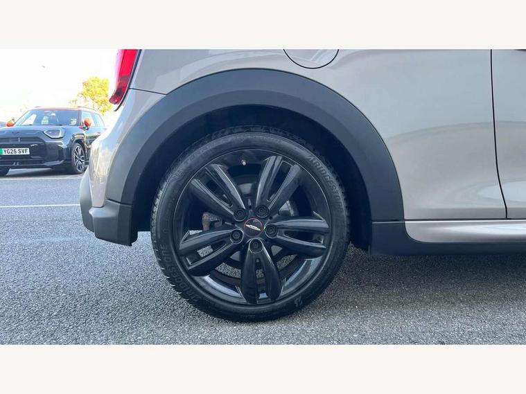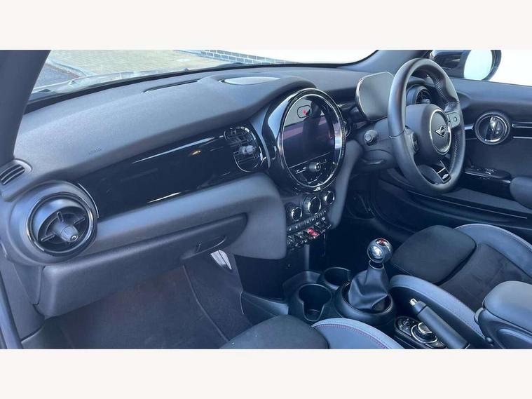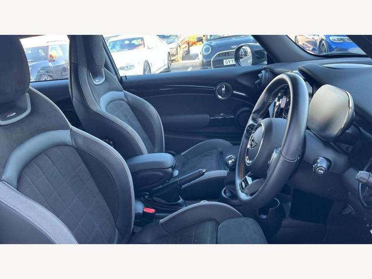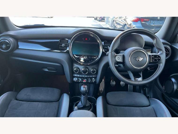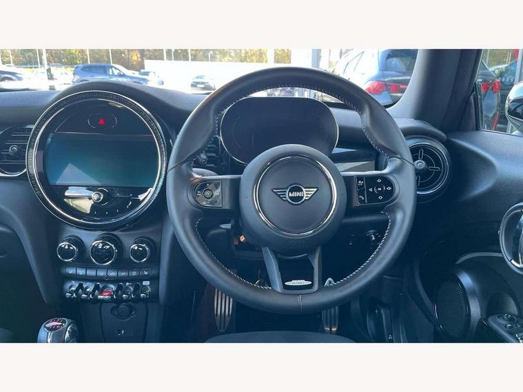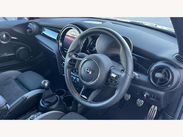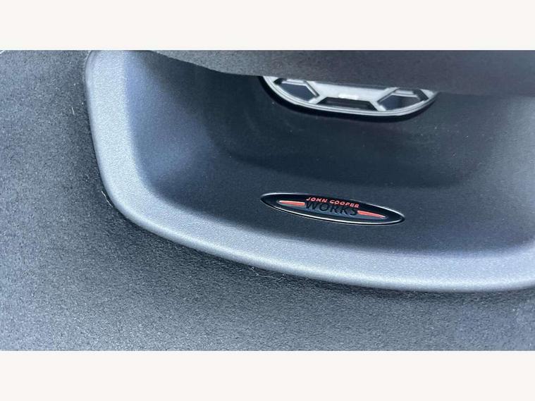 Automatic start/stop function with brake energy recuperation, Compatible mobile phone bluetooth with audio streaming, Cruise control with brake assist, Electro-mechanical speed dependant steering assistance, Flexible car sharing preparation, Instrument cluster, MINI Driving Modes - centre toggle switch to control driving setting (sport, mid and green), Mini E-call, MINI TeleServices, On board computer, Rear park distance control, Service interval indicator, 6 Speed manual transmission including gear change indicator display, Adaptive suspension, Double Vanos system, Fully variable valve control, High precision injection, Performance Control, 4 speakers in front door trims and underneath front seats, 8.8" touchscreen with LED ring, FM tuner and DAB digital radio, Automatic headlight activation switch, Body colour fuel filler cap, Chrome border high gloss black slats radiator grille, Dynamic brake lights, Electric front windows, Exhaust tailpipe on left with chrome finisher, Heated rear window, Heated windscreen washer jets, JCW Aerodynamic kit - Front and rear bumpers with sporty JCW styling and part-painted side sills with MINI John Cooper Works door sill finishers, John Cooper Works rear spoiler, LED headlight with closed ring and daytime driving lights, Metal door sill strips with MINI imprint, Model logo Cooper on right of tailgate, Rain sensor window wipers, Rear fog lights, Rear LED lights with union jack design, Rear window wiper, Side scuttle panel with integrated indicator, Sun/heat protection glass, White indicator lenses, 12V Accessory socket in centre console, 4 lashing eyes in luggage compartment, 60/40 split folding rear seat, Anthracite headliner including grab handles and clothes hooks, Carbon black colour line - Knee roll and door armrest, Chrome interior highlights, Cupholders, Front and rear isofix with front passenger airbag deactivation, Glove compartment, Height and length steering column adjustment, Interior lighting with 12 different colours across the dashboard, underneath door bezel with illuminated laser-engraved design on central display, JCW Sport seats with integrated headrests, adjustable thigh support and John Cooper Works logo, Leatherette gearshift lever and handbrake gaiters, LED reading lights, vanity mirror lights, front foot well light and spotlight on front seats, Manual air conditioning, Mechanical seat adjustment - forward/back & backrest for front seats and driver seat height adjust, Multifunction steering wheel, Passenger seat height adjuster, Storage compartments in doors, Sunvisors with vanity mirrors, Velour floor mats, Walknappa leather steering wheel with grey seam and John Cooper Works badge on Piano Black lower steering wheel spoke, Piano black exterior pack - Mini Hatchback Cooper, 3 point seatbelts on all four seats, 6 Airbags - front, side, head and seat belt tensioners, Anti-lock braking system (ABS), DSC - Dynamic Stability Control, Front and rear disc brakes, Single tone fanfare horn, Tyre pressure monitoring system, Alarm system with tilt sensor, monitoring doors, bonnet interior and tailgate, Electronic vehicle immobiliser, Start/stop toggle with keyless go, Piano black interior trim, Tool kit,