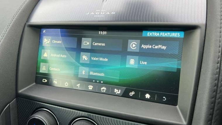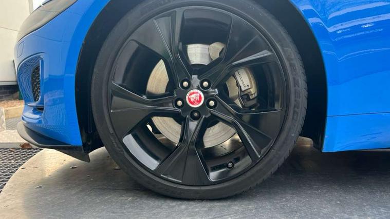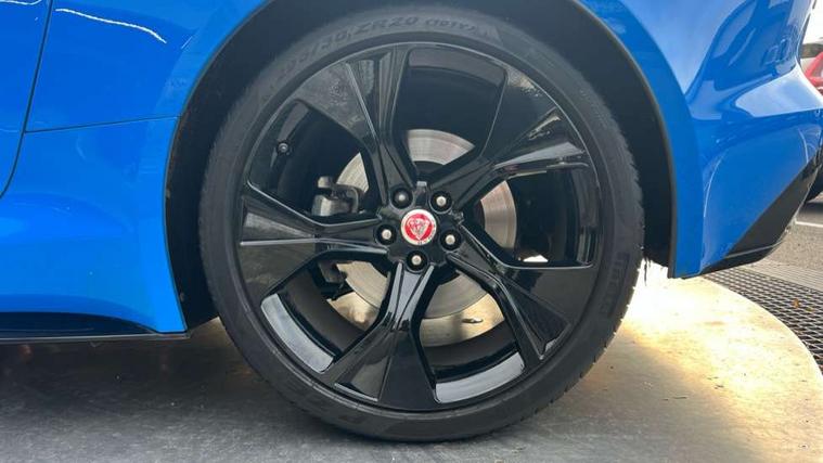 10" touch screen, Android Auto, Apple CarPlay preparation, Bluetooth telephone connectivity, Boot entrapment release lever, Connected navigation pro, Cruise control + speed limiter, Driver condition monitor, Front and rear parking aid, Incontrol pro service, InControl remote premium, Interactive driver display, Jaguar Drive Control with toggle switch - Rain/Ice/Snow driving modes, Lane departure warning system, Lane keep assist, PAS, Push button start, Rear view camera, Stop/start system, Traffic sign recognition with adaptive speed limiter, Trip computer, Open differential with torque vectoring by braking, Passive suspension, Sport mode, Audio remote control, Digital Audio Broadcast radio-DAB, InControl app, InControl protect, Meridian 380W sound system with 10 speakers, Auto dimming rear view mirror, Automatic headlights, Body coloured door mirror caps, Chrome exhaust finisher, Deployable boot lid spoiler, Electric front windows, Fixed panoramic roof with manual black blind, Flush exterior door handles, Headlight washers, Heated electric door mirrors, Infra red reflective glass, Jaguar bespoke paint, LED tail lights, Metal tread plates with R Dynamic branding, Premium LED headlights with signature DRL, Rain sensing windscreen wipers, Reims badge, Solar attenuating windscreen, Tinted glass, Bright metal foot pedals, Cabin lighting, Contrast carpet mats, Deployable front air vents, Electrically adjustable steering column, Front centre armrest, Front headrests, Heated front seats, Jaguar sense, Leather/Suedecloth upholstery with sport seats, Low line cubby box, Lumbar support, Morzine headlining - Ebony, Overhead console, Pollen filter, Power socket, Rain, Ice and snow mode, Single zone climate control, Steering wheel mounted paddle shift, Sunvisors with vanity mirrors, Twin front cupholders, USB with 12V socket in centre console, Black exterior pack - F-Type - Reims Edition, Climate pack 1 - F-Type, Interior black pack - F-Type, Online pack - F-Type, Smartphone pack - F-Type, 355mm Front and 325mm Rear brakes, 6 airbags - Driver/front passenger airbags, front and rear curtain airbags and front side airbags, Anti-lock braking system (ABS), DSC - Dynamic Stability Control, Electronic brake force distribution, Electronic parking brake, Emergency brake assist, Emergency braking, Front/rear seatbelt pre-tensioners, Pedestrian contact sensing and deployable bonnet, Seatbelt reminder for driver and front passenger, Silver brake calipers, Tyre pressure monitoring system, Deadlocks, Drive away door locking, Engine immobiliser, Locking wheel nuts, Perimetric and volumetric anti theft alarm, Remote central locking, Two stage unlocking, Valet mode, Delta aluminium centre console, 20" 5 split spoke gloss black - style 5102, Tyre repair system,