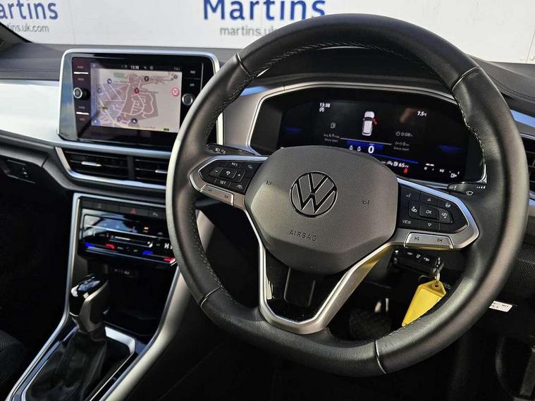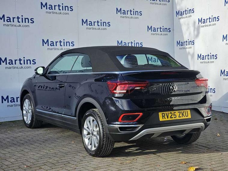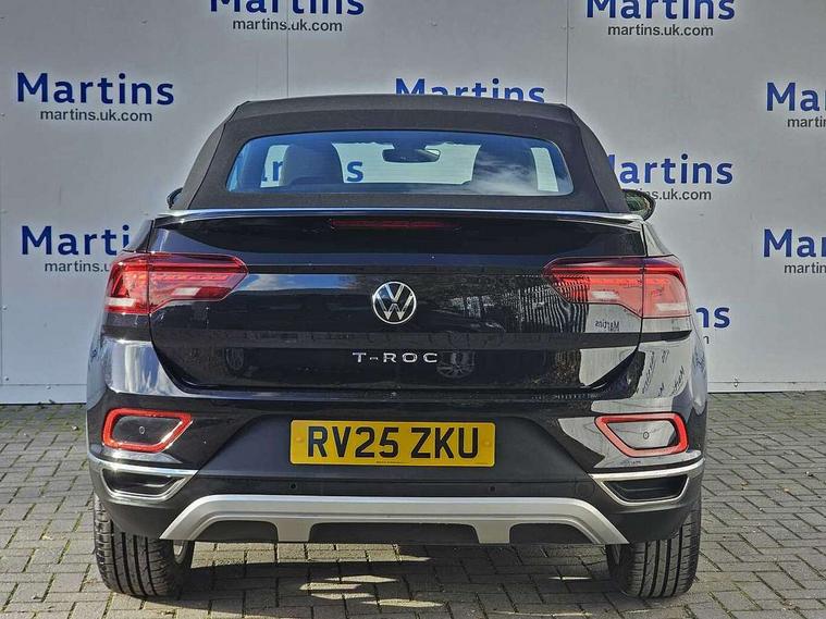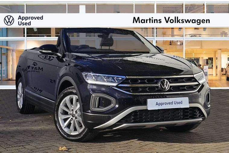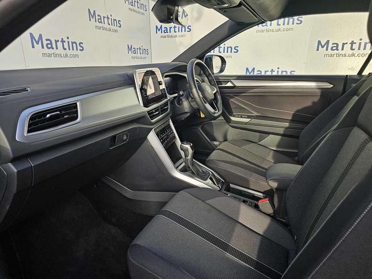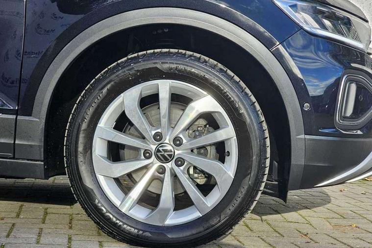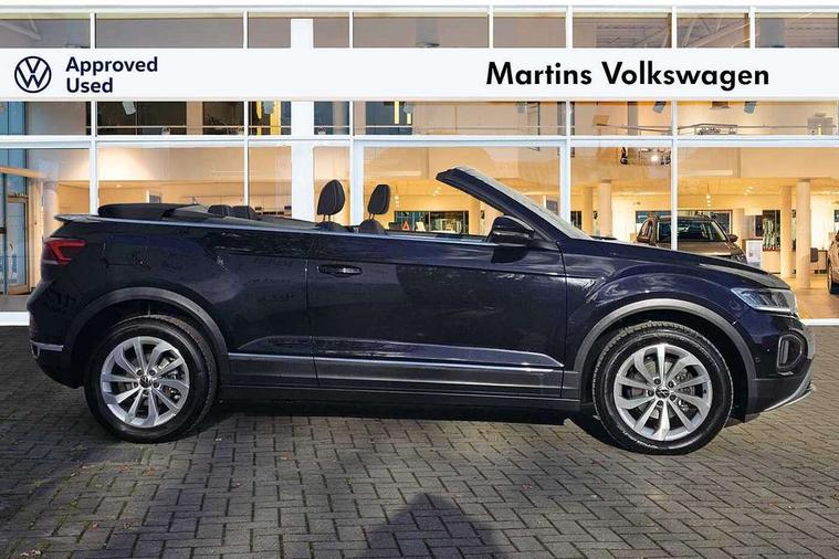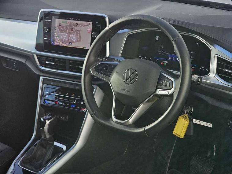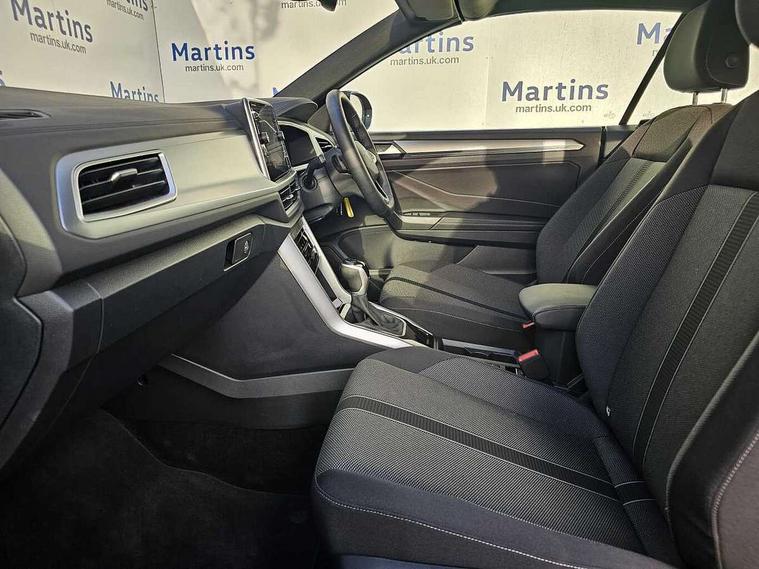 Adaptive cruise control and speed limiter, Advanced driver attention and drowsiness monitor, Brake pad wear indicator, Car information display, Driver tips and journey analysis, Dynamic road sign display, Emergency call service, Modified key software - reduce switch off time for key status change to Long no motion, Multifunction computer with visual gear change recommendation for fuel consumption, Multifunction front facing camera, Online services, Park assist including front and rear parking sensors, Speedo and rev counter, electronic odometer, trip, service interval display and exterior temperature gauge, Start/stop system with brake energy recovery, Tailgate/trunk lid release from outside, Warning sound and light for front seatbelts unfastened, Wireless App-Connect for apple Carplay and android Auto, Digital radio reception (DAB), Diversity antenna for FM reception, Mobile phone interface with inductive charging feature, Music playback - MP3, WMA and AAC files, SMS functionality - read, compose and send SMS messages using touch-screen display, Title and cover art display, USB-C Interface and USB charging socket, We Connect and We Connect Plus functionality, Ambient lighting with logo projection, Auto dimming interior rear view mirror, Automatic hazard lights activation under emergency braking, Automatic headlight control with LED separate daytime running lights with coming/leaving home function, Black roof, Body colour door handles, Body colour rear boot spoiler, Body coloured bumpers and radiator grille with chrome trim and front fog lamps with chrome bezel, Chrome effect left and right trapezoid exhaust tailpipe fascia surround, Dark red rear combination lamps in LED technology, Dusk sensor, Exterior mirrors aspherical on driver side, convex on front passenger side, Headlight range control, Heat insulating glass windscreen, LED 3rd brake light, LED rear number plate lights, Power operated canvas convertible top, Power windows with comfort operation and circuit breaker, Rain sensor, Rear boot, Rear exhaust tailpipe, Rear fog light on one side and reversing lights on both sides, Remote electrically foldable door mirrors, puddle lights and reverse activated passenger door mirror, Volkswagen roundel, Windscreen wiper with intermittent wipe light, Without exterior ambient lighting, 12V socket in centre console storage area, 2 LED front reading lights, 2 seat bench in 2nd row, 50:50 Split folding rear seat backrests with fixed rear seat bench, Air care climatronic air conditoning system with active combination filter and 2-zone temperature control, Black door lower parts with chrome trim, Chrome plated surround to light, mirror and window switch, Door and side trim panel with leatherette insert, Easy entry backrest release, Front and rear carpet mats with black stitching, Front centre armrest, Front cupholders x 2, Front door pockets, Front seat back storage pockets, Heated multi function steering wheel with tiptronic, Height/reach adjust steering wheel, Instrument lighting, white adjustable panel illumination, Interior light delay, Interior light in footwell, Interior lighting with switch off delay and contact switches on all doors, Interior white ambient lighting and surround lighting, Isofix child seat preparation, Lockable glove compartment with light, Luggage compartment lighting, Rear head restraints, Single front passenger seat, Sun visors with illuminated vanity mirrors, Driver assistance pack without proactive passenger protection - T-Roc Cabriolet DSG, 2 x 3-point seatbelts/outer rear seats with ECE label, Driver and front passenger airbag with front passenger airbag deactivation, Driver and front passenger safety-optimised head restraints, Drivers seatbelt reminder, Electronic parking brake, Electronic Stability Control (ESC) including ABS, ASR and EDL, Front and rear disc brakes, Front assist with autonomous emergency braking, Pedestrian monitoring, Predictive pedestrian protection, Rigid safety cell with front and rear crumple zones, Side airbag/thorax airbag system, for front passengers, Three point height adjust front seatbelts + pretensioners, Two tone horn, Tyre pressure loss indicator, Volkswagen roadside assistance, Anti-theft alarm system with interior protection and central locking system with SAFELOCK, radio remote control and 2 remote control folding keys, Electronic engine immobiliser, Trims for alloy wheels,