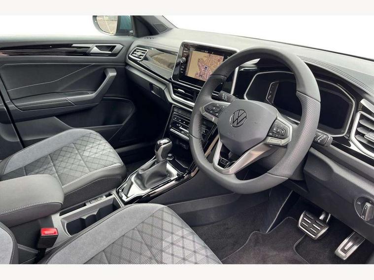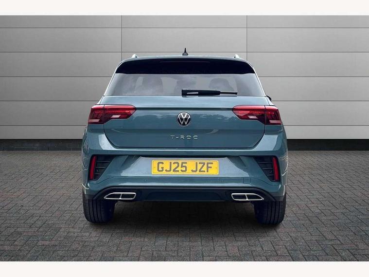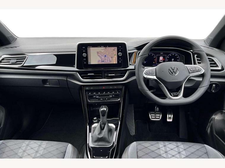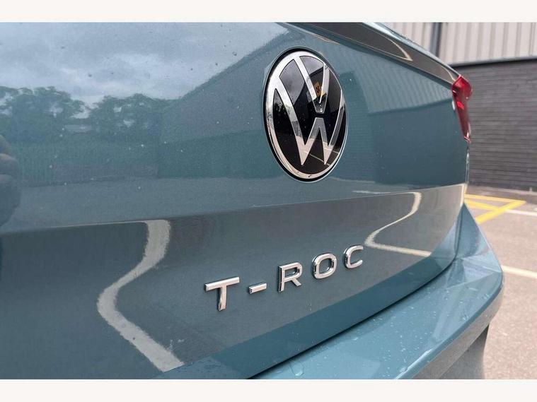 10.25" Digital cockpit pro, Advanced driver attention and drowsiness monitor, Emergency call service, Lane keeping system Lane Assist, Mobile phone interface, Modified key software - reduce switch off time for key status change to Long no motion, Online services, Park assist including front and rear parking sensors, Service interval indicator, Tailgate/trunk lid release from outside, Think blue trainer driver tips and journey analysis, Warning sound and light for front seatbelts unfastened, Wireless app connect, Battery regeneration during braking, Start/stop function with battery regeneration, DAB Digital radio, Diversity antenna for FM reception, Front and rear 6 speakers, Music playback - MP3, WMA and AAC files, Premium USB cable in choice of either Apple or Android smartphone compatibility, SD card slot, Simultaneous pairing of 2 compatible mobile devices, Title and cover art display, We Connect and We Connect Plus functionality, Auto dimming interior rear view mirror, Automatic hazard lights activation under emergency braking, Automatic headlight control with LED separate daytime running lights with coming/leaving home function, Body coloured exterior mirror housings and door handles, Electrically adjustable and heated door mirrors, Extended roof spoiler, Exterior mirrors aspherical on driver side, convex on front passenger side, External USB type C socket and charging sockets, Front windscreen wiper with intermittent wipe and 4 position delay, Heated rear window, LED 3rd brake light, LED rear combination lamps, LED rear number plate lights, Power windows with comfort operation and circuit breaker, Privacy glass for rear side windows and rear window, R-Line design body coloured bumpers, Rain sensor, Rear exhaust tailpipe, Rear fog light on one side and reversing lights on both sides, Rear side wing doors, Rear wash/wipe with intermittent wipe setting, Remote electrically foldable door mirrors, puddle lights and reverse activated passenger's door mirror, 12V power socket in centre console, 3 rear head restraints, 3 seat bench in 2nd row, 4 load lashing points in luggage compartment, Air care climatronic air conditoning system with active combination filter and 2-zone temperature control, Black roof lining, Chrome plated decorative trims, Chrome plated radiator grille inserts, air vent surrounds and light switch surrounds, Door and side trim panel with leatherette insert, Front + rear carpet mats, Front centre armrest, Front cupholders x 2, Front footwell illumination, Front reading light, Front scuff plates with R Line logo, Front seat back storage pockets, Glove compartment door with light, Instrument lighting, white adjustable panel illumination, Interior ambient lighting and surround lighting, Interior light delay, Isofix child seat preparation, Leather gearshift handle, Load-through provision with cup holder when folded down ('Unsplit rear seat bench, split folding backrest, with centre armrest), Luggage compartment lighting, Single front passenger seat, Stainless steel pedals, Storage compartment in left and right luggage area, Storage compartment in rear doors, Storage compartments in driver and front passenger doors, Sunvisors with illuminated vanity mirrors, Variable boot floor, height adjustable and removable, Driver assistance pack without proactive passenger protection - T-Roc, 3 point height adj front seatbelts + pretensioners, 3 point seatbelts in outer rear with ECE label, ABS, Child locks on rear doors, City emergency braking and pedestrian monitoring, Driver and front passenger airbag with front passenger airbag deactivation, Driver and front passenger safety-optimised head restraints, Drivers seatbelt reminder, Electronic parking brake, Electronic Stability Control (ESC) inc EDL (Electronic Differential Lock) and ASR (Traction Control), Front and rear passengers curtain airbag system including front side airbags, Hill start assist, Predictive pedestrian protection, Rear disc brakes, Two tone horn, Tyre pressure loss indicator, Volkswagen roadside assistance, Piano black decorative inserts in dashboard and front door trim panels, Trims for alloy wheels,