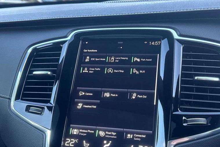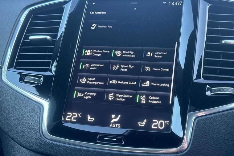 Metal mesh inlays, Tailored Instrument Panel and Door Tops with Contrast Stitching, Tempa spare wheel and jack, Anti-theft alarm including immobiliser/volume sensor + level sensor, Care key with user defined top speed, Key integrated remote control central locking + fuel flap with deadlocking system and auto open/close power windows, Keyless drive (includes keyless entry and keyless start) with remote tag, Locking wheel nuts, Private locking for glovebox and tailgate, DAB Radio (Digital Audio Broadcasting), Steering wheel remote infotainment controls, 7 three point seatbelts, City safety includes pedestrian, cyclist and large animal detection and front collision warning with full auto brake, Drivers knee airbag, Dual stage driver/passenger airbags, First aid kit, Front seats SIPS airbags, Hill descent control, Hill start assist, IC (Inflatable Curtains) - Full Length, Passenger airbag cut-off switch, Power parking brake with auto hold function, Run off Road Mitigation, Run off Road Protection, Seatbelt reminder and pretensioners for all seats, SIPS (Side Impact Protection System), Slippery road and hazard light alert, Stability and Traction Control with Spin control, Engine Drag Control and Corner Traction Control, Tyre pressure monitoring system, Vehicle deceleration control with Anti-lock Brake System, Electronic Brake Distribution and Emergency Brake Assist, Warning triangle, WHIPS whiplash protection system - front, Adaptive brake lights with high level LED brake lights, Auto dimming interior + exterior mirrors, Automatic headlight levelling system, Automatic LED Headlights + Active high beam incorporating daytime running lights, Body colour bumpers, Dark tinted windows for rear side windows and cargo area, Dual integrated exhaust pipes with high gloss black surround, Electric folding and heated door mirrors, Front and rear power windows, Heated washer nozzles, High gloss black Deco lower front bumper, High gloss black door mirrors, High gloss black mesh front grille with surround, High gloss black window surround, Home safe and approach lighting, Integrated roof rails in high gloss black, LED front fog lights, Puddle lights, Rain sensor with automatic windscreen wiper activation, Rear wash/wipe with intermittent wipe setting, Roof antenna, Roof spoiler, Visible VIN plate, 12V socket front tunnel console, rear passenger compartment and cargo area, 2nd Row centre armrest with storage and cupholders, 3 spoke leather steering wheel and illuminated gear knob with chrome trim, Ambient door and instrument panel lighting, B Pillar ventilation, Bright metal luggage threshold, Cargo divider with grocery bag holder, Centre console cupholders and storage, Driver's side lower dashboard storage compartment, Front and rear door pocket and front cupholder illumination, Front footwell and side step illumination, Front headrests, Front seat cushion extensions, Heated front seats, Height/reach adjustable steering column, Illuminated front and rear tread plates, Illuminated luggage compartment, Illuminated tailgate, Illuminated vanity mirrors + ticket holder, Illumination lockable glovebox compartment, Integrated sun curtains in rear doors, Load protection net, Multicolour theatre lighting, Outboard armrest with cupholder and storage for third row passengers, Power driver seat with multi directional lumbar support and memory for seat and exterior mirrors, Power folding 2nd row headrests, Power passenger seat with lumbar support, Rear footwell and side step illumination, Rear headrests, Semi automatic load cover, Sports floor mats, Sports leather gear knob, Sports pedals, Sports steering wheel, Steering wheel audio controls, Three 2nd row individual folding passenger seats with fore/aft adjustment, Two 3rd row individual folding passenger seats, Underfloor cargo storage, 12.3" Active TFT crystal driver's instrument display, 9" centre console portrait touch screen, Adjustable steering wheel force, Bluetooth hands free telephone connection, Drive mode settings, Driver alert control with lane keeping aid, Handsfree power tailgate opening and closing, Intellisafe assist - Adaptive cruise control with pilot assist, Oncoming Lane Mitigation, Remote engine start, Sensus navigation with European mapping and traffic information, Service interval indicator, Speed limiter, Speed sensitive steering, Trip computer, Voice activated control for key functions, Volvo on call, 8 speed automatic transmission with start/stop + manual change functions, All wheel drive system,