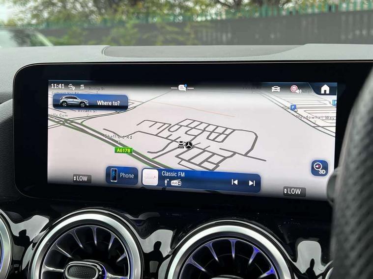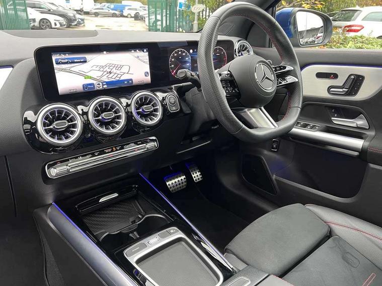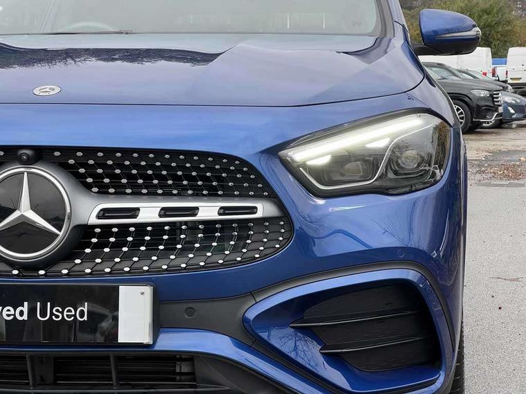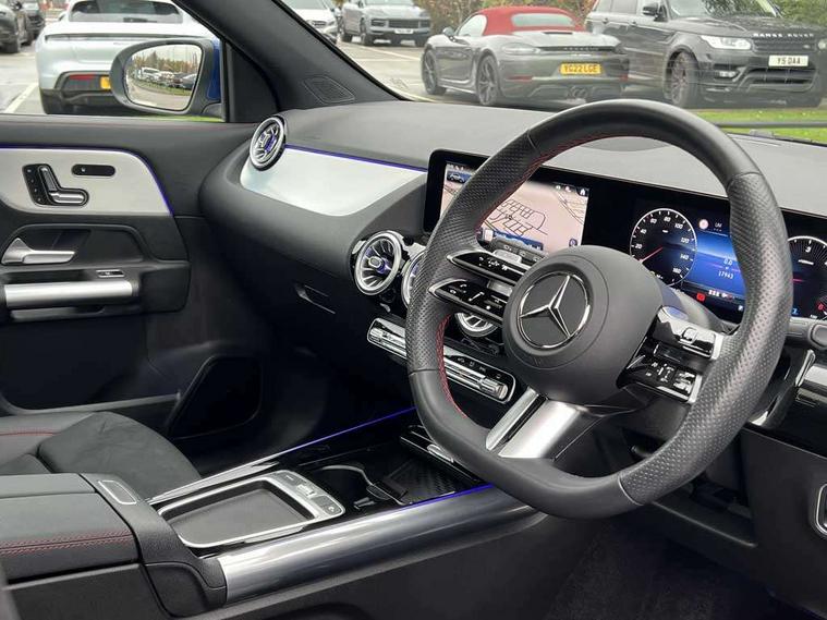 10.25 inch touchscreen central media display, 10.25" Digital instrument cluster display screen, Attention assist, Direct steering, DYNAMIC SELECT with a choice of driving modes (ECO, Comfort, Sport and Individual), ECO start/stop function, Fluid level warning indicator for fuel, oil, coolant and washer fluid, Hard-disk navigation, Hey Mercedes Voice activation, Lamp failure indicator, Lane keeping assist (LKA), Mercedes me connect including emergency call system, accident recovery, breakdown and maintenance management, Mercedes me remote services, Multi function trip computer, Outside temperature gauge, Owners manual and service booklet in English, Pre-installation of private car share, Radio aerial integrated into front and rear windshields, Service indicator (ASSYST), Smartphone integration with Apple CarPlay and Android auto, Status display for rear seat belts in instrument cluster, Tailgate, Traffic sign assist, Wireless charging, Lowered comfort suspension, Rear axle multi-link, Bluetooth connectivity including audio streaming, DAB Digital radio, MBUX multimedia system, Media interface, Mercedes-Benz (225w) sound system with 10 speakers, Pre installation for Mercedes Benz Link, Adaptive brake lights, Aerial for GPS, Aluminium roof rails, AMG front apron with front splitter in the colour of the vehicle with chrome trim element, AMG rear apron with visible tailpipe trim and chrome trim element, AMG specific/dual flow exhaust pipes in chrome (non-functional), Automatic headlamp activation, Beltline trim and window line trim strip in high gloss aluminium, Black grained side sill trim with chrome inlay, Body coloured door handles with chrome insert for keyless entry, Car wash function, Dark privacy glass from B-pillar backwards, Electric front windows, Electric rear windows, Electrically adjustable and heated door mirrors with integrated LED indicators, Exhaust system with 2 Visible tailpipe trim elements and rear apron with trim in chrome, Heat insulating dark tinted glass, Heated glass rear windscreen + timer control, Heated windscreen wash system, Illuminated door sill panels with Mercedes-Benz lettering, Interior mirror with black reading lamps and frameless, LED daytime running lights, LED tail lights, LED third brake light, Multibeam LED headlamps with adaptive highbeam assist and cornering function, Panoramic sunroof, Radiator diamond grille with chrome pins and central Mercedes star, single louvre in matt grey with chrome inserts and black highlights, Rain sensor windscreen wipers, Rear fog lights, Rear side wing doors, Rear wiper, Roof spoiler, Wheel arch liners in the colour of the vehicle, 12V power socket in centre console, 3 seat bench in 2nd row, 3 spoke flat bottom multifunction nappa leather steering wheel, 40:20:40 split folding rear seat backrests, Adjustable head restraints, Air conditioning - air vents with silver chrome surround, Air conditioning - Two zone thermotronic luxury automatic climate control with display, AMG floor mats, Auto Mercedes-Benz child seat recognition sensor, Black roof lining, Courtesy light in boot, Electrically adjustable front memory seats with four way lumbar support, Fluorescent jacket, Front centre armrest with stowage, Galvanished gear shift paddles on steering wheel in silver chrome, Heated front seats, Illuminated glovebox, Interior lighting - 64 colour Ambient lighting, Luggage net on driver/front passenger seat backrest, Manually height and reach adjustable steering column, Single front passenger seat, Sports pedals in brushed stainless steel with black rubber studs, Sports seats, Sports steering wheel, Stowage compartment in centre console, Stowage compartment with retractable cover, Sunvisors with illuminated vanity mirrors, Twin front cup holders, Two outer rear seat isofix and top tether child seat fixing points, Comfort seat pack - GLA Class, Interior lighting with light and sight pack - GLA, Keyless go comfort package - GLA, Mirror pack - GLA Class, Parking package with 360-degree camera - GLA, USB package plus - GLA, 3 rear 3 point seatbelts, ABS with Brake Assist, Active bonnet pedestrain safety measure which detects an impact and raises bonnet by 65mm, Adaptive brake assist with hold function and hill start assist, Black seatbelts, Bonnet with power domes, Brake pad wear warning indicator, Childproof locks manually operated for rear doors and electrically operated for rear power windows, Crash responsive emergency lighting, Driver and passenger head and side airbags, Drivers knee airbag, Dual stage driver/passenger airbags, Electronic parking brake, ESP curve dynamic assist, ESP with ASR, Exit warning, Front and rear seatbelt reminder, Front brake callipers with Mercedes Benz logo lettering on front, Front brake discs internally ventilated and perforated, Front passenger seat occupancy sensor, Sports braking system, Tyre pressure monitoring system, Warning triangle and first aid kit, Window airbags, Alarm system with immobiliser and interior protection -Thatcham category 1, Guard 360 degree vehicle protection, Keyless entry lock/unlock, Keyless Go starting function, Remote central locking and crash sensor with emergency opening function, Vehicle key with decorative surround in chrome, Light longitudinal grain aluminium trim, 20" AMG multi spoke light alloy wheels aerodynamically optimised and painted in black with a high-sheen finish RVU, Summer tyres, Tirefit tyre sealant kit,