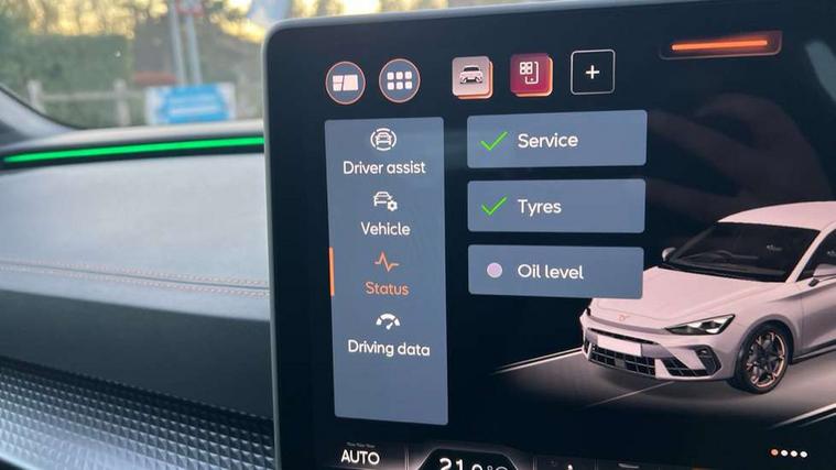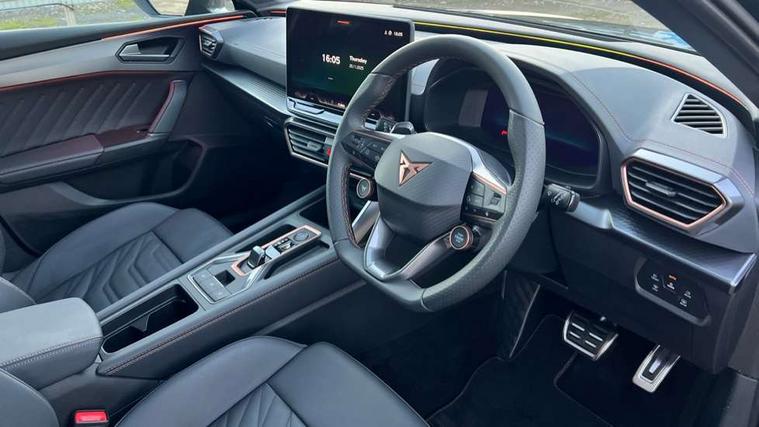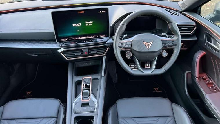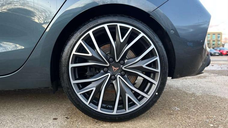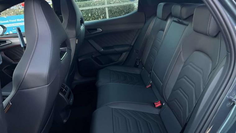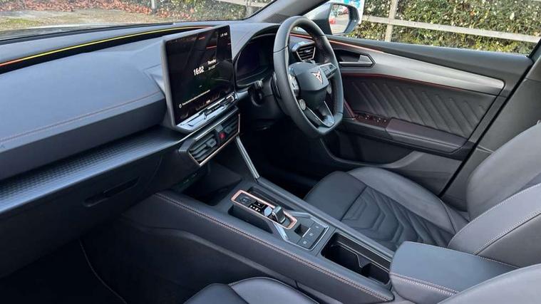 Adaptive cruise control with follow-to-stop and speed limiter, CUPRA mode drive profile selection with throttle response and gearshift mode, Digital cockpit, Driver alert system, Dynamic road sign display, E-call, Four x USB Type C ports (2 in front and 2 in rear), Front and rear parking sensors, Front assist with forward collision warning braking reaction to vehicles, pedestrians and cyclists, Front cross traffic assist, Full link smartphone integration with Mirror Link, wireless Apple CarPlay and wired Google Android Auto, Intelligent park assist, Lane change assist with emergency assist, Lockable tailgate, Rear view camera, RPM, trip computer, outside temp gauge, instrument light brightness, low fuel warning light, lights on reminder, gearshift indicator, Service interval indicator, Side and exit assist, Start/stop system with regenerative braking, Wireless phone charger, Auxiliary input socket, Auto dimming rear view mirror, Body colour door handles, Body coloured bumpers, Cupra matrix LED ultra headlight with variable light distribution, high definition LED w/signature w/ceremony, Cupra sports bumpers, Dark tinted rear windows, Electric front/rear windows, Electrically adjustable, heated and folding door mirrors, High beam assist, High-resolution matrix beam plus digital projection, LED front fog lamps with cornering function, LED rear fog lamp, Rain sensing wipers, Rear diffuser with twin oval exhaust pipe on each side, Rear side wing doors, Rear wash/wipe, Separate daytime running light with automatic headlight control and coming home feature, Third brake light, Welcome light with logo projector in door mirrors, 12v power supply in centre console, 3 seat bench in 2nd row, 5 headrests, 60/40 split rear bench seat with armrest, Ambient lighting (glovebox, footwell, ambient lighting multicoloured), Black headlining, Cupra sports pedals, CUPRA Supersports, heated steering wheel with satellite buttons, Electrically adjustable driver seat and lumbar support with memory function + manually adjustable passenger seat, Folding boot cover, Front and rear reading lights X 4, Front centre armrest, Heated front seats, Height/reach adjust steering wheel, Illuminated interior front door sills, Interior wraparound lighting, ISOFIX points in outer rear seats with top tether anchorage points, Leather upholstery, Single front passenger seat, Storage pockets on rear of front seats, Sunvisors with illuminated mirror, Three zone climate control, Dynamic and comfort pack - Leon Cupra, Media system plus with 12.9" display + navigation pack - Leon Cupra, 3 point seatbelts on all rear seats, ABS, Brake control system - ESC and brake booster, Child proof door locks, Cupra black brake calipers, Disc brakes in front, Driver and front passenger airbags with front passenger airbag de-activation, front side and curtain airbags, Electronic parking brake, Hill hold control, Pre-crash front and rear seat belt tensioner, window closure and hazard lights, Rear disc brakes, Seat belt reminder for front and rear seats, Tiredness recognition system, Tyre pressure monitoring system, Anti theft alarm system with interior monitoring in cab, backup horn and towing protection, KESSY Advanced - Keyless start, keyless entry, Locking wheel bolts, Chrome and copper interior detailing, 19" Mistral machined R black and silver alloy wheel with 91Y tyres, Breakdown kit, Tool kit,