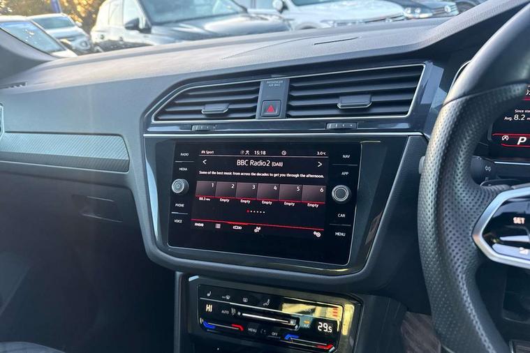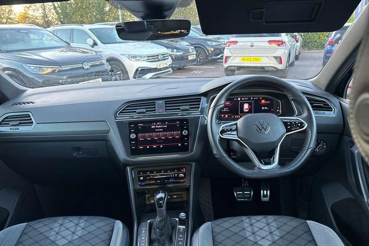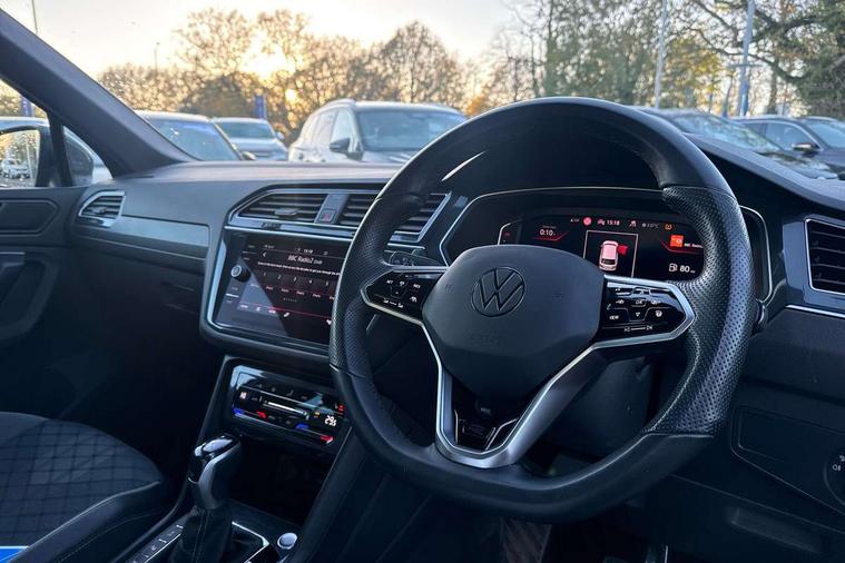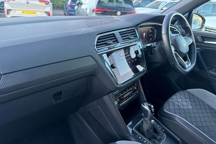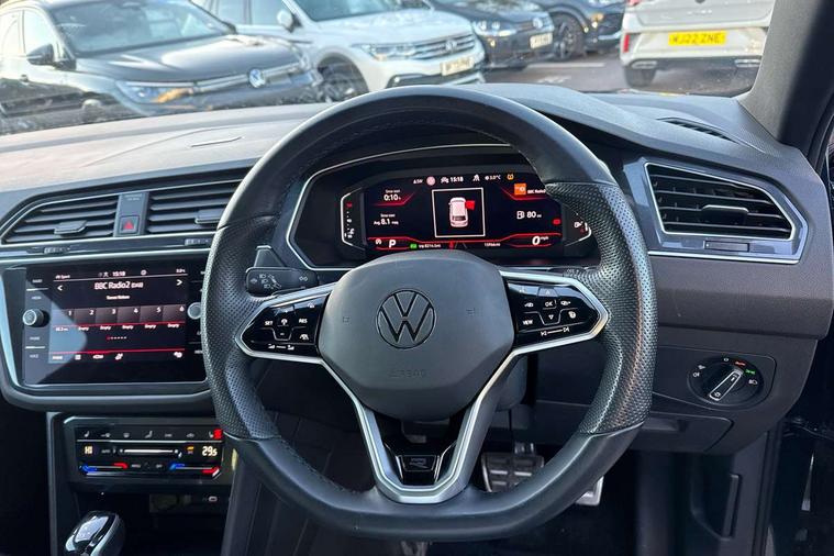 Adaptive cruise control ACC stop and go including speed limiter, App-Connect incl. App-Connect Wireless for Apple CarPlay and Android Auto, Bluetooth phone integration system, Distance control assist, Driver alert system, Driver profile selection, Dynamic road sign display, eCall emergency call system, Electromechanical speed sensitive power steering, Engine start/stop button, Lane keeping system Lane Assist, Lights on warning, Multifunction front facing camera, Outside temperature display, Premium multifunction display with multi colour display, Remote control boot opening, Rev counter, Revision / skills operating concept travel assistant, Service interval indicator, Speed limit display, Start/stop system with regenerative braking, Trip computer, Warning sound and light for doors and tailgate open, Battery regeneration during braking, Diesel particulate filter, Misfuel prevention device for diesel engine, Selective Catalytic Reduction, XDS electronic differential lock for improved traction and handling, 4 X 20 watt output, 8 Speakers, Diversity antenna for FM reception, Radio, SD card slot, Simultaneous pairing of 2 compatible mobile devices, SMS functionality - read, compose and send SMS messages using touch-screen display, Title and cover art display, USB C ports, Auto dimming interior rear view mirror, Automatic headlight control system, Body colour door handles, Chrome moldings on the side windows, Coming/leaving home lighting function, Dynamic headlight range control, Front and rear electric windows, Heated rear window, High level 3rd brake light, Laminated safety glass windshield, heat and sound insulating, LED headlamps with LED separate daytime running light and dynamic cornering light, LED rear combination lamps, LED rear number plate lights, License plate carrier in front and rear, Poor weather light and cornering light, R Line body kit, R Line side sills, Rain sensor windscreen wipers, Rear exhaust tailpipe, Rear fog lamp, Rear side wing doors, Rear spoiler in R style, Rear windscreen washer and wiper with interval delay, Side and rear windows in heat insulating glass, Trailer Stability Programme, Unique R Line badging, Windscreen wipers/ intermittent wipe + 4 position delay, 12V outlet in center console rear and in luggage compartment, 12V outlet in front and tray, 2 cup holders in front, 2 LED front reading lights, 2 LED rear reading lights, 3 bench rear seats in 2nd row, 3 rear headrests, 4 load lashing points, 40:20:40 split folding rear seats, Air Care Climatronic 3 zone automatic climate control with enhanced air filter and controls in the rear, Backrest release for left front seat, Black headlining, Brushed stainless steel pedals and footrest, Carpet mats in front and rear with decorative stitching in Gray, Climate control unit rear with touch function, Door and side trim panel in foam film, insert in leatherette, Front centre armrest, Front footwell illumination, Front seats head restraints (x-adjustment), Height adjustable front seats, Height/reach adjust steering wheel, Instrument lighting white adjustable panel illumination, Interior light with delay, Isofix Preparation 2 Rear child seats, Leather gear knob, Lockable cooled glovebox, Luggage compartment lighting, Luggage net, Rear bench seat asymetrically split folding, longitudinally movable and folding with load-through hatch and center armrest, Remote unlocking for rear seat backrest, Removable luggage cover, Removable rear headrests, Safety optimised front head restraints, Single front passenger seat, Sliding/reclining rear seats, Standard rear seat release, Storage compartment in driver's door, Storage compartment in passenger's door, Storage compartment in rear doors, Storage compartments in luggage area left and right, Storage tray on dashboard, Sun visors with illuminated vanity mirrors, Top front comfort seats, Variable boot floor, height adjustable and removable, Driver assistance pack plus - Tiguan DSG, 3 point seat belt for centre rear seats, 3 point seat belts with seat belt pretensioners for the outer rear seats, Active bonnet, Curtain airbags for front and rear passengers, Driver/Front Passenger airbags, Drivers knee airbag, Electronic parking brake with auto hold, Electronic Stability Control with driver steering recommendation, ABS, ASR, EDL, EDTC and trailer stabilization, Front assist with autonomous emergency braking (for Adaptive Cruise Control ACC up to 130 mph), Front disc brakes, Front passenger airbag deactivation, Front side airbags, Height adjustable front 3 point seatbelts + pretensioners, Hill hold control, Manual child proof rear door locks, Pedestrian monitoring system, Power assisted brakes, Proactive passenger protection system in combination with front assist, Rear disc brakes, Rigid safety cell with front and rear crumple zones, Two tone horn, Warning sound and light for front seat belts if unfastened, Anti theft alarm system with interior monitoring, backup horn and towing protection, Anti theft wheel bolts, Electronic engine immobiliser, Tool kit,