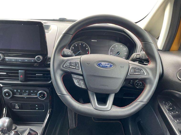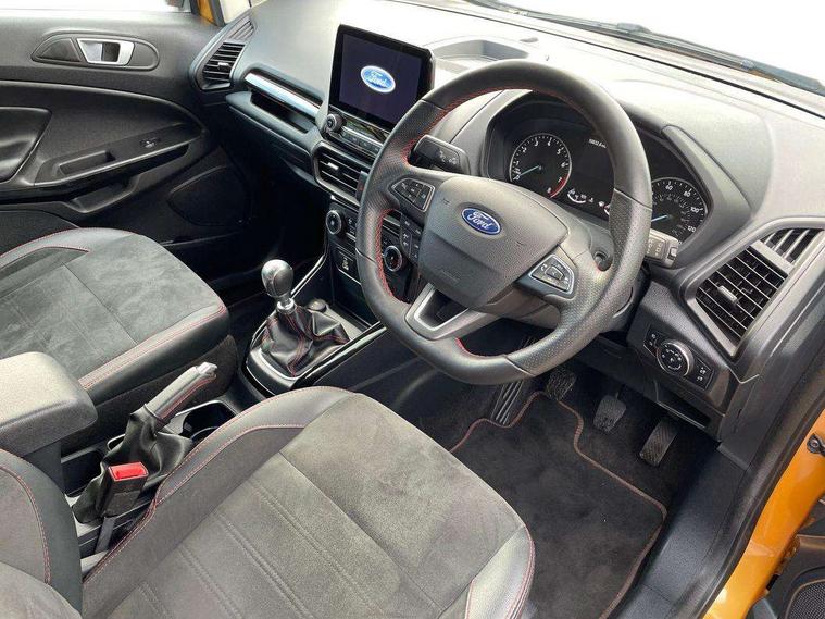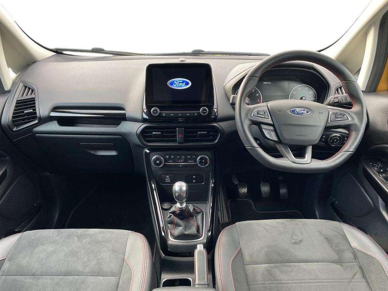 Cruise control, e-Call (emergency call), Easy fuel capless refuelling system, Ford SYNC 3 nav system with DAB radio, 8" screen, emergency assistance, Apple car play/Android auto, 2x USB, 6 speakers, Ford pass connect, Intelligent speed limiter, PAS, Rear parking sensors, Rear view camera, Traffic sign recognition, Trip computer, Sports suspension, Steering wheel mounted audio controls, Auto dimming rear view mirror, Automatic front wipers, Automatic headlights, Black roof rails, Body colour door handles, Body coloured bumpers, Chrome lower window surround, Electrically adjustable and heated door mirrors, Front fog lights, Front grille bars and surround in black, Headlight levelling control, Large rear roof spoiler, LED day running lights, LED third brake light, Power front and rear windows, Puddle lights, Quick-clear heated windscreen, Rear side wing doors, Rear wiper, ST Line body styling kit - Black headlamp bezel, front and rear sport bumpers, body colour lower door claddings, 12V socket in front and rear, 3 seat bench in 2nd row, 60/40 split rear seats, Ambient lighting, Centre console with sliding front armrest, Cooled glovebox, Courtesy lights with map reading light, Driver seat height/lumbar adjust, Driver's side glovebox, Driver/passenger sunvisors and lidded vanity mirrors, EATC - Electronic Auto Temperature control, Folding grab handles, Front head restraints, Front seat back map pockets, Illuminated glovebox, Illuminated luggage compartment, Isofix system on outer rear seats, Luggage compartment carpet, Neosuede/Partial sensico leather upholstery, Overhead console with sunglasses holder, Rake adjustable rear seats, Reach + rake adjustable steering column, Rear headrests, Sensico trimmed steering wheel, handbrake and gearshift gaiter with red stitching, Single front passenger seat, ST-Line Front floor mats with red stitching, Stainless steel sports pedals, Storage drawers under front seats, Tie down hooks, Variable boot floor, 3x3 point rear seatbelts, ABS, Autonomous emergency braking, Child locks on rear doors, Curtain airbags, Driver airbag, Drivers knee airbag, Electronic Stability Programme with hill launch assist, Front passenger airbag deactivation, Front side airbags, Passenger airbag, Pre collision assist system with AEB, Seatbelt reminder for driver and front passenger, Traction control, Tyre pressure monitoring system, Immobiliser, MyKey system, Remote central locking, Thatcham 1 volume sensing alarm, Low rolling resistance tyres, Tyre inflation kit,