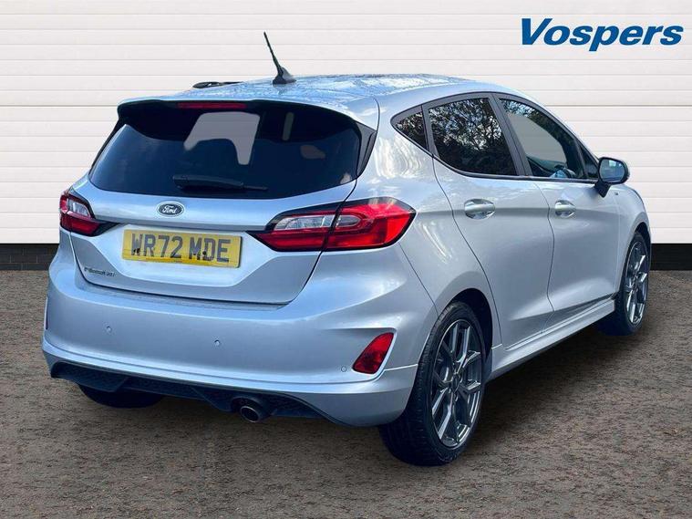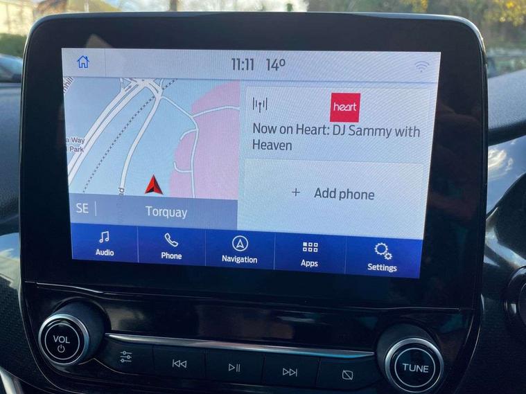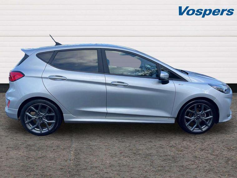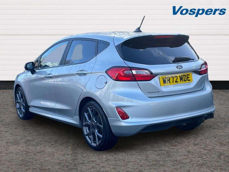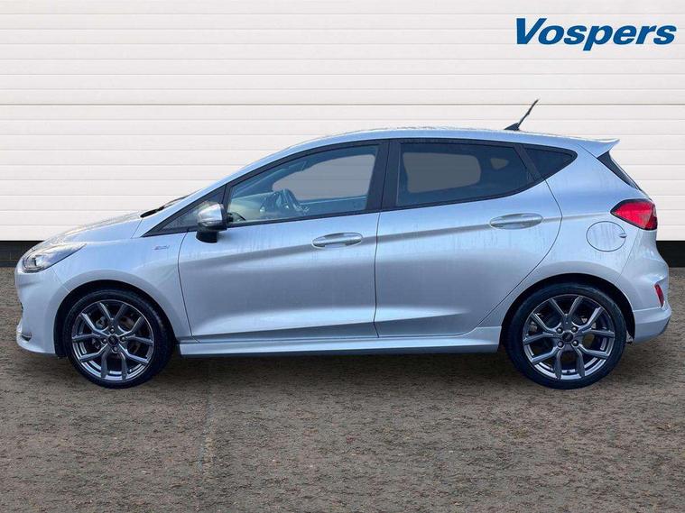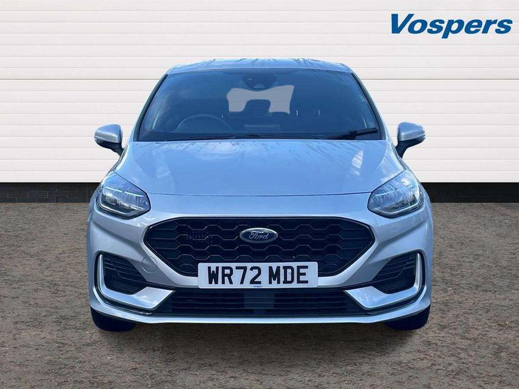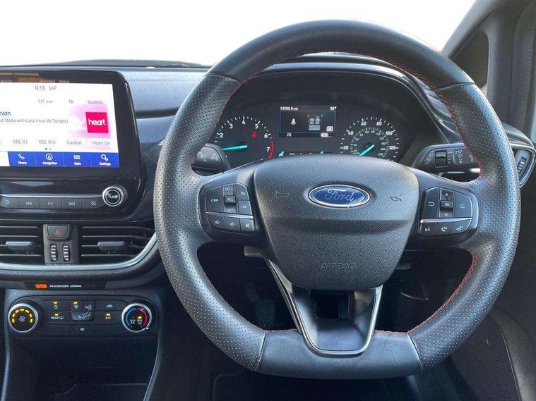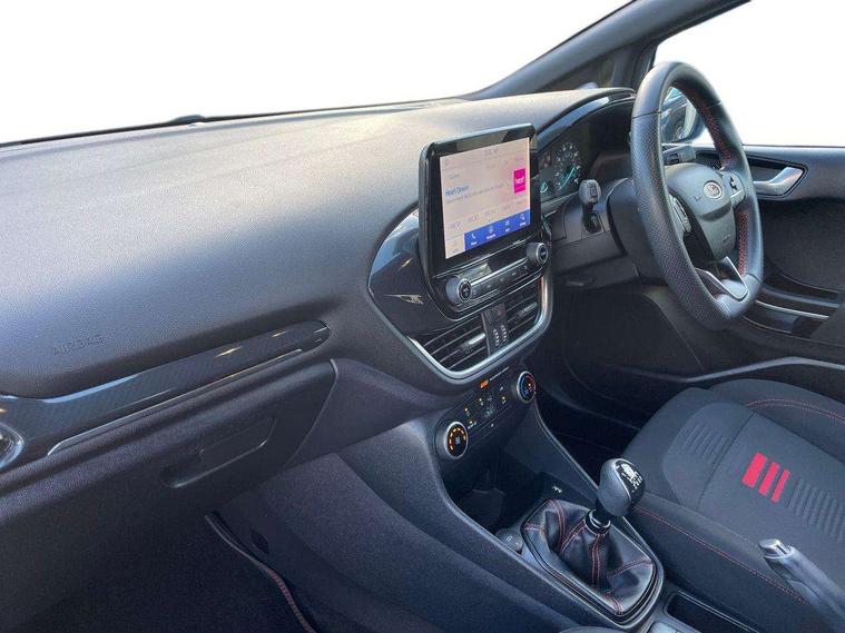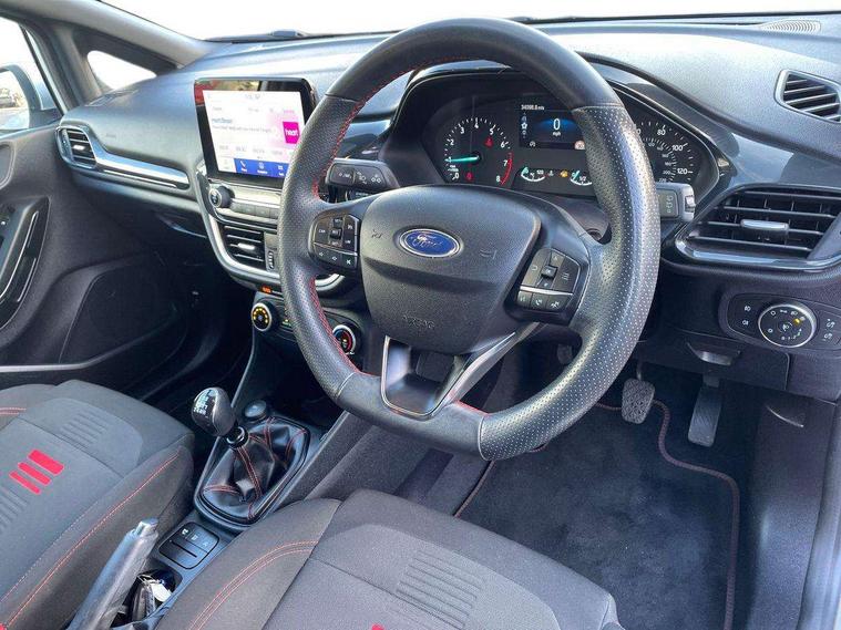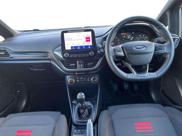 4.2" Colour TFT Ice blue illumination analogue cluster, Driver alert system, Electric power steering, Ford easy fuel, Lane keep assist, Lane keeping aid, Rear parking distance sensors, Selectable drive modes (Normal, Sport, Track), Trip computer, Sports suspension, 3rd brake light, Auto high beam, Automatic headlights, Body colour bumpers, Body colour large rear spoiler, Body coloured electrically operated with side indicators, Electric front windows/one touch facility, Electric rear windows, Quickclear heated windscreen, Rain sensing wipers and auto dimming rear view mirror, Rear privacy glass, Rear side wing doors, Rear wiper, Unique ST-Line grille, full bodystyling kit and large body coloured rear spoiler, 3 rear headrests, 3 seat bench in 2nd row, Adjustable head restraints, Black headlining, Centre console with opening armrest, 2x cupholders, 12v and USB, Cloth upholstery with red stitching, Leather gear knob, Manual 2 way passenger seat adjust, Manual 4-way driver seat adjust, Manual air conditioning, Premium floor mats, Sensico wrapped steering wheel, Single front passenger seat, 3 point seatbelts on all rear seats, Electronic stability control with hill start assist, Front and rear seat belt warning, Manual child lock in rear doors, Tyre pressure monitoring system, Keyless start with 'Ford Power' starter button, MyKey system, Remote central locking, Thatcham alarm with power door dead locks, 17" 5x2 spoke alloy wheels with rock metallic finish,