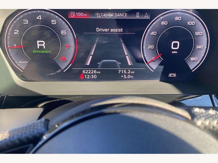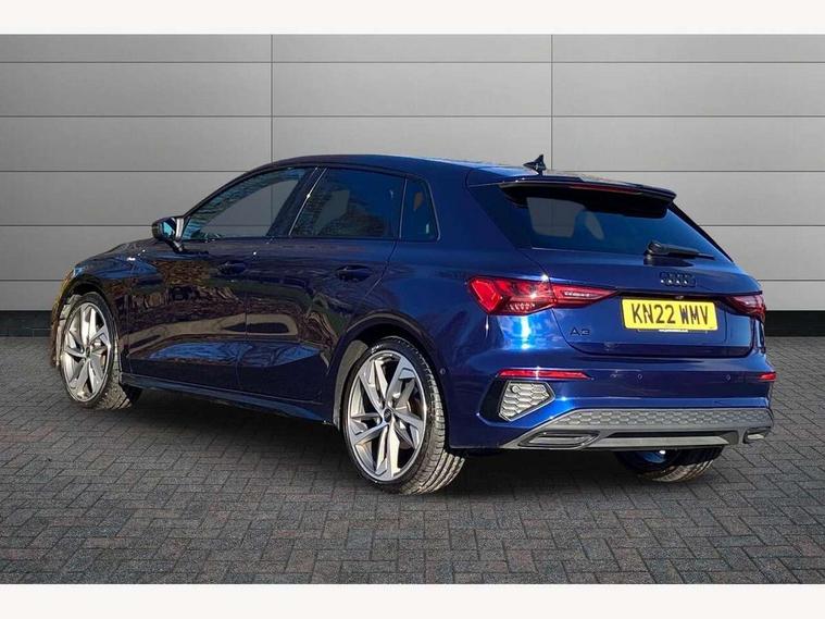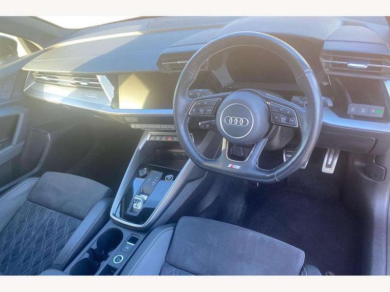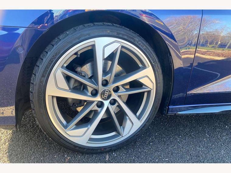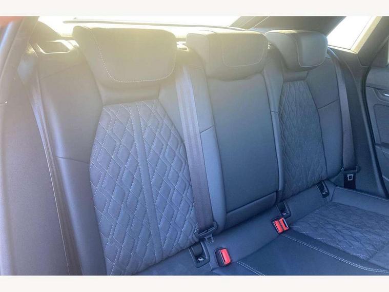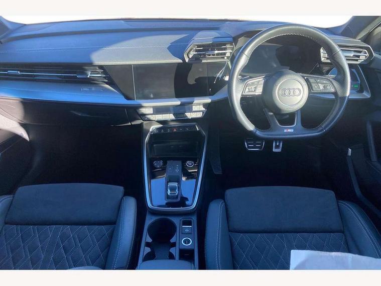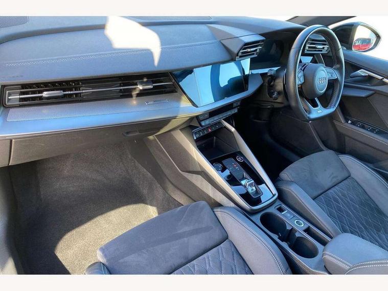 Audi connect emergency call and service, Audi drive select (Auto, Comfort, Dynamic, Efficiency and Individual), Audi smartphone interface, Audi virtual cockpit plus - 12.3" full HD resolution dynamic digital instrument cluster, Automatic start/stop system with recuperation, Bluetooth interface, Collision avoidance assistant, Electromechanical power speed sensitive steering, Lane departure warning system, MMI Navigation Plus with high resolution 10.1" colour touch screen display, Service indicator, Trip computer, Voice control system with natural language interaction, Sports suspension, 2xUSB-C connection with data and charging functions, 6 passive loudspeakers, DAB Digital radio, 3rd brake light, Acoustic glass windscreen, Audi matrix LED headlights with LED rear lights + dynamic front and rear indicators, Auto dimming frameless rear view mirror, Body colour front spoiler blade, Electrically adj heated/folding + automatically dimming exterior mirrors + automatic kerb side function for passenger side exterior mirror, Front electric windows, Headlight washers, Illuminated aluminium inserts front door sills with S logo, Integrated LED indicators in door mirrors, LED daytime running lights, Light and rain sensors, Privacy glass - dark tinted rear window, rear door and side windows, Rear diffuser in grained matt black, Rear electric windows, Rear side air outlets in grained matt black, Rear wiper, S roof spoiler, 12V socket and storage compartment in front centre console, 4 way electrically adjustable lumbar support for driver and front passenger, 40/20/40 split folding rear seat bench with cupholder, Black cloth headlining, Dual zone electronic climate control, Electrically adjustable front seats for driver's side, Front and rear centre armrest in leather, Front and rear headrests, Front/rear floor mats, Heated front seats, Height and reach adjustable steering wheel, Interior lighting - glove compartment light and right hand side, Luggage compartment floor covering, Seat side bolsters, Stainless steel pedals and front footrest in black, Aluminium interior elements pack - A3 Sportback, Black styling pack - A3 Sportback, Dinamica microfibre/mono.pur 550 artificial leather pack - A3 Sportback, Extended ambient lighting pack - A3 Sportback, LED interior lighting pack - A3 Sportback Edition 1/Vorsprung, 3x3 point rear seat belts, Driver and front passenger airbag with passenger airbag deactivation, Electronic Stabilisation Control (ESC) including ABS, ASR and EDL, First aid kit with warning triangle and 2 safety vests, Front side airbags with head airbags and interaction airbag, Hill hold assist, Pre-sense front with pedestrian and cyclist detection, Seatbelt monitoring, Tyre pressure loss indicator, Anti theft alarm, Anti-theft wheel bolts, Electronically operated child lock, Immobiliser, Remote control central locking, Accent surfaces in the dashboard and centre console in platinum grey silk effect paint finish, Dark spectrum aluminium inlays, 19" 5 arm trapezoid design alloy wheels in titanium matt grey with diamond cut finish,