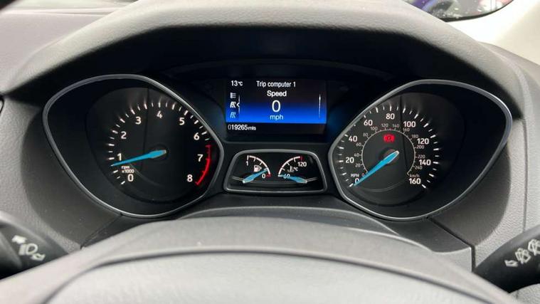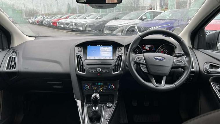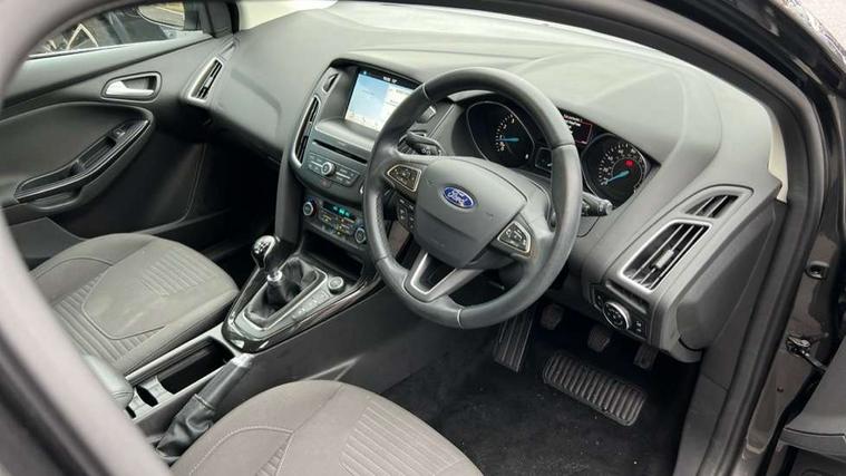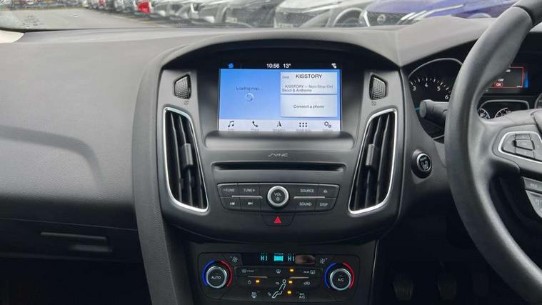 Cruise control + speed limiter, Digital clock, Easy fuel capless refuelling system, Eco mode, Electric boot release, PAS, Rear parking sensor, TFT cluster screen, Trip computer, 6 speakers, Aux input, Steering column with mounted audio controls, SYNC 2 DAB radio/CD, 8" colour touch screen, emergency assistance, Bluetooth connection, advanced voice control, USB connection, 'Quickclear' heated windscreen/heated washer jets, Auto dimming rear view mirror, Automatic headlights, Automatic rain sensing wipers, Body colour bumpers, Body colour door handles, Body colour door mirrors, Body colour rear spoiler, Chrome finish on upper door line, Chrome radiator grille and surround, Electric adjustable heated door mirrors, Front fog lights, Front variable intermittent wipers with electric wash, Heated rear window, LED daytime running lights, Tailgate wash/wipe, 3 spoke leather steering wheel, 60/40 split back and cushion rear seats with 2 height adjustable headrests, Centre console storage box/armrest, Driver's seat with adjustable lumbar support, Dual electronic automatic temperature control air conditioning - CFC-free, Height adjustable front headrests, Isofix child seat preparation, Passenger seat height/lumbar adjustment, Reach + rake adjustable steering column, Sports style front seats, ABS+Electronic Brake force Distribution, Active city stop, Driver airbag, ESP with traction control + emergency brake assist, Front inertia reel height adjustable seatbelts with pre-tensioners, Front passenger airbag, Front side airbags, Hill start assist, Side curtain airbags, Three rear inertia reel lap/diagonal seatbelts, Torque vectoring brake, Tyre pressure monitoring system, Immobiliser-Passive Anti-Theft System (PATS), Key free system, MyKey system, Remote central double locking, Thatcham Cat.1 alarm,