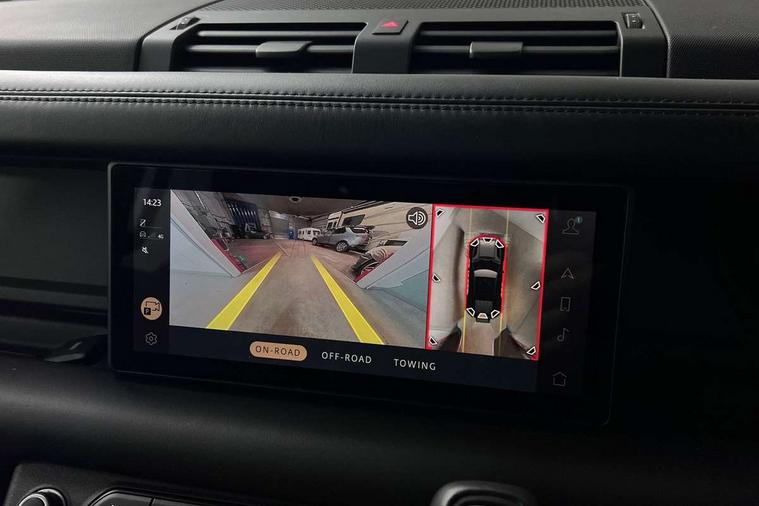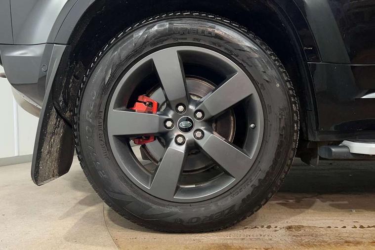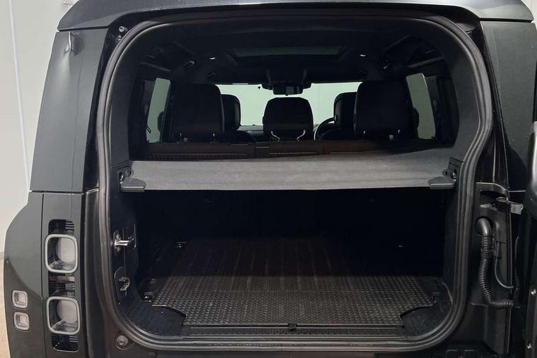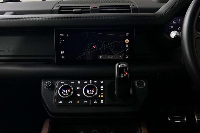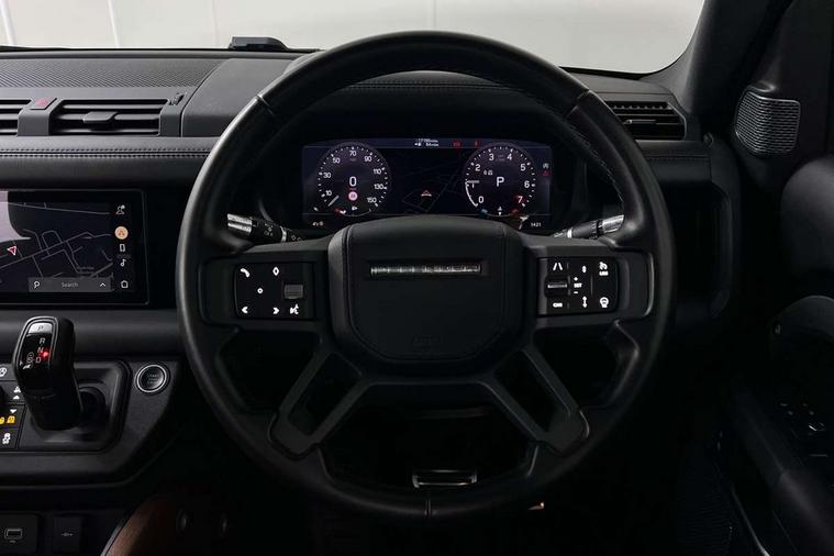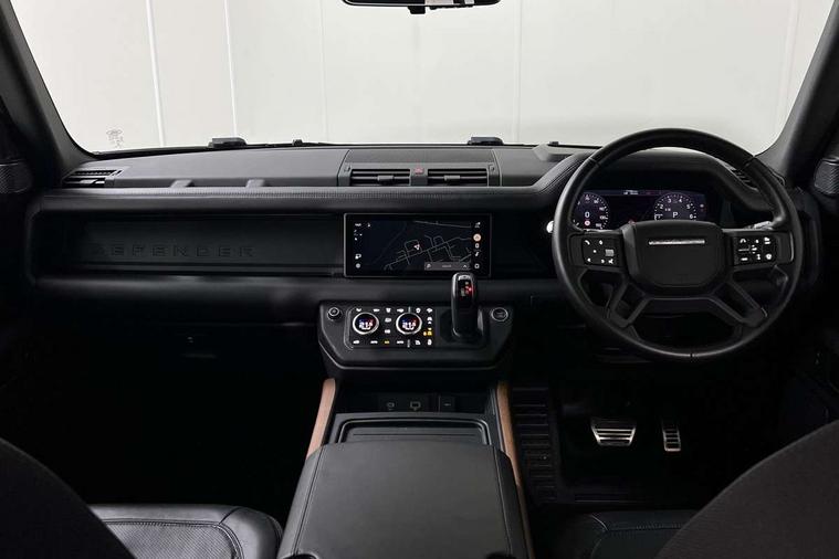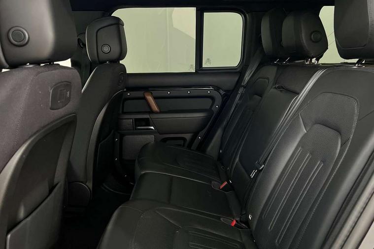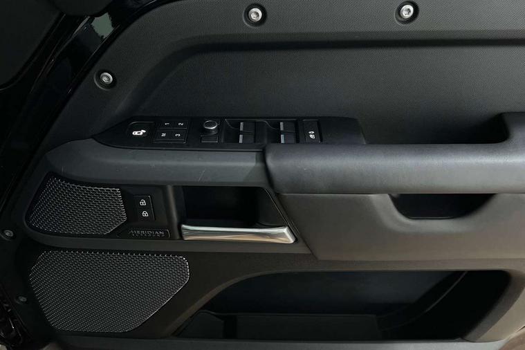 10" touch screen, 360 degree parking aid, 3D Surround Camera with 360 View, 180 Rear View, Front Traffic Detection, Forward Vehicle Guidance, Tow Hitch Assist and clear sight Ground View, Adaptive cruise control, Android Auto, Apple CarPlay, Assisted tailgate with soft close, Blind spot assist, Bluetooth system, Clear exit monitor, Click and go integrated base unit, Connected navigation pro, Driver condition monitor, Head up Display, Interactive driver display, Lane keep assist, PAS, Rear collision monitor, Rear traffic monitor, Traffic sign recognition with adaptive speed limiter, Trip computer, Wade Sensing, Adaptive dynamics, All terrain progress control, Configurable Terrain Response, Electronic active differential with brake torque vectoring, Electronic air suspension, Terrain Response 2, DAB Radio (Digital Audio Broadcasting), Meridian 700w surround sound audio system with 15 speakers, Pivi pro connected, Automatic headlight levelling, Automatic headlights, ClearSight interior rear view mirror, Darkened LED tail lights, Electric heated/power fold door mirrors with approach lights and auto dimming driver side, Front fog lights, Heated windscreen, Illuminated metal treadplates with brand name script, Matrix LED headlights with signature DRL, Puddle lights, Rain sensing windscreen wipers, Rear fog lights, Trailer stability assist, X badge, 12V power socket in loadspace, 14 way heated and cooled electric adjustable memory front seats with 4 way manual headrests, 40:20:40 folding, heated rear seats with centre armrest, Bright metal pedals, Carpet mats, Domestic plug socket, Ebony morzine headlining, Electric reach + rake adjustable steering column, Extended leather upgrade, Front passenger isofix child seat attachment, Heated steering wheel, Leather gearshift, Leather steering wheel, Loadspace cover, Loadspace Hook, Multifunction steering wheel, Premium cabin lighting, Rear headrests, Rear ISOFIX, Sunvisors with illuminated vanity mirrors, Twin front cupholders with cover, Windsor Leather and Steelcut premium textile upholstery, Online pack with data plan - Defender, X exterior pack - Defender, 5 x 3 point seatbelts, ABS, Cross car beam in Dark Grey Powder Coat, Driver and passenger airbags, Emergency braking, ESP + traction control, Hill launch assist, Remote for (e-Call, Optimised assistance call, InControl app, Climate, beep and flash and door), TPMS (Tyre pressure monitoring system), Alarm, Immobiliser, Intrusion sensor, Keyless entry and go, Locking wheel nuts,