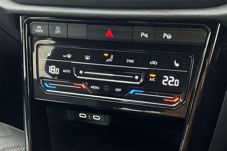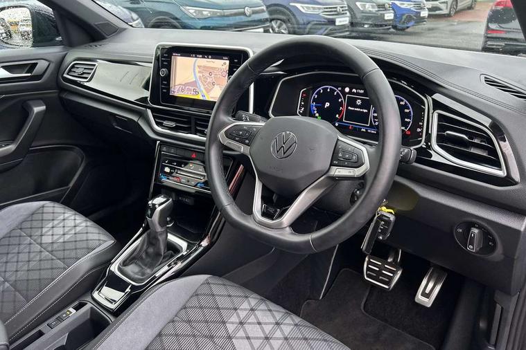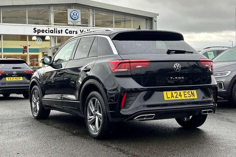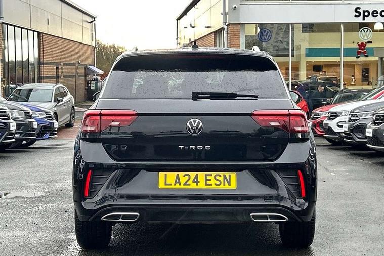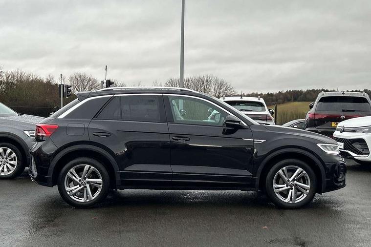 10.25" Digital cockpit pro, Advanced driver attention and drowsiness monitor, Bluetooth mobile phone interface, Emergency call service, Lane keeping system Lane Assist, Modified key software - reduce switch off time for key status change to Long no motion, Online services, Park assist including front and rear parking sensors, Service interval indicator, Tailgate/trunk lid release from outside, Think blue trainer driver tips and journey analysis, Warning sound and light for front seatbelts unfastened, Wireless app connect, Battery regeneration during braking, Start/stop function with battery regeneration, Diversity antenna for FM reception, Music playback - MP3, WMA and AAC files, Premium USB cable in choice of either Apple or Android smartphone compatibility, SD card slot, Simultaneous pairing of 2 compatible mobile devices, Title and cover art display, We Connect and We Connect Plus functionality, 3rd brake light, Auto dimming interior rear view mirror, Automatic hazard lights activation under emergency braking, Automatic headlight control with LED separate daytime running lights with coming/leaving home function, Electrically adjustable and heated door mirrors, Extended roof spoiler, Exterior mirrors aspherical on driver side, convex on front passenger side, External USB type C socket and charging sockets, Front windscreen wiper with intermittent wipe and 4 position delay, Heated rear window, LED rear combination lamps, LED rear number plate lights, Power windows with comfort operation and circuit breaker, R-Line design body coloured bumpers, Rain sensor, Rear exhaust tailpipe, Rear fog light on one side and reversing lights on both sides, Rear side wing doors, Rear wash/wipe with intermittent wipe setting, Remote electrically foldable door mirrors, puddle lights and reverse activated passenger's door mirror, 12V power socket in centre console, 3 rear head restraints, 3 seat bench in 2nd row, 4 load lashing points in luggage compartment, Air care climatronic air conditoning system with active combination filter and 2-zone temperature control, Black roof lining, Chrome plated radiator grille inserts, air vent surrounds and light switch surrounds, Door and side trim panel with leatherette insert, Front + rear carpet mats, Front centre armrest, Front cupholders x 2, Front footwell illumination, Front reading light, Front scuff plates with R Line logo, Front seat back storage pockets, Glove compartment door with light, Instrument lighting, white adjustable panel illumination, Interior ambient lighting and surround lighting, Interior light delay, Isofix child seat preparation, Leather gearshift handle, Load-through provision with cup holder when folded down ('Unsplit rear seat bench, split folding backrest, with centre armrest), Luggage compartment lighting, Single front passenger seat, Stainless steel pedals, Storage compartment in left and right luggage area, Storage compartment in rear doors, Storage compartments in driver and front passenger doors, Sunvisors with illuminated vanity mirrors, Variable boot floor, height adjustable and removable, Driver assistance pack without proactive passenger protection - T-Roc, 3 point height adj front seatbelts + pretensioners, 3 point seatbelts in outer rear with ECE label, ABS, Child locks on rear doors, City emergency braking and pedestrian monitoring, Driver and front passenger airbag with front passenger airbag deactivation, Driver and front passenger safety-optimised head restraints, Drivers seatbelt reminder, Electronic parking brake, Electronic Stability Control (ESC) inc EDL (Electronic Differential Lock) and ASR (Traction Control), Front and rear passengers curtain airbag system including front side airbags, Hill start assist, Predictive pedestrian protection, Rear disc brakes, Two tone horn, Tyre pressure loss indicator, Volkswagen roadside assistance, Anti-theft alarm system with interior monitoring, backup horn, and towing protection, Remote central locking with SAFELOCK, radio remote control with 2 remote control folding keys, Trims for alloy wheels,