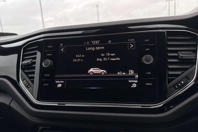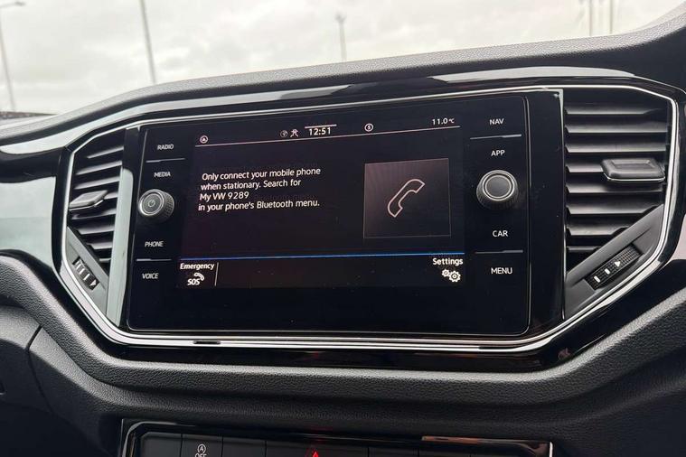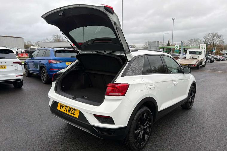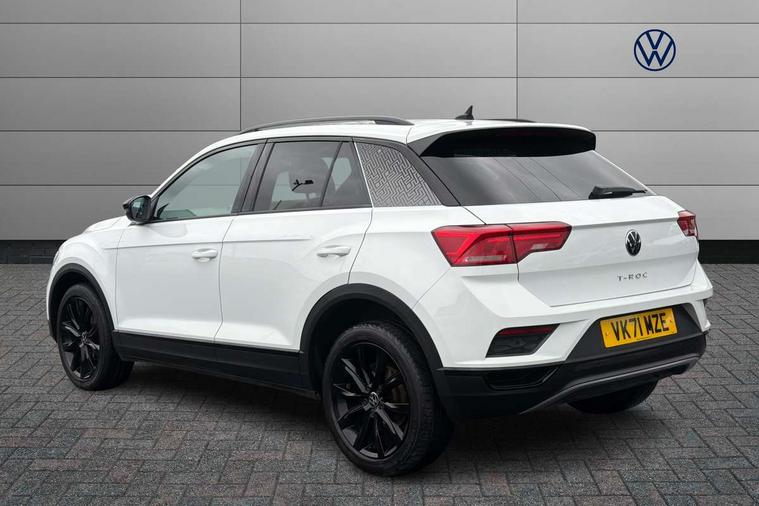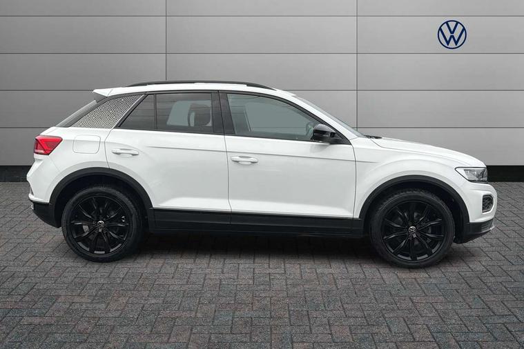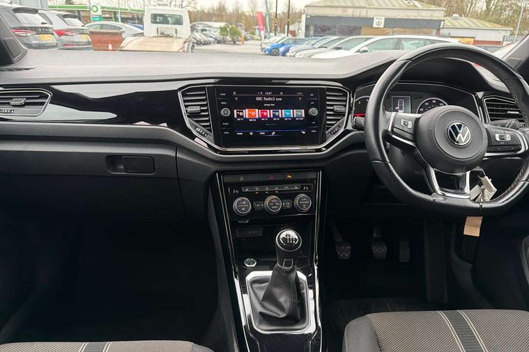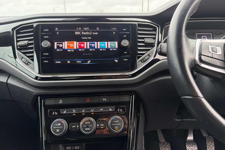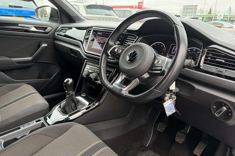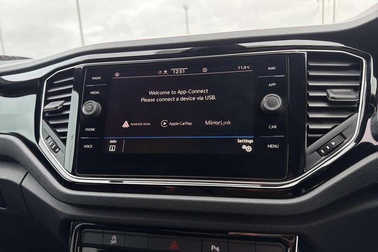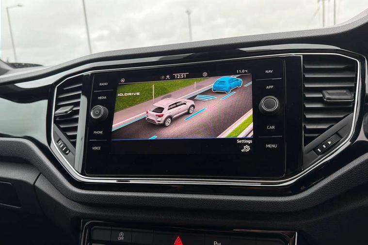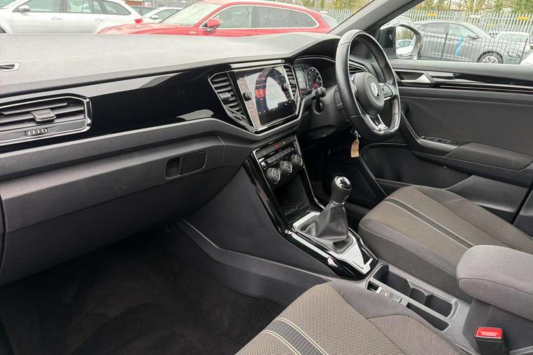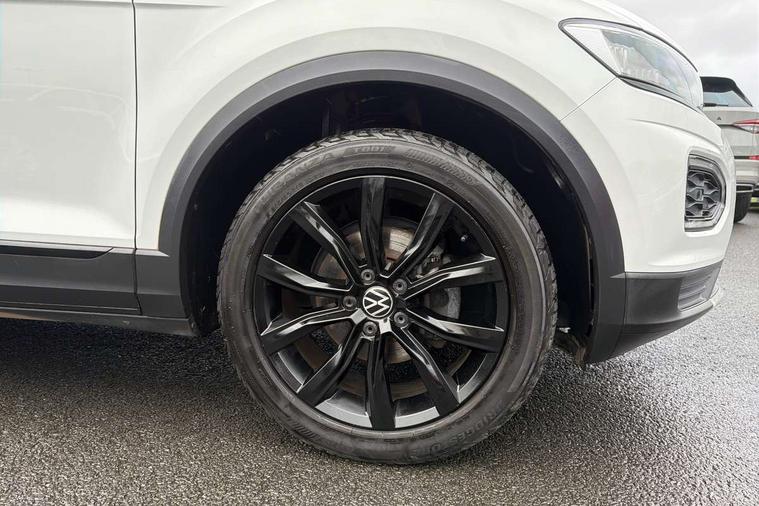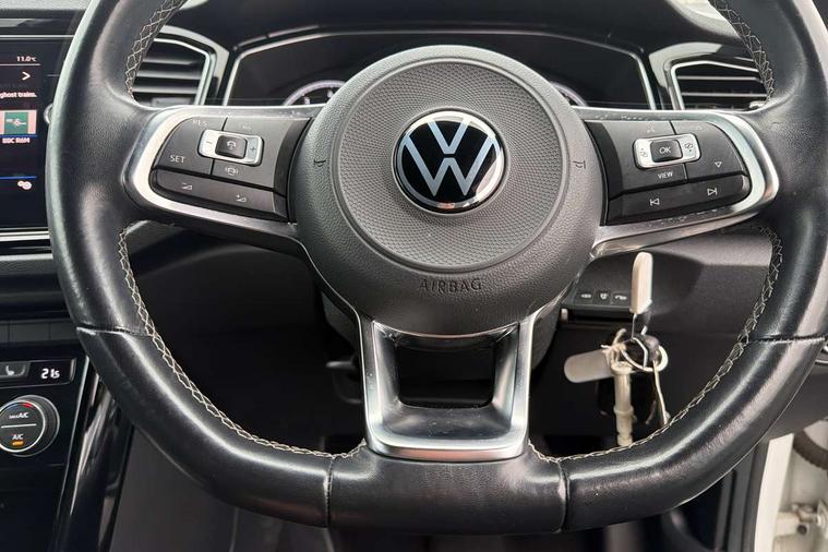 'Lights On' Reminder warning buzzer, Adaptive cruise control, Bluetooth telephone and audio connection for compatible devices, Car information display, Driver tips and journey analysis, Emergency call service, Lane assist with warning text instrument cluster, Modified key software - reduce switch off time for key status change to Long no motion, Multifunction camera, Multifunction computer with visual gear change recommendation for fuel consumption, Service interval indicator, Think blue trainer driver tips and journey analysis, Warning sound and light for doors and tailgate open, Warning sound and light for front seatbelts unfastened, Wireless app connect for apple carPlay, Battery regeneration during braking, Start/stop function with battery regeneration, DAB Digital radio, Diversity antenna for FM reception, Multi device interface (MDI) with USB connection, Music playback - MP3, WMA and AAC files, Premium USB cable in choice of either Apple or Android smartphone compatibility, SD card slot, Simultaneous pairing of 2 compatible mobile devices, Single CD player, glovebox mounted, SMS functionality - read, compose and send SMS messages using touch-screen display, Storage compartment with longitudinal and height adjustable in armrest and two rear air vents, Title and cover art display, USB-C Interface and USB charging socket, Auto dimming interior rear view mirror, Automatic coming/leaving home lighting function and daytime running lights, Automatic hazard lights activation under emergency braking, Black grained lower door protectors, Black grained wheel arches, Black roof rails, Body colour door handles, Body colour sports bumpers with silver metallic underbody fascia, Body coloured bumpers and radiator grille with chrome trim and front fog lamps with chrome bezel, Chrome trim on upper and lower radiator grille, Dusk sensor, Electrically foldable, adjustable and heated door mirrors with puddle lights and reverse activated kerb-view adjustment on passenger's door mirror, Exhaust tailpipes in black, External USB type C socket and charging sockets, Front and rear electric windows, Front windscreen wiper with intermittent wipe and 4 position delay, Fully galvanised body, Heated rear window, High level 3rd brake light, LED headlamps with automatic range adjustment and unique signature LED separate daytime running lights, LED rear number plate lights, LED tail lamp rear comination lamps, Privacy glass, Rain sensor, Rear tinted glass from B-pillar backwards approx 65% tinted, Rear wash/wipe with intermittent wipe setting, Trim strips on grille and vehicle side, Volkswagen roundel, 12V socket in centre console storage area, 3 rear head restraints, 4 load lashing points in luggage compartment, Black roof lining, Climate control - 2 zone electronic air conditioning with automatic air recirculation and allergy filter, Door and side trim panel, Drawer under drivers seat, Front centre armrest, Front cupholders x 2, Front seat back storage pockets, Glovebox, Height adjustable front seats, Height/reach adjust steering wheel, Instrument lighting, white adjustable panel illumination, Interior light in footwell, Isofix easy fit child seat preparation for 2 outer rear seats, LED interior light with switch off delay/dimmer and 2 front/rear LED reading lights, Load through provision with single cup holder when folded down, Luggage compartment cover, removable, Luggage compartment lighting, Split folding rear seat backrests with centre armrest, Storage compartment in left and right luggage area, Storage compartment in rear doors, Storage compartments in driver and front passenger doors, Sunvisors with illuminated vanity mirrors, Three spoke multi-function leather trimmed steering wheel and gearknob, White ambient lighting, Black decal on C-pillar pack - T-Roc, 3 rear three point seatbelts, ABS, Curtain airbags, Driver and front passenger safety-optimised head restraints, Drivers and front passengers airbags with passengers deactivation switch, Drivers seatbelt reminder, Electronic parking brake with auto hold, Electronic stability control (ESC) includes ASR, EDL, EDTC and trailer stabilisation function, Front assist with city emergency braking and pedestrian monitoring, Front seat side impact airbags, Predictive pedestrian protection, Rigid safety cell with front and rear crumple zones, Single tone horn, Three point height adjust front seatbelts + pretensioners, Tyre pressure loss indicator, Ventilated front and rear disc brakes, Volkswagen roadside assistance, Alarm with remote central locking and interior protection, Electronic engine immobiliser, Remote central locking with SAFELOCK, radio remote control with 2 remote control folding keys, Black decorative trims, Piano black decorative inserts in dash, centre console and door panel, 18" Arlo black diamond turned surface alloy wheels with low rolling resistance tyres and anti theft wheel bolts,