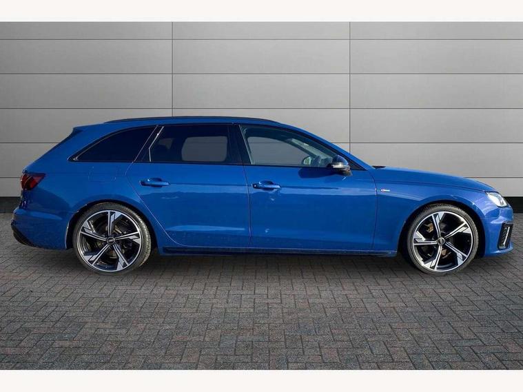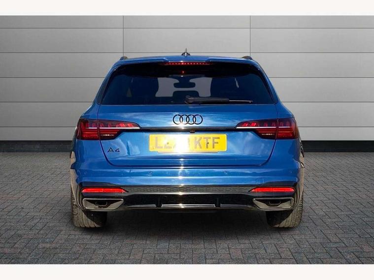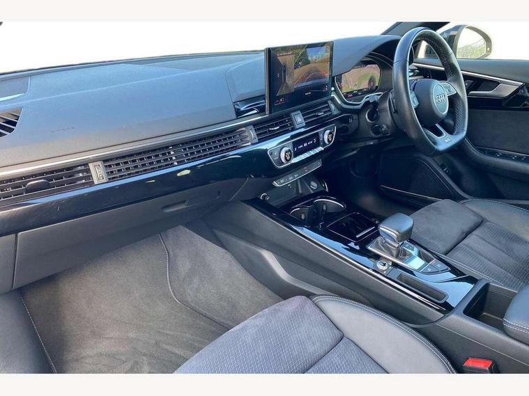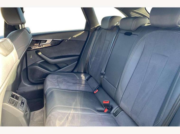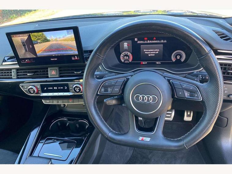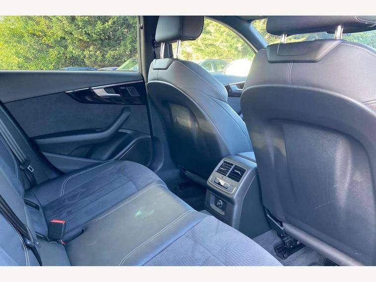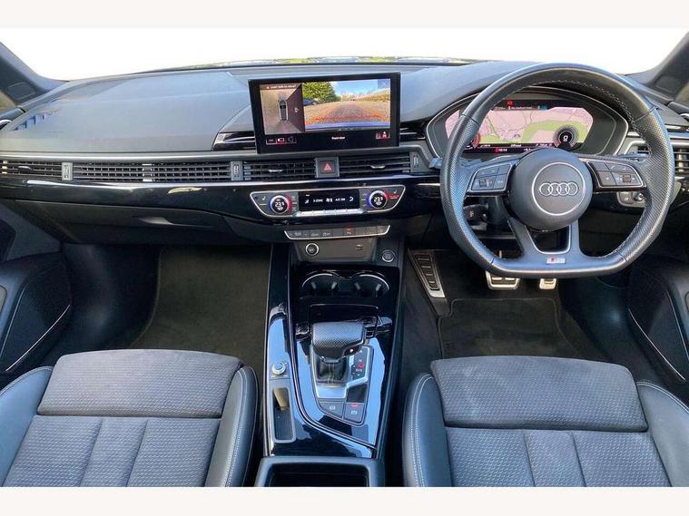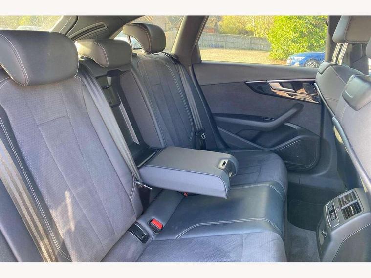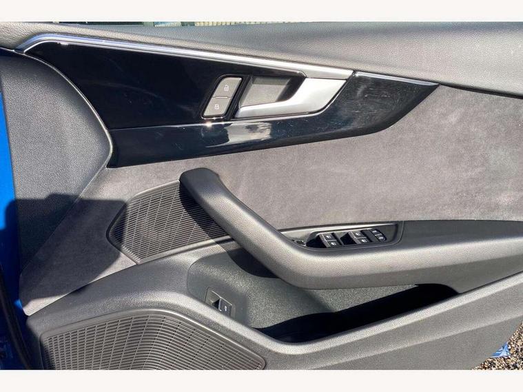 Audi connect safety and service (e-call), Audi connect with Amazon Alexa Integration, Audi drive select, Audi smartphone interface, Audi virtual cockpit, Automatic start-stop system with coasting functionality and efficiency programme, Bluetooth interface, Electromechanical power steering, Email, calendar and text messages displayed via MMI, Front and rear parking sensors, MMI Navigation plus with MMI touch includes 10.1" high resolution colour MMI display, 3D map, Power operated tailgate, Rear view camera, Voice control system, 54 litre fuel tank, Sports suspension lowered by 23mm, 2 USB charging ports, 8 passive loudspeakers, DAB digital radio reception, Audi beam uses LEDs to project the audi logo onto the ground as you exit your A4, Auto dimming rear view mirror, Black Audi rings and black badging (model name in black badging, no engine badging), Body colour door handles, Body colour front spoiler lip, Body colour side sill trim, Electrically folding auto dimming/adjustable/heated door mirrors with LED side indicators and kerb view function for passenger side, Exhaust tailpipes in high dark chrome, Grained matt black side air inlets with matt aluminium silver inlay, High beam assistant, High gloss black B pillar trims and triangular rear door trim, LED headlights with LED rear lights + dynamic rear indicators + headlight adjustment and high beam, turning light + LED daytime running lights, LED third brake light, Privacy glass, Rain and light sensors, Rear diffuser in matt black with trim strip in matt aluminium silver, Rear side wing doors, Rear wiper, RS4 rear spoiler in body colour, S Line roof edge spoiler, Sport front and rear bumpers with side skirts, Variable intermittent front wash/wipe, Windscreen with acoustic glazing, 4 way electric lumbar support for driver and front passenger, 40/20/40 split folding 3 rear seat bench in 3 parts with rear centre armrest, Black cloth headlining, Black perforated leather gearknob, Contrast stitching on seats, steering wheel and gear lever gaiter, Deluxe 3 zone electronic climate control, Door sill trims with aluminium inlay, Electric load area cover, Front and rear head restraints, Front centre armrest, Heated front seats, Illuminated door sill trims with S logo, ISOFIX child seat mounting and top tether, Manual seat adjustment, Single front passenger seat, Stainless steel pedals and foot rest, Tool kit, Black styling pack - A4 Avant, LED Interior light pack - A4/S4, 3 rear seatbelts, 6 airbags - Driver, front passenger, curtain and side windows, Electronic Stabilisation Control (ESC) including ABS, ASR and EDL, Hill hold assist, Multi collision brake assist, Pop-up bonnet for pedestrian protection, Pre sense city, Rear door child safety locks, Seatbelt monitoring, Warning triangle and first aid kit, Anti theft alarm, Anti theft wheel bolts, Central locking, Keyless Go, Piano black finish inlay, Tyre repair kit,