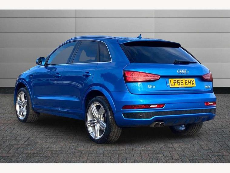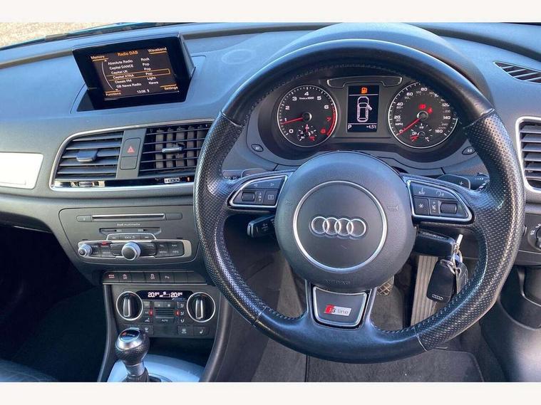 6.5" colour display screen, Audi drive select, Cruise control, Low washer fluid indicator, MMI - Multi Media Interface control system, On board computer, PAS, Remote electric boot opening/closing, Service interval indicator, Voice control system, Audi music interface, DAB digital radio module, Acoustic windscreen, Aluminium window surround, Auto dimming rear view mirror, Body colour door mirrors, Body coloured bumpers, Chrome exhaust tailpipe, Chrome fog light surround, Chrome grille, Coming home function, Door mirror integrated indicators, Front and rear electric windows, Front fog lights, Heated windscreen washer jets, High beam assist, LED daytime running lights, LED headlights with headlight washers, Light and rain sensor for auto activation of lights and windscreen wipers, Loading sill protector in stainless steel, Privacy glass, Rear wiper, S Line body styling, Sunband for windscreen, Towbar preparation, 12V socket in rear centre console, 3 spoke multi-function Q design steering wheel with paddle shift, Aluminium door sill trims, Black cloth headlining, Dual zone climate control, Electric front lumbar adjustment, Front and rear headrests, Front and rear velour floor mats, Front centre armrest with storage compartment and angle adjustment, Front sports seats, Height/reach adjust steering wheel, ISOFIX on front passenger and rear outer seats, Jack and tool kit, Perforated leather gearknob, Retractable luggage cover, Split fold rear seat, Under floor storage in luggage area, 3x3 point rear seatbelts, ABS+Electronic Brake force Distribution, Curtain airbags, Driver and passenger airbags, Driver and passenger side airbags, EDL + ASR, Electrically operated child locks on rear doors, Electromechanical parking brake, ESP, First aid kit, Front passenger airbag deactivation, Seatbelt warning light, Tyre pressure monitoring system, Warning triangle, Locking wheel bolts, Remote central locking, Thatcham category 1 alarm + immobiliser, Matt brushed aluminium fascia and door trim inlays,