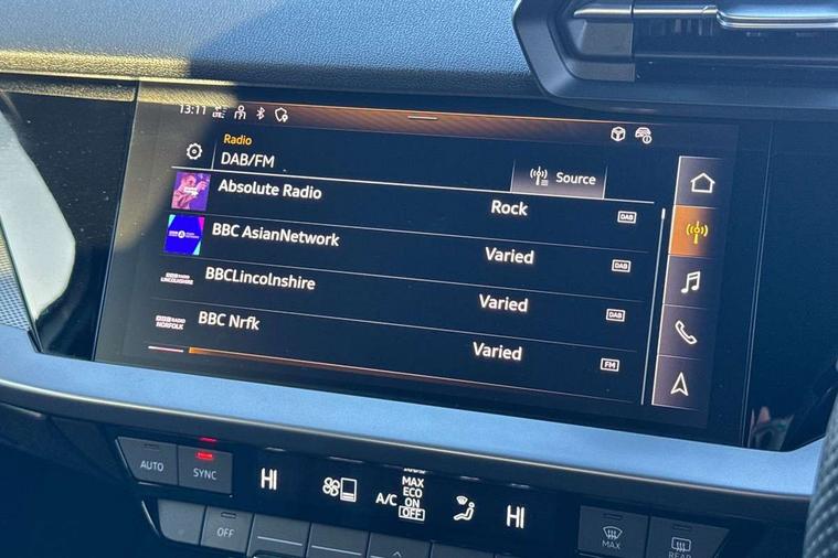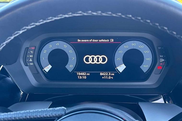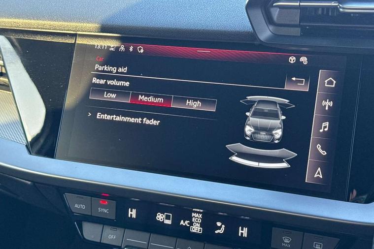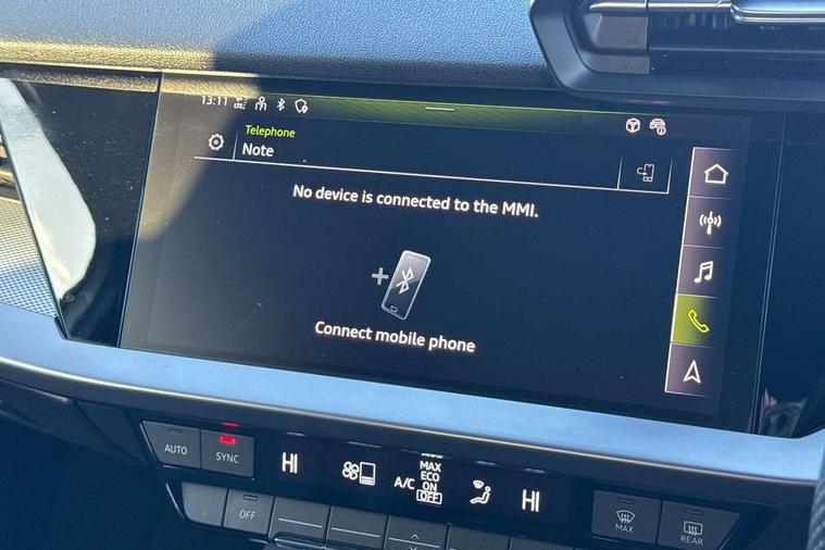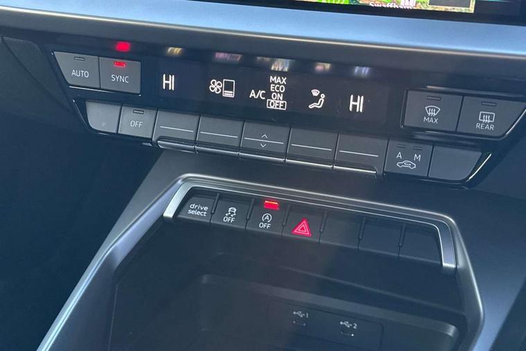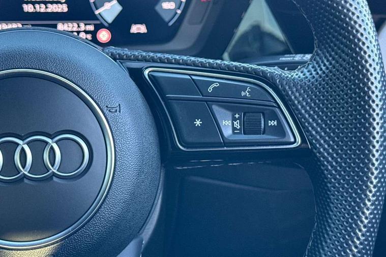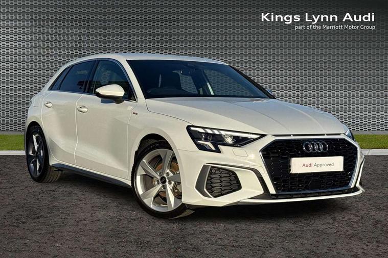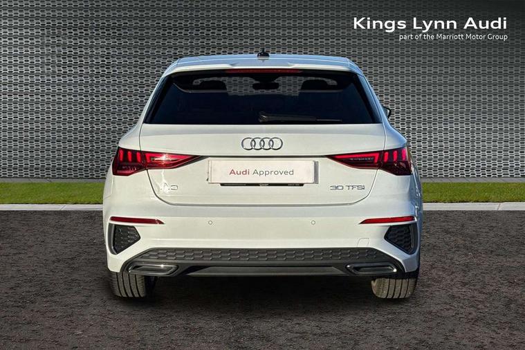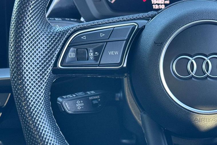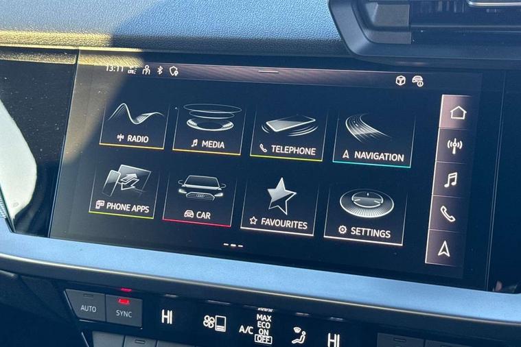 Audi drive select (Auto, Comfort, Dynamic and Individual), Audi smartphone interface, Audi Virtual Cockpit - 10.25" digital and colour instrument cluster, Automatic start/stop system with recuperation, Bluetooth interface, Camera based traffic sign recognition, Collision avoidance assistant, Cruise control, e-Call (emergency call), Electromechanical power speed sensitive steering, Lane departure warning system, MMI Navigation Plus with high resolution 10.1" colour touch screen display, Rear parking sensors, Service indicator, Trip computer, Voice control system with natural language interaction, Sports suspension, 2xUSB-C connection with data and charging functions, 6 passive loudspeakers, DAB Digital radio, 3rd brake light, Acoustic glass windscreen, Aluminium window trim, Auto dimming frameless rear view mirror, Body colour exterior mirrors, Electrically adjustable/heated/folding/auto dimming door mirrors with integrated LED indications + kerb view function for passenger side, Front electric windows, Illuminated door sills with aluminium inserts at the front with S logo, LED daytime running lights, LED headlights with LED rear lights and dynamic rear indicators, Light and rain sensors, Privacy glass - dark tinted rear window, rear door and side windows, Rear electric windows, Rear side air outlets in grained matt black, Rear side wing doors, Rear wiper, S line bumpers, S roof spoiler, 12V socket and storage compartment in front centre console, 3 seat bench in 2nd row, 3 spoke leather multifunction steering wheel, 4 way electrically adjustable lumbar support for driver and front passenger, 60/40 split folding rear seat bench, Black cloth headlining, Dual zone electronic climate control, Front and rear centre armrest in artificial leather, Front and rear headrests, Front/rear floor mats, Height and reach adjustable steering wheel, Interior lighting - glove compartment light and right hand side, Luggage compartment floor covering, Manual boot compartment lid, Manually adjustable front seats, Seat side bolsters, Single front passenger seat, Stainless steel pedals and front footrest in black, Twin leather upholstery with front sports seats S embossed logo, Aluminium interior elements pack - A3 Sportback, LED interior lighting pack - A3 Sportback, S line styling pack - A3 Sportback, 3x3 point rear seat belts, Driver and front passenger airbag with passenger airbag deactivation, Electronic Stabilisation Control (ESC) including ABS, ASR and EDL, First aid kit with warning triangle and 2 safety vests, Front side airbags with head airbags and interaction airbag, Pre-sense front with pedestrian and cyclist detection, Seatbelt monitoring, Tyre pressure loss indicator, Anti theft alarm, Anti-theft wheel bolts, Electronically operated child locks, Immobiliser, Remote control central locking, Dark spectrum aluminium inlays, accent surfaces in the dashboard and centre console in platinum grey silk effect paint finish,