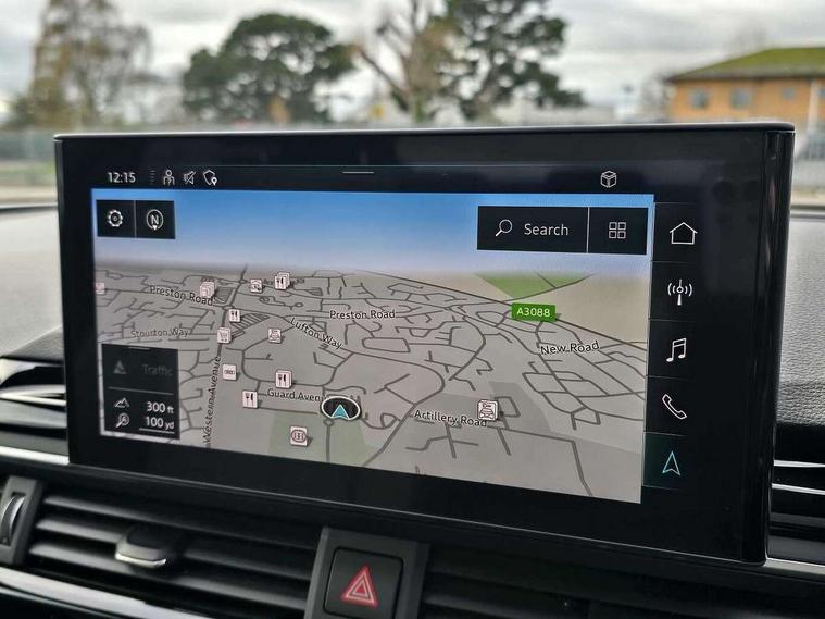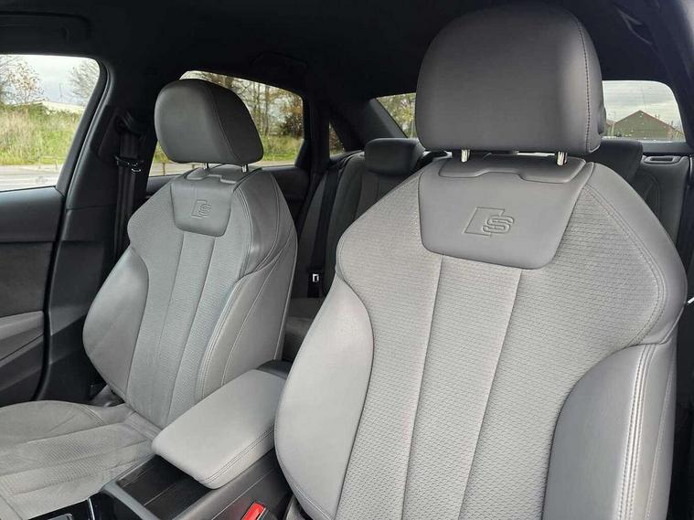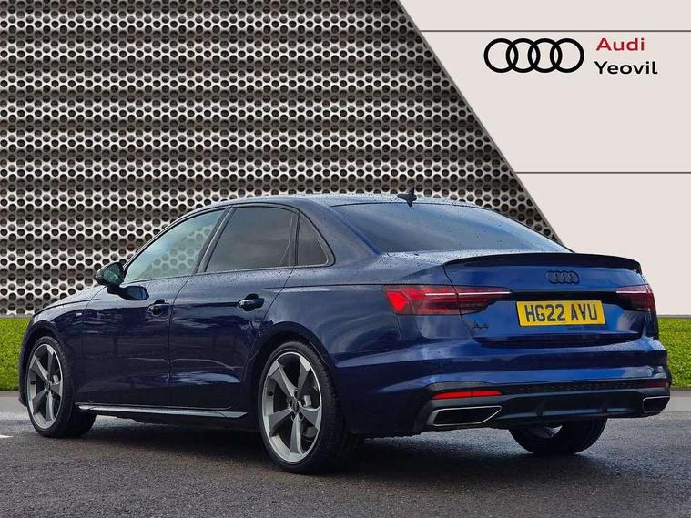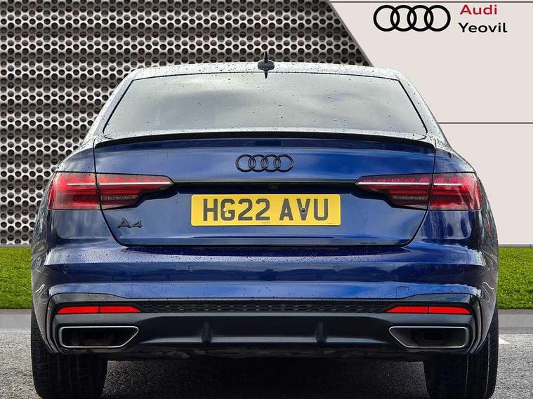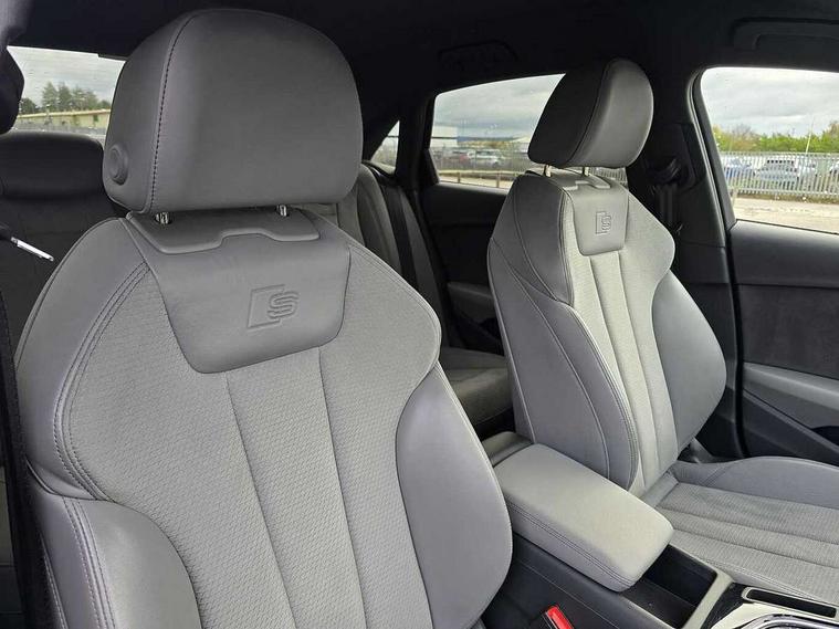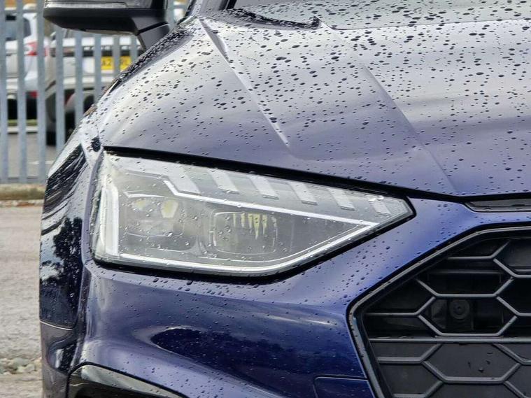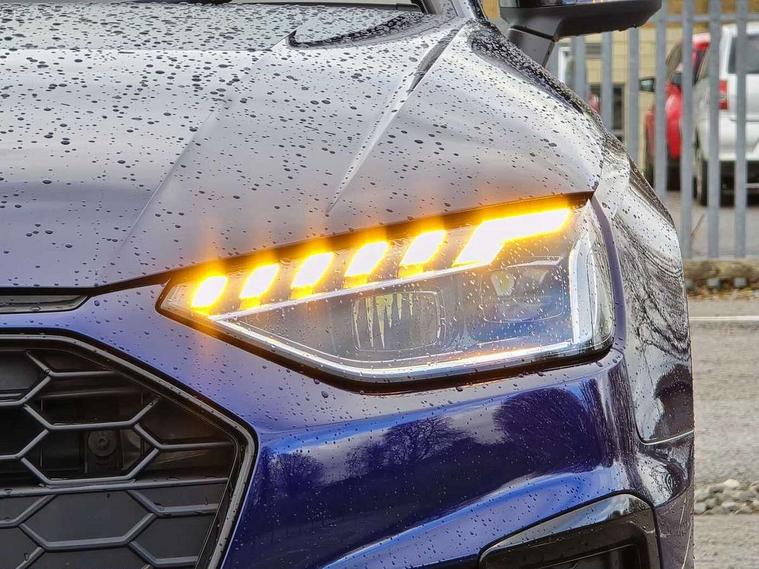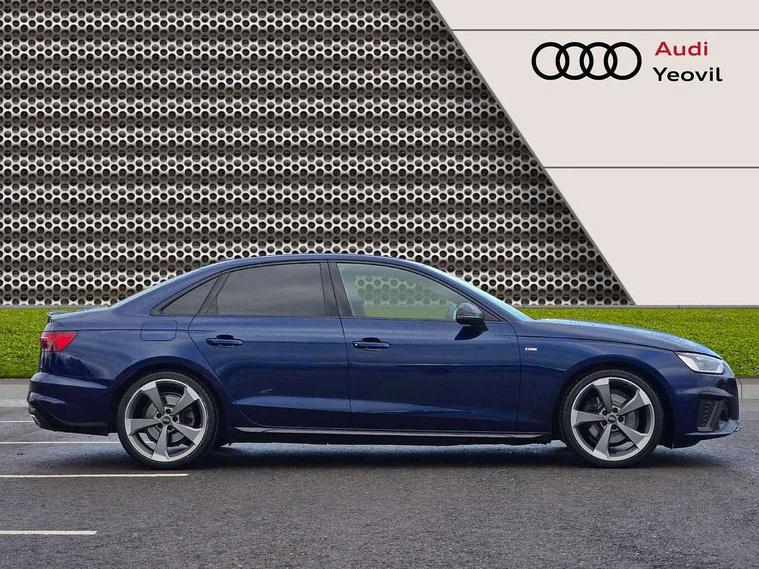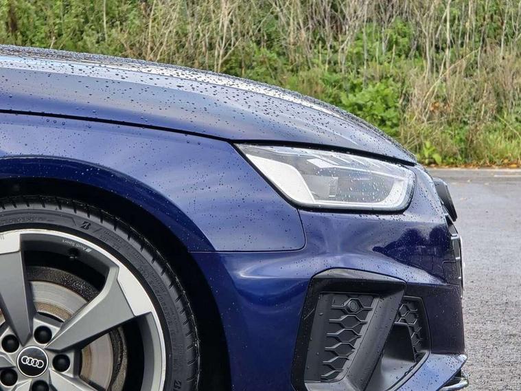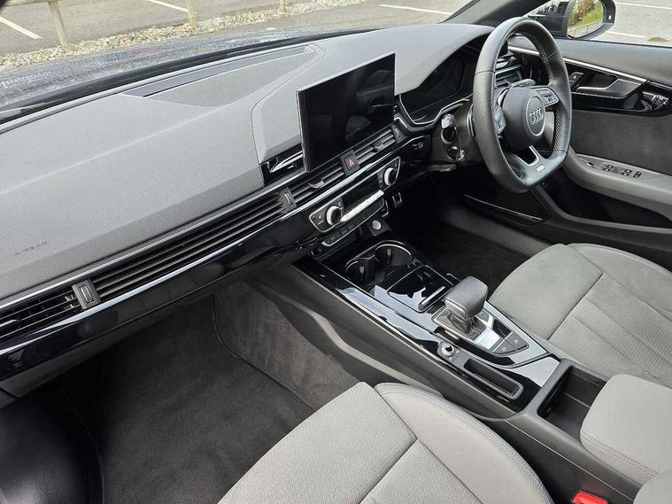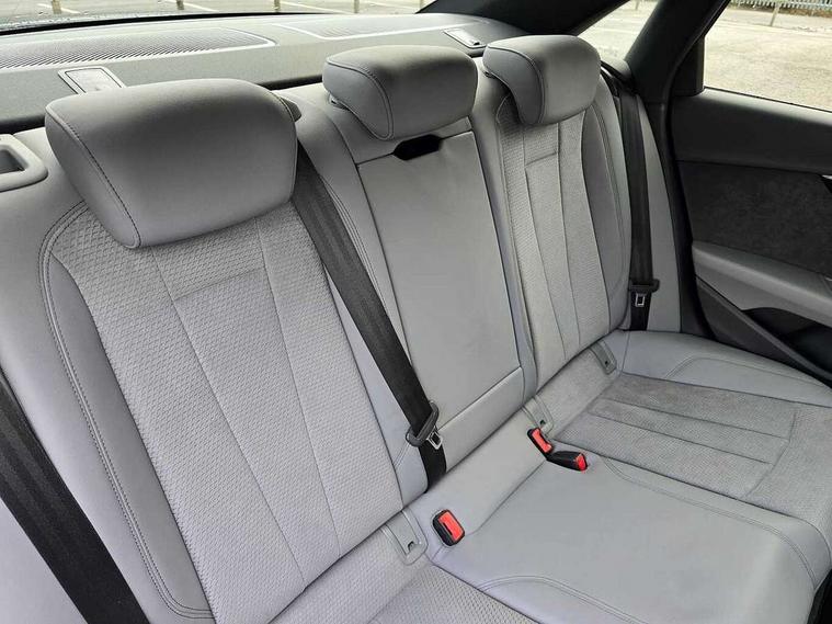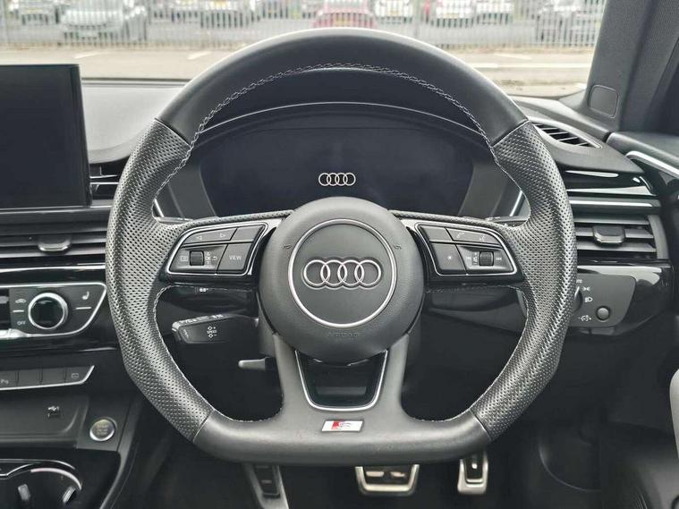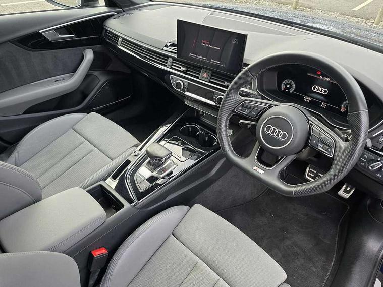 Audi connect safety and service (e-call), Audi connect with Amazon Alexa Integration, Audi drive select, Audi smartphone interface, Audi virtual cockpit, Automatic start-stop system with coasting functionality and efficiency programme, Bluetooth interface, Electric boot lid release, Electromechanical power steering, Email, calendar and text messages displayed via MMI, MMI Navigation plus with MMI touch includes 10.1" high resolution colour MMI display, 3D map, Voice control system, 54 litre fuel tank, Sports suspension lowered by 23mm, 2 USB charging ports, 8 passive loudspeakers, DAB digital radio reception, Auto dimming rear view mirror, Black Audi rings and black badging (model name in black badging, no engine badging), Body colour door handles, Body colour front spoiler lip, Body colour side sill trim, Electrically folding auto dimming/adjustable/heated door mirrors with LED side indicators and kerb view function for passenger side, Front and rear bumpers with side skirts, Front wing badges, Grained matt black side air inlets with matt aluminium silver inlay, High beam assistant, High gloss black B pillar trims and triangular rear door trim, LED headlights with LED rear lights + dynamic rear indicators + headlight adjustment and high beam, turning light + LED daytime running lights, LED third brake light, Matt aluminium silver tailpipe trim, Privacy glass, Rain and light sensors, Rear boot, Rear diffuser in matt titanium black with trim strip in matt aluminium silver, Rear side wing doors, Variable intermittent front wash/wipe, Windscreen with acoustic glazing, 4 way electric lumbar support for driver and front passenger, 40/20/40 split folding 3 rear seat bench in 3 parts with rear centre armrest, Black cloth headlining, Black perforated leather gearknob, Contrast stitching on seats, steering wheel and gear lever gaiter, Deluxe 3 zone electronic climate control, Door sill trims with aluminium inlay, Front and rear head restraints, Front centre armrest, Heated front seats, Illuminated door sill trims with S logo, ISOFIX child seat mounting and top tether, Manual seat adjustment, Single front passenger seat, Stainless steel pedals and foot rest, Tool kit, Black styling pack - A4 Saloon, LED Interior light pack - A4/S4, 3 rear seatbelts, 6 airbags - Driver, front passenger, curtain and side windows, Electronic Stabilisation Control (ESC) including ABS, ASR and EDL, Hill hold assist, Multi collision brake assist, Pop-up bonnet for pedestrian protection, Pre sense city, Rear door child safety locks, Seatbelt monitoring, Warning triangle and first aid kit, Anti theft alarm, Anti theft wheel bolts, Central locking, Keyless Go, Piano black finish inlay, Tyre repair kit,