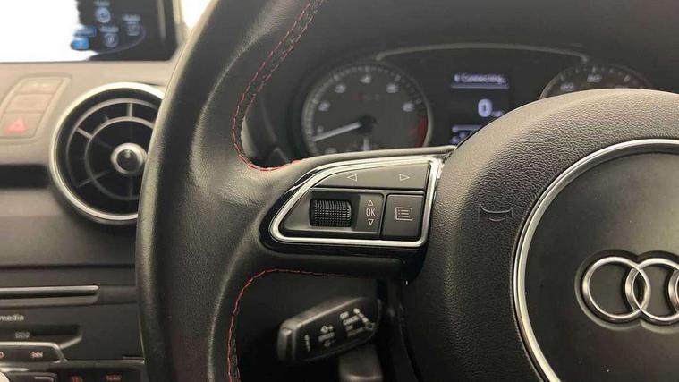 Audi drive select, Cruise control, Driver's information system, Low washer fluid indicator, Service interval indicator, Speed sensitive power steering, Variable Damper Control, Voice control system, S sports suspension, Additional SD card reader, Audi music interface, Bluetooth audio streaming, DAB Digital radio, Adaptive brake lights, Body coloured bumpers, Body coloured roof, Double blade roof spoiler, Dual branch oval twin exhaust tailpipes, Electric adjustable door mirrors, Electric front windows, Electric rear windows, Front fog lights, Heat insulating glass, Heated door mirrors, Heated rear windscreen, Privacy glass, Rain and light sensors, Rear diffuser, Rear wiper, S body styling, Sunband for windscreen, Xenon plus headlights including automatic headlights, LED daytime running lights, LED rear lights, dynamic range control and headlight washers, 12V Accessory socket in centre console, 2 rear seats, Adjustable rear head restraints, Cupholders in centre console, Door sills trims with aluminium inlays, Electronic climate control (ECC), Front floor mats, Front head restraints, Height adjustable front seats, Illuminated glovebox, Isofix attachments on outer rear seats, Jack and tool kit, Leather handbrake, Lumbar adjustment for front seats, Mono.pur centre console and door armrest, Rake/reach adjustable steering wheel, Split folding rear seats, Stainless steel pedals, High-gloss black styling pack - A1, Non smoking pack - A1, ABS/EBD, Brake assist function, Driver and passenger side airbags, Driver/Front Passenger airbags, EDL, ESP with ASR, First aid kit, Front and rear seatbelt reminder, Front passenger airbag deactivation, Head airbags, Height adjustable front seatbelts, Rear three point seatbelts x 2, Tyre pressure monitor, Warning triangle, Locking wheel bolts, Remote control central locking, Thatcham category 1 alarm + immobiliser, Aluminium trim, Tyre repair kit,