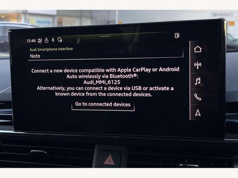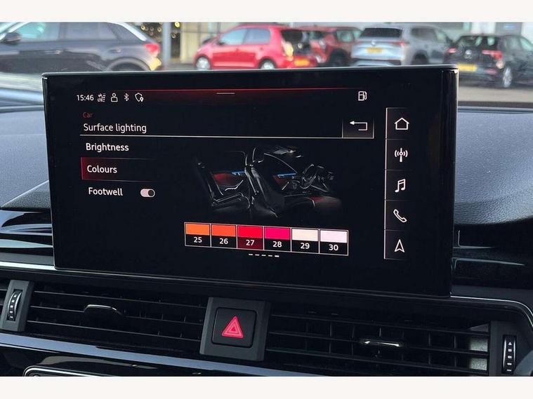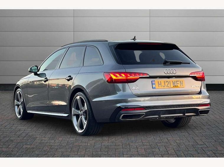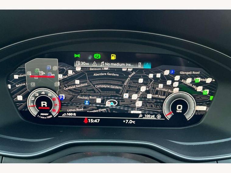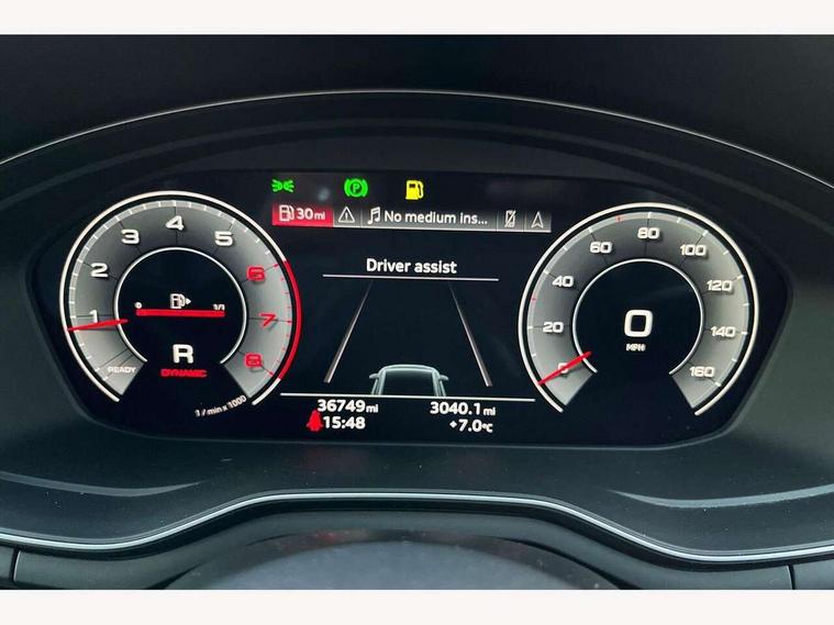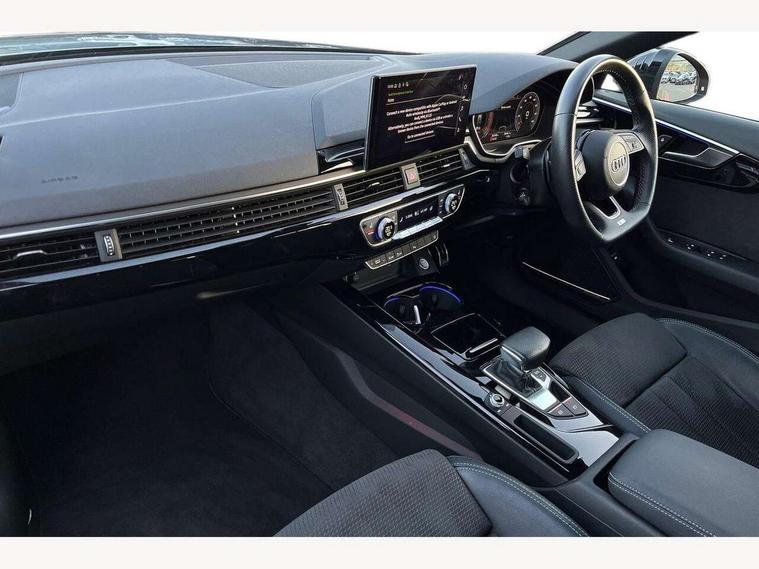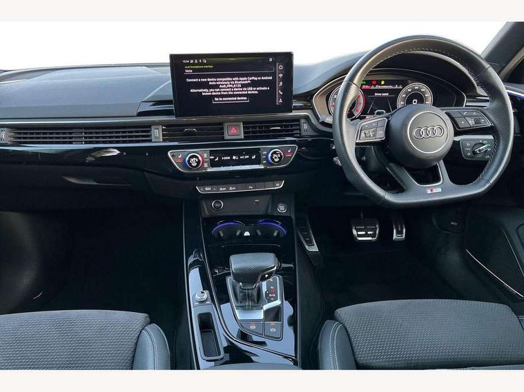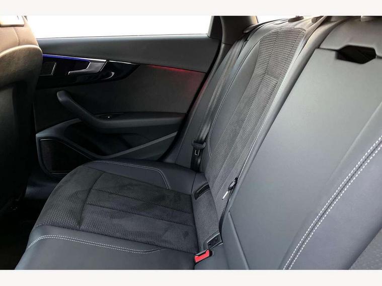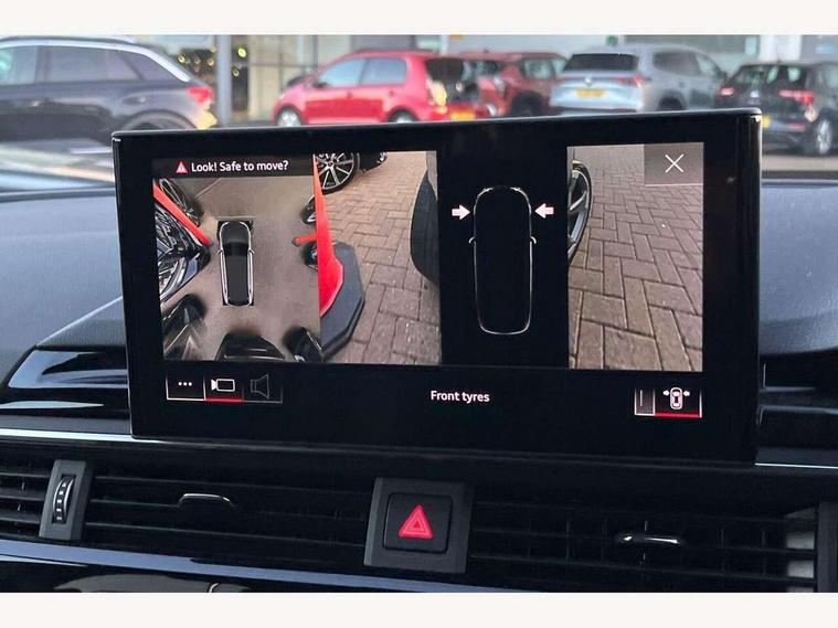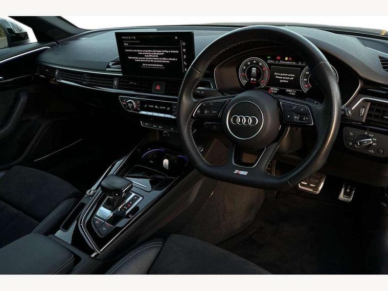 Audi connect safety and service (e-call), Audi connect with Amazon Alexa Integration, Audi drive select, Audi parking system plus with front and rear sensors, Audi smartphone interface, Audi virtual cockpit, Automatic start-stop system with coasting functionality and efficiency programme, Bluetooth interface, Electromechanical power steering, Email, calendar and text messages displayed via MMI, MMI Navigation plus with MMI touch includes 10.1" high resolution colour MMI display, 3D map, Power operated tailgate, Rear view camera, Voice control system, 54 litre fuel tank, Sports suspension lowered by 23mm, 2 USB charging ports, 8 passive loudspeakers, DAB digital radio reception, Auto dimming rear view mirror, Black Audi rings and black badging (model name in black badging, no engine badging), Black audi rings decal above rear sills, Body colour door handles, Body colour front spoiler lip, Body colour side sill trim, Electrically folding auto dimming/adjustable/heated door mirrors with LED side indicators and kerb view function for passenger side, Front and rear bumpers with side skirts, Front wing badges, Grained matt black side air inlets with matt aluminium silver inlay, High beam assistant, High gloss black B pillar trims and triangular rear door trim, LED headlights with LED rear lights + dynamic rear indicators + headlight adjustment and high beam, turning light + LED daytime running lights, Matt aluminium silver tailpipe trim, Privacy glass, Rain and light sensors, Rear diffuser in matt titanium black with trim strip in matt aluminium silver, RS4 rear spoiler in body colour, S Line roof edge spoiler, Windscreen with acoustic glazing, 4 way electric lumbar support for driver and front passenger, 40/20/40 split folding 3 rear seat bench in 3 parts with rear centre armrest, Black cloth headlining, Black perforated leather gearknob, Contrast stitching on seats, steering wheel and gear lever gaiter, Deluxe 3 zone electronic climate control, Door sill trims with aluminium inlay, Electric load area cover, Front and rear head restraints, Front centre armrest, Heated front seats, Illuminated door sill trims with S logo, ISOFIX child seat mounting and top tether, Manual seat adjustment, Stainless steel pedals and foot rest, Black styling pack - A4 Avant, LED Interior light pack - A4/S4, 3 rear seatbelts, 6 airbags - Driver, front passenger, curtain and side windows, Electronic Stabilisation Control (ESC) including ABS, ASR and EDL, Hill hold assist, Multi collision brake assist, Pop-up bonnet for pedestrian protection, Pre sense city, Seatbelt monitoring, Warning triangle and first aid kit, Anti theft alarm, Anti theft wheel bolts, Keyless Go, Piano black finish inlay, Tool kit, Tyre repair kit,
