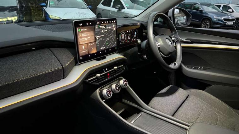 13" satellite navigation touchscreen display, Blind spot detection with door exit warning, Bluetooth system, ChatGPT functionality, Drive mode selector, Driver alert with fatigue sensor, Driver drowsiness alert system, Dry display cleaner, e call+, Front and rear parking sensors, Front cross traffic assist, Lane assist, PAS, Rear traffic assist, Rear view camera, Traffic sign recognition, USB C Port x 2 in front centre console, Virtual Cockpit - 10.25" digital display, Voice control system, Wireless charging for two smartphones (15W) with cooling function, Wireless SmartLink for Apple CarPlay and Android Auto, 32A charging cable, Stop/start function, 2x USB-C in the rear, DAB Digital radio, Aero front windscreen wipers with intermittent function, All weather light, Auto dimming rear view mirror, Black wheel arch surrounds, Body colour bumpers, Body colour door mirrors and handles, Cornering light and poor weather light, Electric folding /adjustable/separted heated/folding door mirrors, auto dimming with boarding sports and memory function, Electric front and rear windows, Exterior black decorative trims, Heat insulating glass in windshield, Heated rear window, Ice scraper in fuel tank cap, Invisible tailpipe, LED daytime running lights, LED rear fog light, LED third brake light in rear spoiler, Light assistant with automatic headlight control and coming home feature, Logo projection in door mirrors, Rear side wing doors, Rear spoiler, Rear window wiper, Safety reflectors on front and rear doors, Window control switches with black trim, Windscreen wipers with rain sensor, Without engine designation, 1.5l bottle holder points in all door, 12V socket in boot, 1x centre rear reading light, 3 configurable smart dials with 32mm coloured display, 3 seat bench in 2nd row, 4 foldable roof handles with rear coat hooks, Ambient interior lighting - Dashboard, front-door stowage compartments, front and rear door panels and footwell lighting, Automatic gear selector on steering wheel, Chrome interior door handles, Driver/front passenger reading lights, Fabric headlining, Fixed bench 40:60:40 split folding backrests, Front and rear floor mats, Front centre armrest with jumbo box storage compartment, cup holder and 12V socket, Front courtesy lights, Height adjustable front headrests, Isofix child seat fittings in outer rear seats and front passenger with top tether, iV badging on boot, Manually adjustable steering column, Pollen filter, Rear centre armrest with cupholders, Rear seat boot backrest release, Retractable luggage compartment cover, Single front passenger seat, Sliding trunk cover, Small Bags on the inner sides of the front backrests, Storage pocket including mobile phone pockets on the backs of the front seats, Sunvisors with illuminated vanity mirrors, Three rear height adjustable headrests, Ticket holder on A Pillar, Tri zone climate control, Umbrella in door panel x1 made from sustainable materials, Upper and lower glovebox with card holder and coin compartment, USB C port by rear view mirror for charging only (15W), Auto door release and activation of warning lights, Driver and front passenger airbag with knee airbag and front passenger airbag deactivation, Electric child locks, Electronic parking brake, ESC (incl. ABS+EMD+MSR+ASR+EDL+HBA+DSR+RBS+ESBS+MCB+TSA+XDS), Front assist with braking reaction to vehicles, pedestrians and cyclists, Front disc brakes, Fuel cut off safety device, Height adjustable front 3 point seatbelts + pretensioners, Hill hold control, Junction assist with automatic emergency braking, Rear disc brakes, Safety vest holder in door, Seat belt reminder for all seats, Tailgate unlocking from outside, Three point rear seat belts, Two tone horn, Tyre pressure monitor, Alarm with interior monitoring and tilt sensor with safe function, Anti-theft wheel bolts, Immobiliser, Remote central locking with 2 keys,
