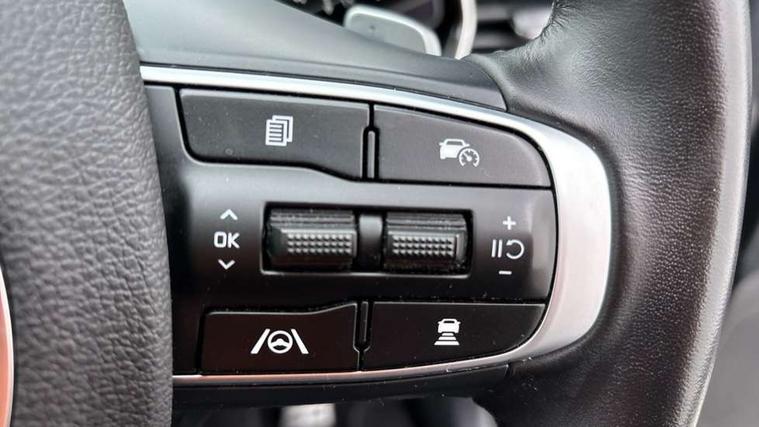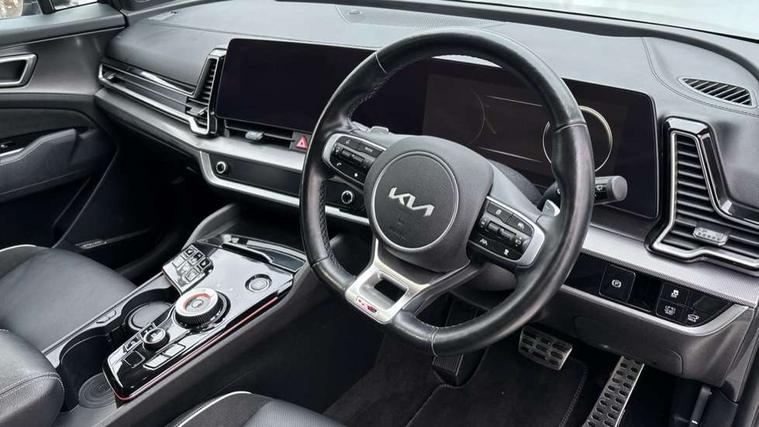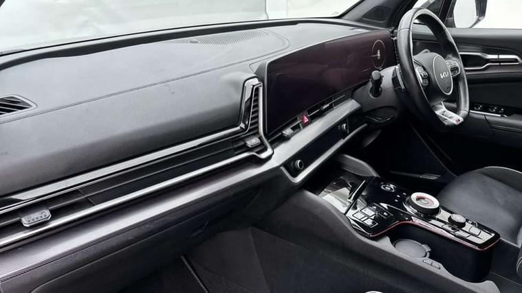 12.3" Display with navigation, 12.3" supervision colour cluster display, 360 degree around view monitor, Apple car play/Android Auto with voice control, Blind spot collision avoidance assist, Blind spot view monitor, Drive mode selector, E-call, Forward collision avoidance assist (FCA) - city/pedestrian/cyclist/junction covering, Front and rear parking sensors, Highway Driving Assist (HDA), Intelligent speed limit assist, Kia Connect (UVO), Lane Following Assist (LFA), Lane keep assist, Low washer fluid warning, Parking collision avoidance assist (PCA), Remote smart parking assist, Reversing camera system integrated into centre fascia screen, Smart cruise control with stop and go functionality, Smart power tailgate, Speed sensitive power steering, Trip computer, Windscreen washer level indicator, Wireless Smartphone charger, Intelligent Stop and Go, Bluetooth audio streaming, DAB Radio with MP3, Harman Kardon premium sound system, Rear USB port, Steering wheel mounted audio controls, USB C type charging ports on centre console, USB C type charging ports on side of front seats, USB port for connection of a media device, All round electric windows with drivers and front passenger auto up/down function, Automatic headlight control system, Automatic window defogger, Backlite glass heated with timer, Body colour and black bumper with silver accents, Body colour exterior door handles, Body colour radiator upper garnish and door garnish, Dual LED adaptive headlamps, Electric panoramic glass sunroof (Electric one touch with safety function), Electrically adjustable/heated/folding door mirrors with LED indicators, Front and rear chrome skid plates, Gloss black door mirrors, Gloss black radiator grille, Gloss black side sill and wheel arch body mouldings, Glossy black roof rack, High beam assist, Interior electrochromic mirror, LED daytime running lights, LED front fog lamps, LED High mounted stop light, LED rear combination lamp, Rain sensing wipers with aero blades, Rear fog lamp, Rear privacy glass, Rear side wing doors, Rear spoiler, Rear wiper, Satin finished beltline, Tinted rear glass, Trailer stability assist, 10 way driver/8 way passenger electrically power adjustable seats, 12V power socket in front centre fascia and luggage compartment, 3 seat bench in 2nd row, 3 x passenger assist grips, 40/20/40 split folding rear seat, All-round height adjustable headrests, Ambient lighting, Black headlining, Centre console storage box, Cupholders in rear armrest, D-Shaped sports leather steering wheel and perforated inserts with GT-Line logo, Door courtesy lamps, Drink holder at centre armrest, Driver and front passenger side sunvisors with illuminated vanity mirrors, Driver seat memory function, Drivers seat power lumbar support, Front and rear door storage, Front seat and rear pockets, Front/rear centre armrests, Gear shift indicator, Glovebox illumination, Heated front and outer rear seats, Heated steering wheel, Interior door lock/unlock function, ISOFIX Child seat top tethers and anchor fixings outer rear seats, LED interior personal lamp, LED lighting in overhead console, Luggage area LED light, Luggage area load cover, Luggage net with hooks, Metal paint interior door handles, Paddle shift controls, Rear cabin light, Rear coat hooks, Single front passenger seat, Sports pedals, Suede leather upholstery, Three zone climate control, Tilt/telescopic adjustable steering wheel, Ventilated front seats, Ventilation ducts to rear compartment, Active front headrests, All round 3-point seatbelts, Anti-lock braking system (ABS), Dual front side airbags, Dual horn, Electronic parking brake, Electronic stability control with downhill brake control, Front passenger airbag cut-off switch, Front seatbelt pretensioners + load limiters, Height adjustable front seatbelts, Hill start assist control (HAC), Impact sensing auto door unlocking, Multi collision brake assist, Rear door child safety locks, Rear seat alert system, Traction control, Twin curtain airbags, Twin front airbags, Tyre pressure monitoring system, Advanced anti-theft system including immobiliser and alarm, Door deadlocks, Engine Start/Stop Button with Smart Entry System, Locking wheel nuts, Speed sensitive auto door locking, Visible vehicle identification number, Aluminium pattern finish centre fascia and door garnish, 18" GT-Line alloy wheels, Michelin tyres, Tyre mobility kit,