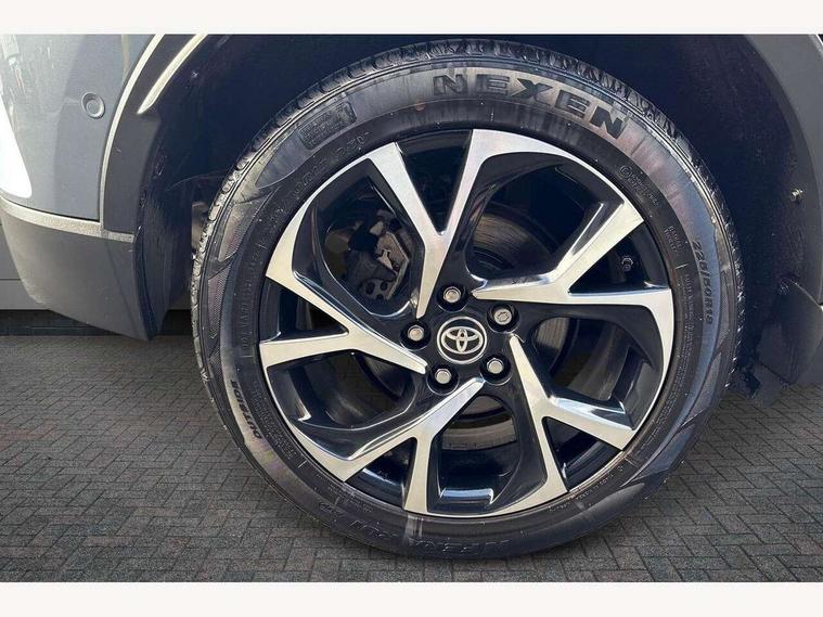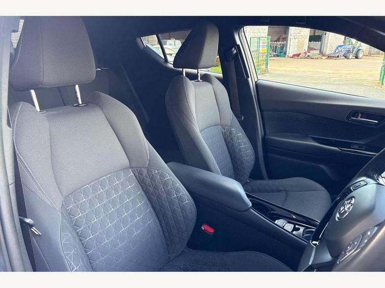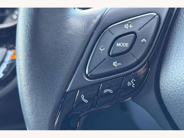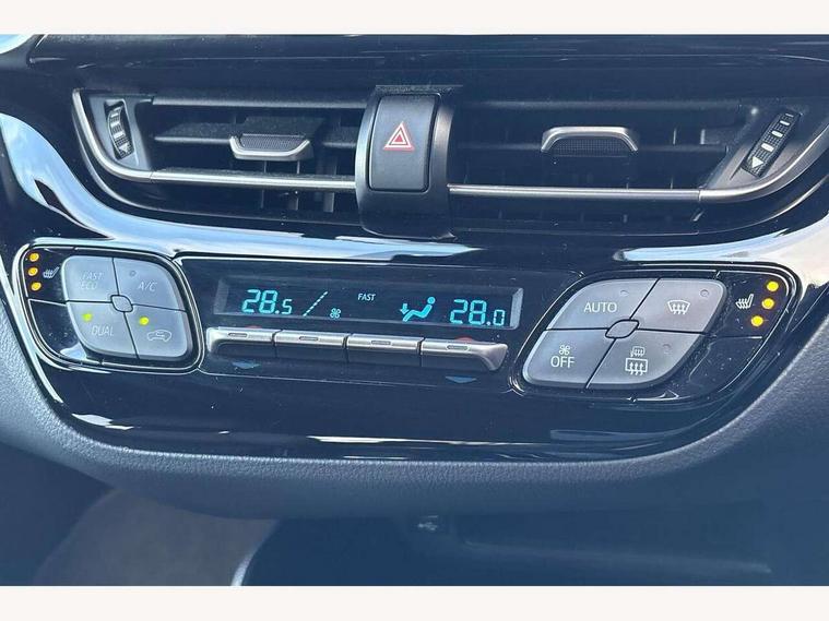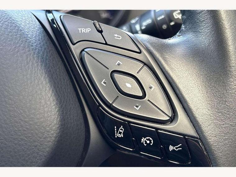 4.2" coloured TFT screen for multi-information display, Adaptive cruise control, Bluetooth connectivity, Electric power steering, Hybrid system indicator, Lane departure alert with steering control, Remote boot door release in cabin, Remote boot door release in key, Reversing camera, Road sign assist - RSA, Simple Intelligent parking assist, Touch 2 Go navigation system, Trip computer, Voice recognition, Vehicle Stability Control (VSC), 6 speakers, Aux connectors + 12V front outlet, DAB Radio (Digital Audio Broadcasting), Toyota touch 2 multimedia system with 8" display, USB connector integrated with radio and CD player, Wi-fi connectivity, Anti-jam protection on power windows, Auto high beam, Auto up and down function on all power windows, Auto wipers, Automatic headlights, Automatic headlights cut-off, Black and body coloured rear bumper, Black front bumper, Black upper front grille, Body colour door handles, Body colour door mirrors, Boot door release with push button, Electric heated door mirrors, Follow me home headlights, Front and rear power windows, Front fog lights, Front spoiler, Hard tonneau cover, Honeycomb lower front grille, LED daytime running lights, LED front light guide, LED High mounted stop light, LED rear brake lights, LED rear combination lights, Manual headlight levelling, Noise reduction layer on front windows and windscreen, Power adjustable door mirrors, Privacy glass, Rear spoiler, Rear tailgate, Rear window defogger, Rear window wiper, Reflective LED headlights, Shark fin antenna, UV-filter on driver and passenger windows, UV-filter on rear windows, 12v power outlet - front, 3 rear headrests, 3 spoke leather steering wheel, 60/40 split folding rear seat, Adjustable rear headrests, Adjustable speed limiter switch on steering wheel, Assist grips front and centre pillar, Audio and telephone switches on steering wheel, Black front door assist grips, Blue ambient lighting on front cup holders, Blue ambient lighting on front doors, Boot light, Chrome interior door handles, Cloth upholstery, Driver and front passenger personal light, Driver and front passenger Whiplash Injury Lessening seats, Driver and passenger seatback pockets, Dual zone automatic air conditioning, Front cupholders, Front head restraints, Front sports seats, Glovebox with internal light, Heated driver and front passenger seats, Hooks for luggage holding net, Humidifying Nanoe air purifier, Illuminated entry system, Isofix attachments on rear seats, Leather gearshift, Light on driver sun visor, Light on passenger sun visor, Manual telescopic steering wheel, Manual tilt steering wheel, Manually adjustable lumbar support on driver seat, Manually height adjustable driver seat, Manually height adjustable front passenger seat, Manually reclining driver seat, Manually reclining front passenger seat, Manually sliding driver seat, Manually sliding front passenger seat, Microphone on front personal light, Mirror on driver sun visor, Mirror on passenger sun visor, Multimedia switches on steering wheel, Pollen filter, Shopping bag hooks, Slow opening on lower glovebox, Voice recognition switch on steering wheel, Parking sensor pack - C-HR, 16 Disk front wheel brake, 3x3 point rear seatbelts, ABS+EBD+Brake assist, Electronic parking brake, ESP + traction control, Front and rear seatbelt reminder, Front passenger airbag on/off switch, Hill start assist control (HAC), Pre collision system with pedestrian detection, Pre-tensioners and force limiters, Rear door child safety locks, SRS Airbags - Driver + Front passenger, front side, front and rear curtain and driver's knee airbags, Toyota safety sense, Tyre pressure monitoring system, Glass-breaking alarm sensors, Immobiliser, Intrusion alarm, Intrusion sensor, Motion sensor alarm, Power door locks, Power passenger window lock, Remote central locking, Remote door lock, Black lower dashboard, Black lower driver dashboard, Black upper dashboard, Piano black console, Satin grey deco line on upper dashboard, Tyre repair kit,