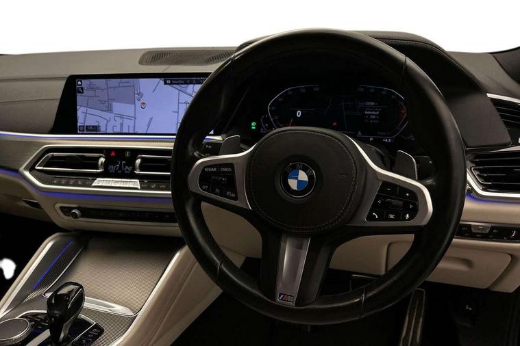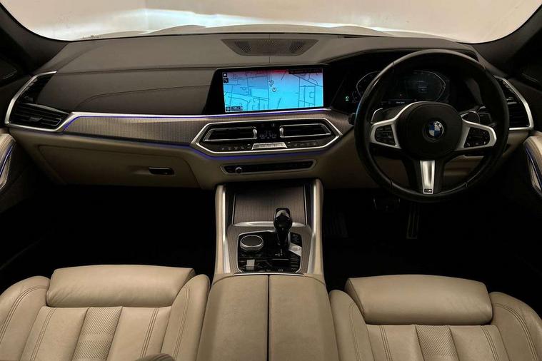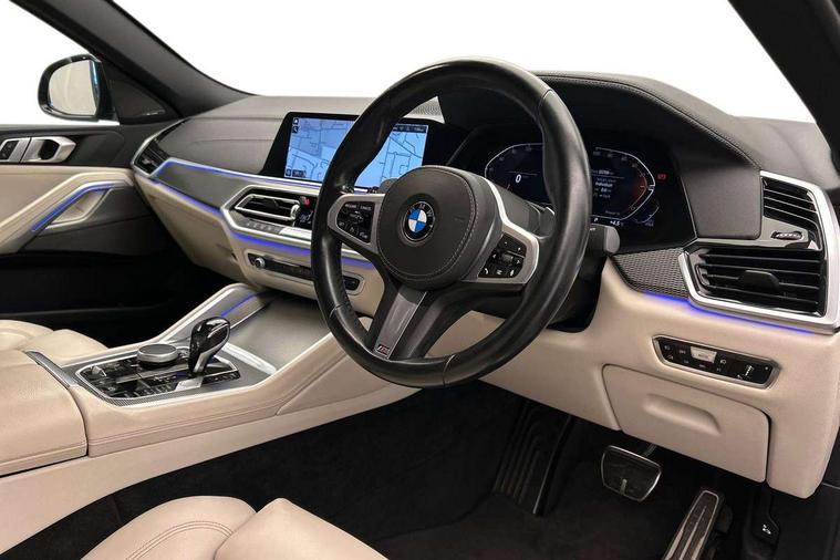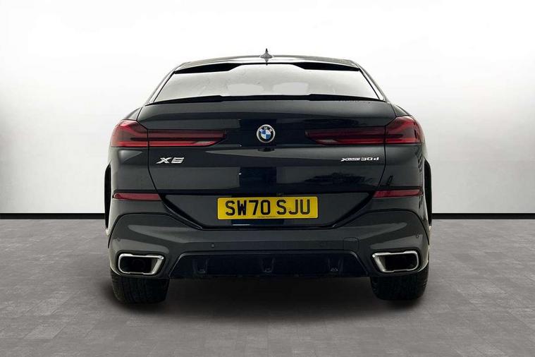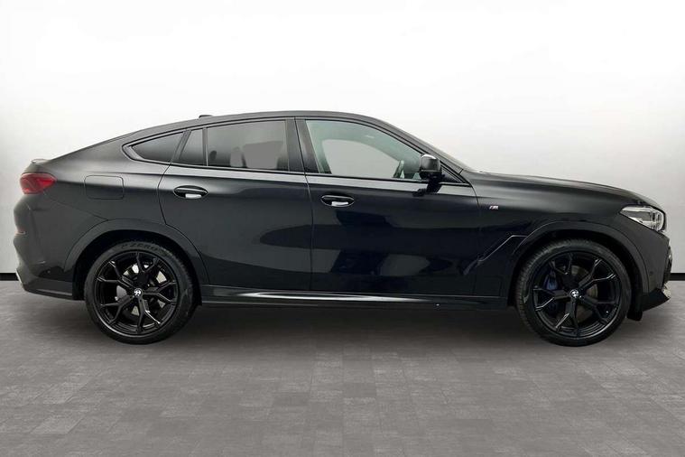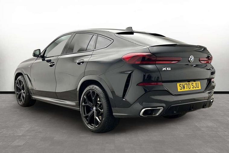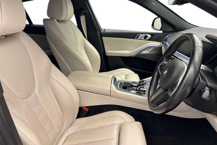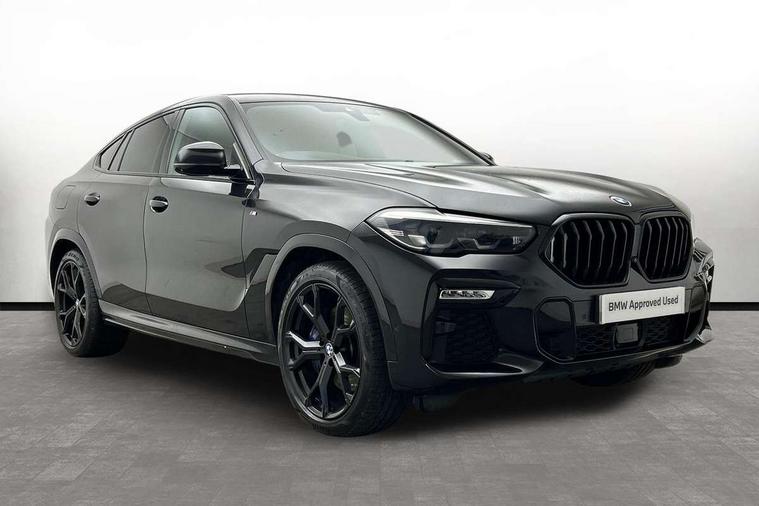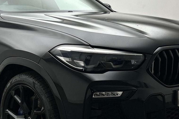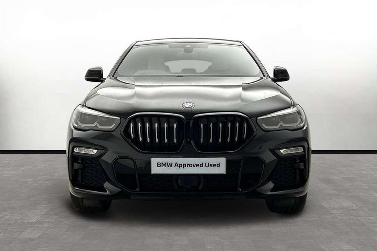 50GB hard disc drive (HDD) memory, Active guard plus, Attentiveness assist, Automatic tailgate with top hinged section open and manual bottom hinged section, BMW ConnectedDrive online services, BMW digital live cockpit professional - 12.3" digital instrument panel and 12.3" CID, with touch/voice command, BMW legal emergency call, BMW Teleservices, Brake force display, Brake pad wear indicator warning light, Enhanced bluetooth hands free facility with Telephony wireless charging, Front/rear park distance control, iDrive touch controller with shortcut buttons, Lights on warning, Oil sensor for level and grade, On board computer inc. average speed, fuel consumption, liquid crystal Info display, journey computer, outside temperature display, personal profile, Parking assistant with ultrasound based assistance system, reversing assistant, lateral parking aid and rear view camera, Service interval indicator, Speed limit info display, Speed limiting function, Wi-Fi hotspot, 48V Mild hybrid technology, Diesel particulate filter, Double wishbone front axle, Drive performance control with ECO PRO comfort + sport mode, Eight speed steptronic sport automatic transmission and gearshift paddles on the steering wheel, Safety battery terminal clamp, Variable vane geometry, DAB Tuner enables digital radio reception, Favourite buttons, Hi-Fi loudspeaker system, USB connection, USB type A 1.5A in cupholder, USB Type C 3A in centre armrest, Active Air Stream kidney grille with high-gloss chrome, Adaptive air flap control bar in high-gloss black, Automatically dimming rear view mirror, Body colour bumpers, Body colour door handles, Dynamic brake lights with LED technology, Exhaust tailpipes - single, left and right with Chrome finisher, Follow me home headlight function, Front and rear electric windows with open and close fingertip control, anti trap facility and comfort closing, Heated windscreen washer jets, High beam assistant, High gloss black outer and central air intakes on front bumper with pearlescent chrome finish, High gloss black Side elements, LED daytime running lights, LED fog lights, LED rear lights, M aerodynamic body styling, M designation on left and right front side panels, M Sport exhaust system, Rain sensor with automatic headlight activation and windscreen wiper control, Satin aluminium side window graphic, Third brake light in rear spoiler, Welcome light carpet, X6 on left tailgate, xDrive designation on right tailgate, 12V - Power sockets with 2x centre console and 1x luggage compartment, 40:20:40 split folding rear seats, Ambient interior lighting with 6 pre-designed selectable lights including dynamic function, Centre and rear interior light, Child seat ISOFIX attachment with rear outer seats includes top tether, Compartment in front of cupholder, Electrical steering column with adjustable height and length with activation and control on the steering column, Foldable rear centre armrest with 2 cupholders and storage compartment, Front and rear cupholders x 2, Front and rear door pockets, Front and rear door sill inlays with illuminated BMW M designation, Front and rear side armrest integrated into door trim, Front footwell lights, Front reading lights, Light inside glove compartment, Lockable glove compartment, Luggage compartment floor panel with integral storage tray, Luggage compartment lighting, M leather steering wheel, M specific key, M specific velour floor mats, Make-up mirror lights, Multifunction controls for leather steering wheel, Multifunctional hooks, Rear head restraints, Seat back with flap pocket, Storage tray and compartment with cover in centre console, Sunvisors with illuminated vanity mirrors, Toolkit located in luggage compartment, Connected Package Professional - X6, Expanded exterior mirror pack - X6/X6 M, Non-smokers pack - X6, 3 rear seatbelts, Airbags - driver/front passenger, rear and side, first and second row seats head airbags, front passenger seat airbag deactivation + knee airbag, Anti-lock braking system (ABS), Automatic Stability Control (ASC), Brake drying, Brake energy regeneration, Brake fade compensation, Braking pre-tensioning, Cornering brake control (CBC), Crash sensor activating central locking release, hazard warning lights, fuel cut off, interior lighting + activation of safety battery terminal clamp, Deformation zones - front and rear with door reinforcements and bumpers up to 2.5 mph, DSC - Dynamic Stability Control, Dynamic brake control, Dynamic Traction Control - DTC, Electromechanical parking brake with automatic drive away release and auto hold function, Electronic brake force distribution, Front and rear seatbelts with seatbelt stopper, seatbelt tensioner for front and outer rear seats and belt force limiter, Front head restraints with anti-whiplash, Hill start assistant, Integrated brake system, M Sport braking system in blue high gloss + blue painted brake calipers with M designation, Mechanical child proof lock on rear doors, Passive protection for pedestrians, Seat occupancy detection for driver and passenger side, Side impact protection, Two tone horn, Tyre pressure monitoring system, Ventilated front and rear disc brakes, Warning triangle and first aid kit, Closing system with central locking, Driver and front passenger door centre lock switch, Locking wheel bolts, Thatcham 1 alarm system with remote control and engine immobiliser, Start/stop toggle diamond shaped trim finisher in pearl chrome,