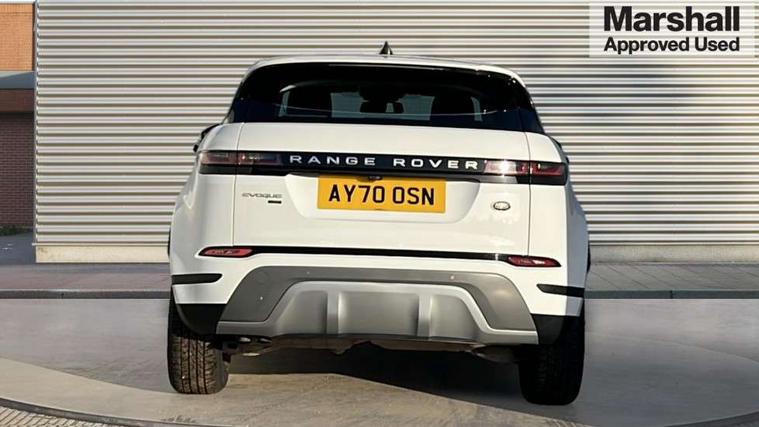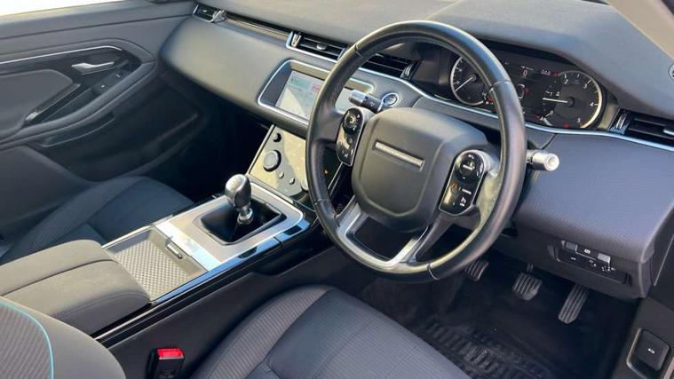 10" touch screen pro, Android Auto, Apple car play, Bluetooth connectivity, Brake pad wear indicator warning light, Cruise control + speed limiter, Driver condition monitor, Electronic power assisted steering (EPAS), InControl remote, Land Rover InControl apps, Lane keep assist, Push button starter, Voice control system, Passive suspension, Digital Audio Broadcast radio-DAB, Steering wheel mounted controls, Electric windows with one touch open/close and anti trap, Evoque badge, Flush deployable exterior door handles, Heated rear window with timer, Heated washer jets, Heated windscreen, Rain sensing windscreen wipers, Rear fog lights, Rear wing door, Tailgate spoiler, Third brake light, 40:20:40 split folding rear seats, Isofix system on outer rear seats, Overhead lighting console, Overhead stowage for sunglasses, Passive front head restraints, Rear air vents, Rear centre headrest, Sunvisors with illuminated vanity mirrors, Twin front cupholders with cover, Twin sliding front centre armrest, 3 rear 3 point seatbelts, Anti-lock braking system (ABS), Customer configurable autolock, DSC - Dynamic Stability Control, Electronic brake force distribution, Electronic parking brake, Electronic traction control, Emergency braking, Front and rear seatbelt reminder, Hill launch assist, Power operated child locks, Roll stability control, Six airbags - Driver and passenger airbags/driver knee airbag/front side airbag and curtain airbags, Tyre pressure monitoring system, Alarm, Immobiliser, Intrusion sensor, Locking wheel nuts,
