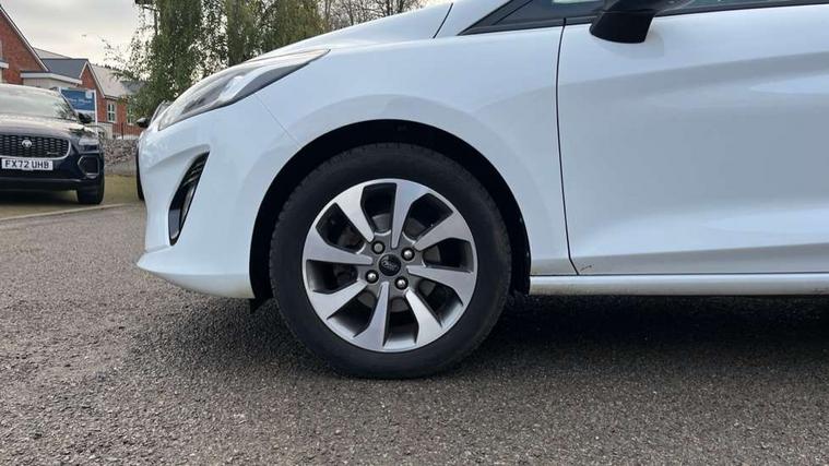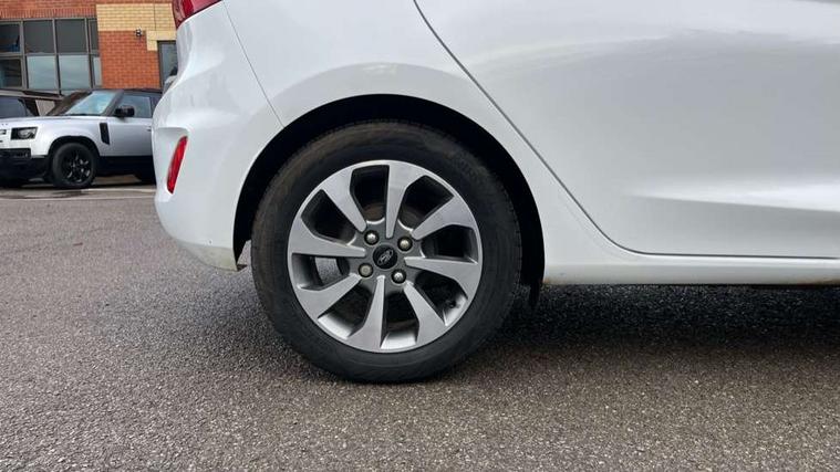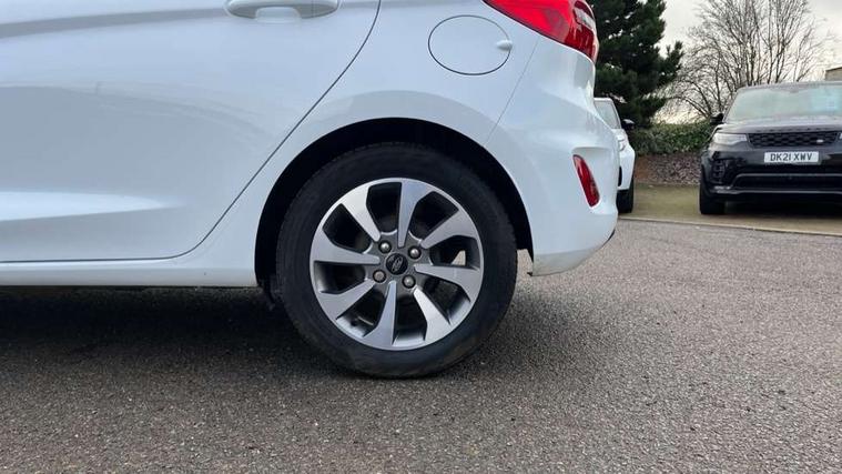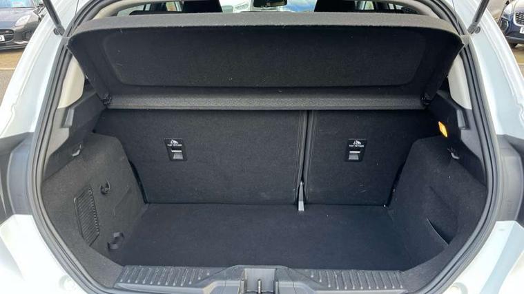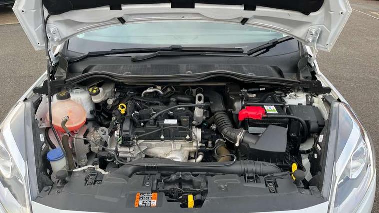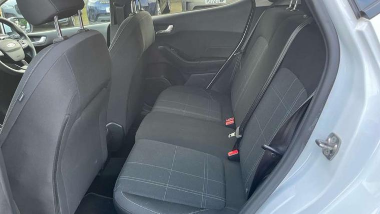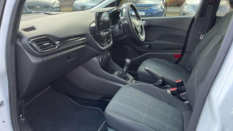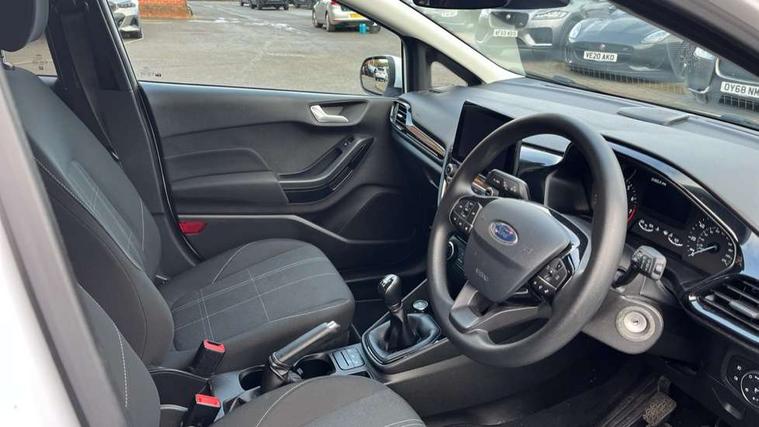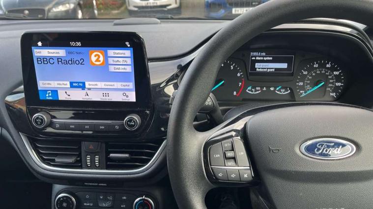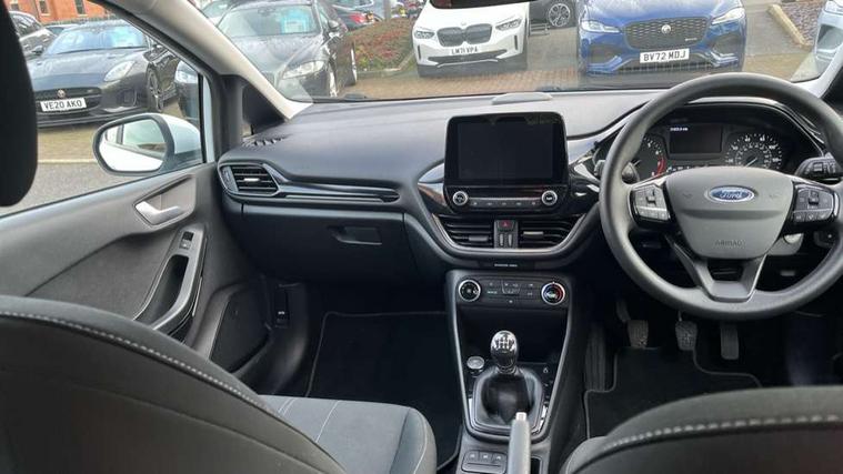 Bluetooth system, Electric power steering, Ford easy fuel, Trip computer, 2 USB ports, Auxiliary input socket, DAB Digital radio, Ford SYNC includes 8" touchscreen, 6 speakers, apple carplay, android auto and emergency assistance, Steering wheel mounted controls, Body colour bumpers, Body colour door handles, Body colour rear spoiler, Chrome beltline trim, Cornering front fog lights, Electric front windows/one touch facility, Electric rear windows, Halogen projector style headlights with static cornering lights + LED daytime running lights, Mesh design front grille with chrome surround, Privacy glass, Quickclear heated windscreen, Rear privacy glass, Rear wiper, Tinted glass, 12V Accessory socket in centre console, 60/40 split folding rear seat, Adjustable head restraints, Ambient lighting, Boot carpet, Chrome inner door handles, Cloth upholstery, Footwell illumination, Front map reading lights, Front seat and rear pockets, Height adjustable driver's seat, Illuminated glovebox, Leather gear knob, Leather trimmed handbrake handle, Load area light, Luxury woven headliner, Manual air conditioning, Overhead console with sunglasses holder, Pollen filter, Rake/reach adjustable steering wheel, NCAP Pack - Fiesta, 3 point seatbelts on all rear seats, ABS+EBA, Curtain airbags, Driver and passenger airbags, Drivers knee airbag, Electronic stability control with hill start assist, Front passenger airbag deactivation, Front side airbags, Tyre pressure monitoring system, MyKey system, Remote central locking & engine immobiliser, Thatcham Cat.1 alarm, 16" 8 spoke alloy wheels with rock metallic machined finish,