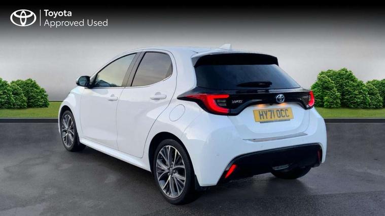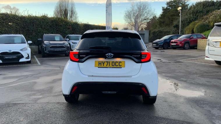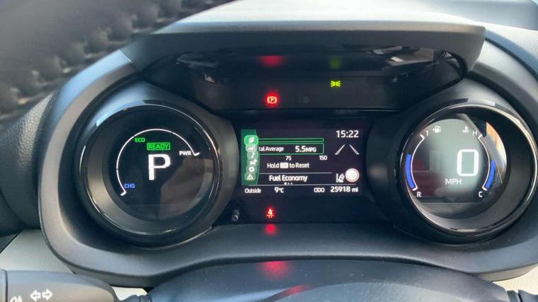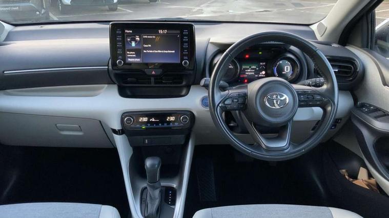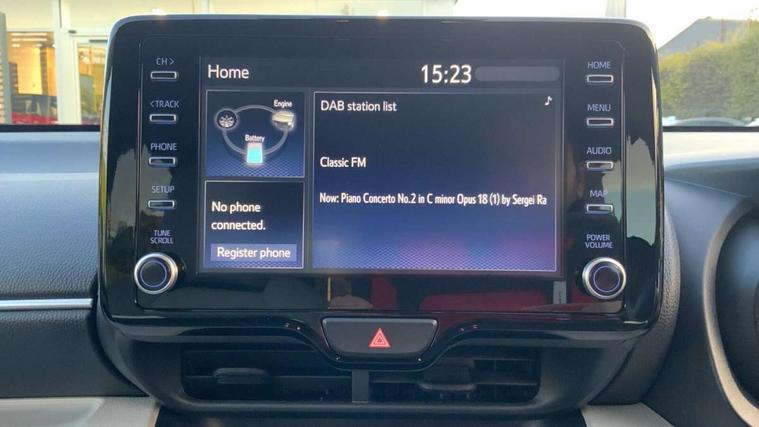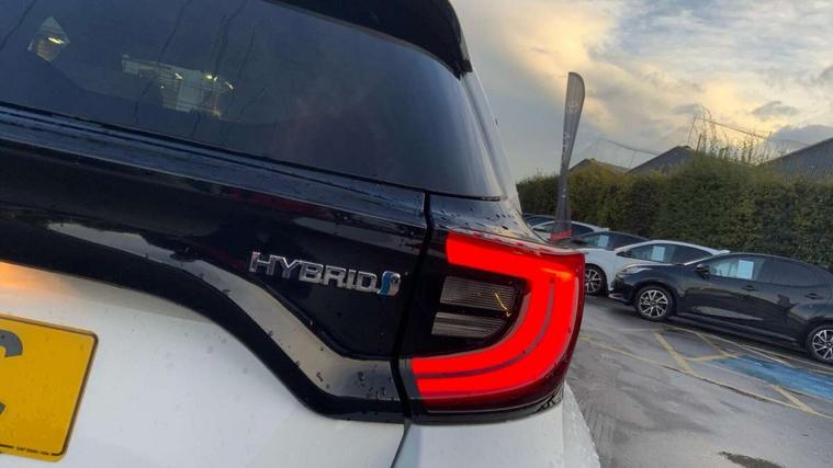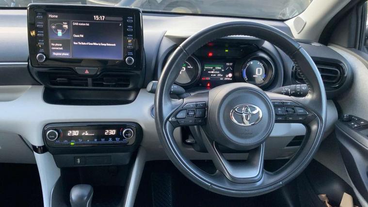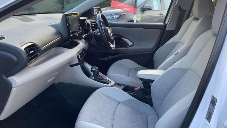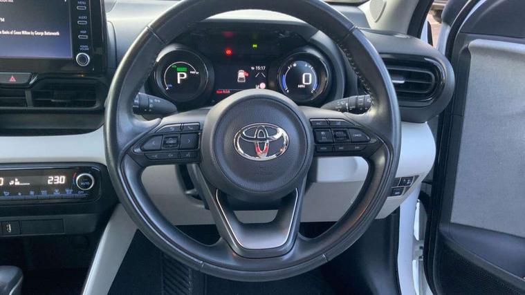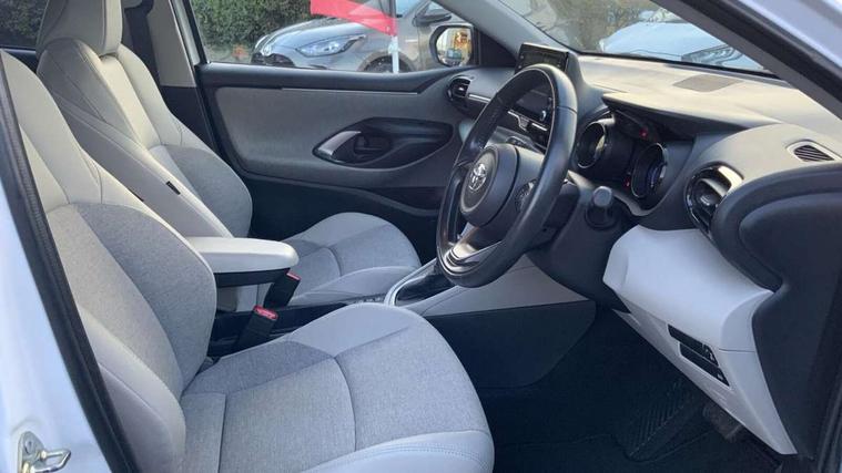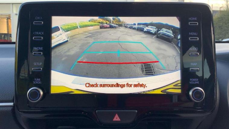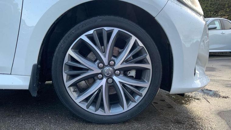 Adaptive cruise control, Adjustable speed limit with speed warning, Blind spot monitoring, Bluetooth connectivity, Colour binocular inspired displays with digital speedometer, E-call, Electric power steering, Front and rear parking sensors and intelligent clearance sonar with automatic braking, Hybrid energy display, Multi information display switches on steering wheel, Reversing camera, Smartphone integration with Apple CarPlay and Android auto, Vehicle Stability Control (VSC), 6 speakers, 8" Multimedia display touch screen, USB connection, Acoustic windscreen glass, Automatic headlights, Automatic windscreen wipers with rain sensor, Automatically retractable door mirrors, Body coloured door mirrors, Electric adjustable heated door mirrors, Follow me home headlights, Front auto power windows with anti jam protection, Full LED rear lights, LED daytime running lights, LED front fog lights, LED Headlights, LED High mounted stop lamp, Painted front grille, Rear auto power windows with anti jam protection, Rear privacy glass, Rear side wing doors, Rear spoiler, Rear wiper, Satin lower front grille, Shark fin antenna, Turning signal integrated indicators in door mirrors, 3 adjustable rear headrests, 3 spoke leather steering wheel, 60/40 split folding rear seat, Active headrests, Adjustable boot height, Coat hooks in rear grab handles, Cup holders (2 front & door), Data Communication Module (DCM) connected services, Dual zone automatic air conditioning, Fabric seat with partial synthetic leather upholstery, Front armrest, Front sport seats, Glovebox, Height adjustable driver's seat, Height adjustable passenger seat, Isofix seat fixing, Leather gearshift, Map pockets on the backs of the front seats, Pollen filter, Shopping bag hooks, Single front passenger seat, Tilt/telescopic steering column, 3 point seatbelts on all rear seats, ABS+EBD+Brake assist, Electronic parking brake, Emergency brake light system (EBS), Front passenger airbag on/off switch, Front seatbelt reminder, Hill start assist control (HAC), Rear child proof door locks, Rear seat belt reminder, Supplemental Restraint System (SRS) 8 airbags: Driver & passenger's airbags, dual side curtain airbags, side impact airbags, front centre airbag, Toyota Safety Sense 2, Precollison + Night time Pedestrian & Cyclist Detection, Lane Trace Assist, Auto High Beam, Intelligent ACC & Road Sign Assist, Tyre pressure warning system, Alarm/immobiliser, Keyless smart entry with push button start, Remote powered central double locking doors, Satin chrome interior styling, Soft touch instrument panel, Space saver spare wheel,