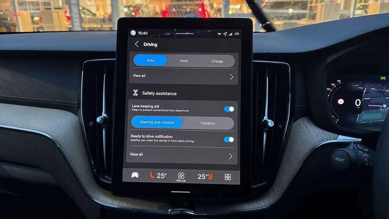 11.2" centre console touch screen, 12.3" Progressive Driver Display, 360 degree surround view parking camera with side proximity sensors, Adaptive cruise control, Adjustable steering wheel force, Android auto (Wired), Apple carplay (wired), Bluetooth handsfree system, Drive mode settings, Driver alert control with lane keeping aid, Emergency services call system, Front and rear park assist, Google Automotive Services, Intelligent speed assistance, Oncoming Lane Mitigation, PAS, Power operated tailgate with handsfree opening and closing, Service interval indicator, Speed limiter, Speed sensitive steering, Trip computer, Volvo cars services with app, Volvo on call with App, Wireless/Inductive Mobile Phone Charging, 2 phase on board charger 6.4kW (home charging limited to 3.7kW), 6m 3 phase 16amp Type 2 / mode 3 charge cable, 8 speed automatic transmission with start/stop + manual change functions, Active four-C chassis + four corner adaptive damper with electronic rear air suspension, Electric rear axle drive, Recharging port located in nearside front wing, DAB Digital radio, Low speed exterior sound speaker, Premium Sound by Bowers and Wilkins, dirac live, dolby pro logic II surround sound, 14 speakers/1100W output and subwoofer, Steering wheel remote infotainment controls, Active bending headlights with adaptive shadow technology, Adaptive brake lights with high level LED brake lights, Auto dimming interior + exterior mirrors, Automatic headlight levelling system, Automatic LED Headlights + Active high beam incorporating daytime running lights, Dark tinted windows for rear side windows and cargo area, Electric adjustable/heated/auto power folding door mirrors, Electric front+rear windows, Front aluminium tread plates, Headlight cleaning system, High gloss black door mirrors, High gloss black front and rear bumper decoratives, High gloss black mesh front grille with high gloss black surround, Home safe and approach lighting, Integrated roof rails in high gloss black, Power glass tilt and slide panoramic sunroof with sun curtain, Puddle lights, Rain sensor with automatic windscreen wiper activation, Rear side wing doors, Rear wiper, Roof antenna, Roof spoiler, Tinted windscreen, Visible VIN plate, 12V socket in front tunnel console and luggage compartment, 2 zone electronic climate control with Clean zone air quality system and pollen filter, 3 seat bench in 2nd row, A-pillar parking ticket holder, Air purifier particulate matter (PM) 2.5 filter, B Pillar ventilation, Bright metal luggage scuff plate, Centre console cupholders and storage, Charcoal floor mats, Front and rear courtesy lights, Front and rear door pocket illumination, Front cupholder illumination, Front footwell illumination, Front reading lights, Front seat cushion extensions, Glovebox compartment with illumination, Head restraints for all seats, Heated front seats, Heated steering wheel, Height/reach adjustable steering column, Illuminated luggage compartment, Illuminated vanity mirrors + ticket holder, Inner door release handle illumination, ISOFIX attachment on outer rear seats, Load cover, Load protection net, Multi directional lumbar support, Power driver seat with memory + exterior mirrors memory, Power folding rear headrests, Power passenger seat with memory, Rear armrest with cupholder, Rear footwell and front and rear side step illumination, Rear reading lights, Rear seat concealed storage, Single front passenger seat, Tailgate illumination and ambient door lighting, Underfloor stowage compartment, Versatile split folding rear seat - 60/40, Driver assist pack without Adaptive cruise control - XC60, 5 three point seatbelts, City safety with steering support with Pedestrian + cyclist + front collision warning with full auto brake and rear auto brake, Drivers knee airbag, Dual stage driver/passenger airbags, Electronic parking brake with auto hold, First aid kit, Front seats SIPS airbags, Hill descent control - Off-road drive mode, Hill start assist, IC (Inflatable Curtains) - Full Length, Passenger airbag cut-off device, Power child locks on rear doors, Run off Road Mitigation, Run off Road Protection, Seatbelt reminder and pretensioners, SIPS (Side Impact Protection System), Slippery road and hazard light alert, Stability and Traction Control with Spin control, Engine Drag Control and Corner Traction Control, Tyre pressure monitoring system, Vehicle deceleration control with Anti-lock Brake System, Electronic Brake Distribution and Emergency Brake Assist, Warning triangle, WHIPS whiplash protection system - front, Anti-theft alarm including immobiliser/volume sensor + level sensor, Key integrated remote control central locking + fuel flap with deadlocking system and auto open/close power windows, Keyless Drive (includes Keyless Entry and Keyless Start), Locking wheel nuts, Private locking for tailgate, Tailored instrument panel with contrast stitching, Summer tyres, Tyre sealant kit + 12v compressor,