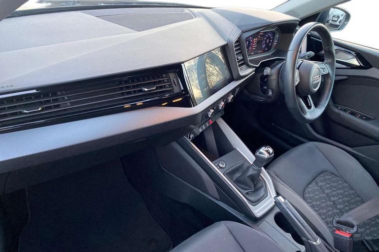 Aluminium trim for control switches, air vents and digital instrument cluster, Silver grey accent areas including air vents, door handle recesses and centre console in diamond paint finish, Slate grey inlays polygon structure in fine paint finish, Anti theft alarm, Anti theft wheel bolts and loose wheel warning, Audi pre-sense front with pedestrain and cyclist recognition, Immobiliser, Remote central locking with 2 remote folding keys, 1 x SDXC card reader, 1 x USB type C and 1 USB type A charging points, Audi music interface, Bluetooth audio streaming, DAB Digital radio, MMI radio plus with 8.8" colour MMI display screen and MMI touch, 3x3 point rear seatbelts, Brake assist function, Driver and front passenger airbag with front side and head airbags, Electronic Stability Control including ABS, EBD, ASR and EDL, Front and rear seatbelt reminder, Front passenger airbag deactivation switch, Hill hold assist, Seatbelt height adjustment for front seats, Seatbelt monitoring, Tyre pressure warning light, Warning triangle and first aid kit, Auto dimming rear view mirror, Body coloured bumpers, Body coloured door mirrors, Electric front and rear windows, Front side air inlets in grained matt black and C frame in titanium black, Heat insulating glass windscreen and side windows, Heated rear windscreen, LED headlights with LED rear lights + dynamic rear indicators, Radiator grille in matt titanium black, Radiator protective grille frame in matt aluminium silver, Rain and light sensors, Rear fog lights, Rear wiper, Scandium grey tailpipe trim, Side front spoiler lips in grained matt black, Titanium black matt diffuser, 12V socket in centre console with two cup holders, 3 rear seats, Door sills trims with aluminium inlays, Driver and passenger seat with manual height adjust with forward and backwards adjustment, Front head restraints, Front/rear floor mats, Height and reach adjustable steering wheel, Illuminated glovebox, ISOFIX child seat mounting in front passenger and rear outer seats, Leather gear knob with aluminium trim, Leatherette handbrake grip, Luggage compartment light with front and rear reading lights, Lumbar adjustment for front seats, Novum cloth upholstery with front sport seats, Rear head restraints, Split folding rear seats, Titanium grey cloth headlining, 10.25" Digital instrument cluster display screen, Audi connect safety emergency and service including E-call, Audi drive select, Audi smartphone interface, Automatic start/stop system, Bluetooth interface, Driver's information system, Electromechanical power steering, Lane departure warning system, Service interval indicator, Speed limiter, Voice control system, Washer fluid level indicator, Dynamic suspension,