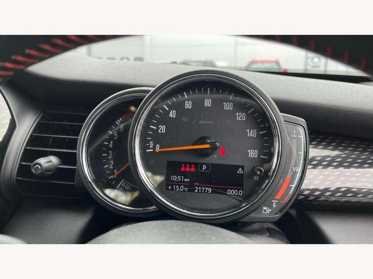 Automatic start/stop function with brake energy recuperation, Compatible mobile phone bluetooth with audio streaming, Electro-mechanical speed dependant steering assistance, Instrument cluster, Mini E-call, MINI TeleServices, On board computer, Service interval indicator, Double Vanos system, Fully variable valve control, High precision injection, Performance Control, Steptronic sport transmission with double clutch and steering wheel paddles, 6.5" touchscreen with LED ring, FM tuner and DAB digital radio, Automatic headlight activation switch, Bonnet scoop, Chrome border honeycomb structure radiator grille with S badge, Chrome plated fuel cap, Dynamic brake lights, Electric front+rear windows, Heated rear window, Heated windscreen washer jets, John Cooper Works - aerodynamic kit (front and rear apron, spoiler), front and rear sport bumpers and part-painted side sills with door sill finishers, John Cooper Works rear spoiler, LED headlight with closed ring and daytime driving lights, Metal door sill strips with Cooper S imprint, Model logo Cooper S on right of tailgate, Rain sensor window wipers, Rear fog lights, Rear LED lights with union jack design, Rear window wiper, Side scuttle panel with integrated indicator, Sun/heat protection glass, Two central exhaust tailpipes with chrome finisher, White indicator lenses, 12V Accessory socket in centre console, 4 lashing eyes in luggage compartment, 60/40 split folding rear seat, Anthracite headlining, Chrome interior highlights, Cupholders, Front and rear head restraints, Front and rear isofix with front passenger airbag deactivation, Glove compartment, Height and length steering column adjustment, Interior lighting with 12 basic colours selectable via toggle switch in roof, John Cooper Works leather steering wheel with contrasting stitching in Chilli Red with John Cooper Works logo, John Cooper Works Logo in seat, Leather gearshift lever and handbrake gaiters, LED reading lights, vanity mirror lights, front foot well light and spotlight on front seats, Manual air conditioning, Mechanical seat adjustment, driver seat height adjust, forward/back and front seats backrest, Mini logo projection on floor from drivers exterior mirror, Multifunction steering wheel, Storage compartments in doors, Storage pocket on back of front seats, Sunvisors with vanity mirrors, 3 point seatbelts on all five seats, 6 Airbags - front, side, head and seat belt tensioners, Anti-lock braking system (ABS), DSC - Dynamic Stability Control, Front and rear disc brakes, Hill start assist, Two tone horn, Tyre pressure monitoring system, Alarm system with tilt sensor, monitoring doors, bonnet interior and tailgate, Electronic vehicle immobiliser, Start/stop toggle with keyless go, Tool kit,