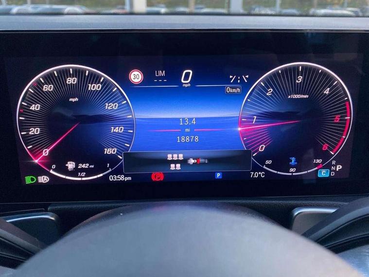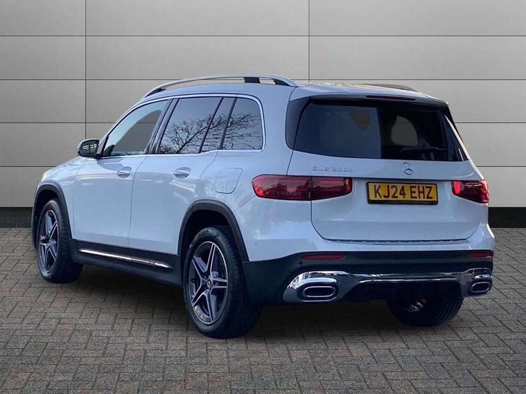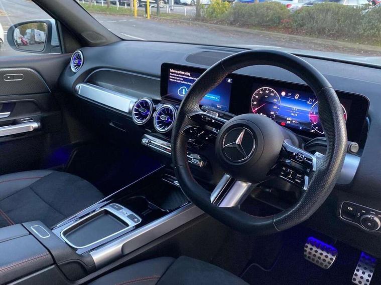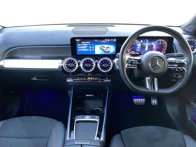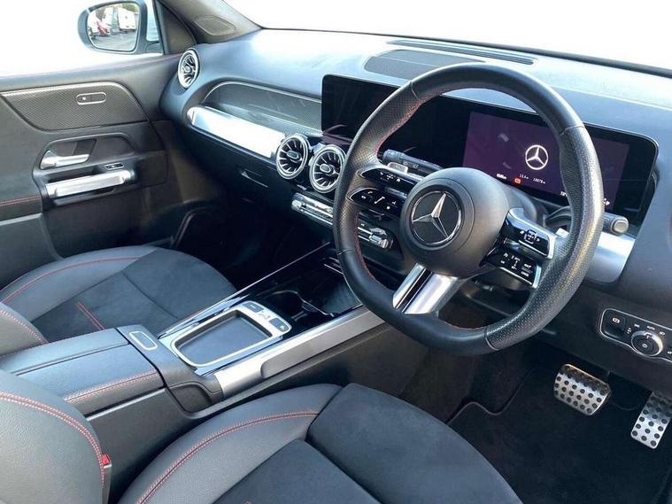 10.25 inch touchscreen central media display, 10.25" Digital instrument cluster display screen, 12 ultrasonic sensors in front and rear bumpers, 180 degree reversing camera with parking guidelines, Assisted parking: reversing backwards into perpendicular and parallel parking spaces, Attention assist - Monitors steering behaviour and long journey fatigue, Bluetooth connection, Brake pad wear indicator warning light, Car wash mode, Convenience opening and closing, Direct steering, DYNAMIC SELECT with a choice of driving modes (ECO, Comfort, Sport and Individual), ECO start/stop function, Engine start/stop button, Fluid level warning indicator for fuel, oil, coolant and washer fluid, Hard disk navigation, Hey Mercedes Voice activation, Lamp failure indicator, Lane keep assist, MBUX navigation premium, Mercedes me connect including emergency call system, accident recovery, breakdown and maintenance management, Mercedes me remote services, Outside temperature gauge, Owners manual and service booklet in English, Pre-installation of private car share, Preinstallation for parking damage notification, Radio aerial integrated into front and rear windshields, Remote boot closing, Service indicator (ASSYST), Smartphone integration with Apple CarPlay and Android auto, Speed limit assist, Tailgate, Trip computer in multifunction display with current consumption indicator, Ultrasound sensors - positioned in the handle of the tailgate, Wireless charging, Comfort suspension with ride height lowering, Rear axle multi-link, 1 USB-C port in the oddments compartment (Charge + Data transfer), 2 USB-C ports for the rear on the centre armrest (Charge only), 2 USB-C ports under the front centre armrest (Charge + Data transfer), DAB digital radio tuner, MBUX multimedia system, Mercedes Benz sound system (100 W) with 6 speakers, Pre installation for Mercedes Benz Link, Adaptive brake lights, Adaptive high beam assist, AMG front apron with front splitter in the colour of the vehicle with chrome trim element, AMG rear apron with visible tailpipe trim and chrome trim element, AMG specific/dual flow exhaust pipes in chrome (non-functional), Auto dimming rear view mirror, Beltline trim and window line trim strip in high gloss aluminium, Black grained side sill trim with chrome inlay, Body coloured door handles, Electric adjustable and heated door mirrors with integrated LED side indicators, Electric folding door mirrors, Front and rear electric windows, Headlamp assist automatic headlamp activation, Heat insulating dark-tinted glass starting from B-pillar, Heated glass rear windscreen + timer control, High level LED third brake light, Interior mirror with black reading lamps and frameless, LED high performance headlamps with integrated LED daytime running lights, LED tail lamp, Polished aluminium roof rails, Radiator grille as a diamond grille with chrome pins and central Mercedes star, Rain sensor windscreen wipers, Rear fog lamp, Rear side wing doors, Rear wiper, Single louvre in matt grey with chrome inserts and black highlights, Two visible tailpipe trim elements exhaust, Ultrasonic sensors - positioned in the front and rear bumpers, Wheel arch liners in the colour of the vehicle, 12V socket in the oddments compartment, 3 seat bench in 2nd row, 3 twin spoke flattened multifunction steering wheel in nappa leather - horizontal twin spoke in high gloss black, vertical twin spoke in silver chrome, 4 way adjustable lumbar support, 40:20:40 split folding rear seats, Air vents with silver chrome surrounds, AMG floor mats, AMG sports pedals with brushed stainless steel surfaces and black rubber studs, Automatic child seat recognition sensor, Black roof lining, Door handles with chrome inserts, Fluorescent jacket, Front and rear headrests, Front centre armrest with stowage, Galvanised steering wheel gearshift paddles in silver chrome, Handle recess lighting, Heated front seats, Height adjustable head restraints, Height/reach adjustable steering column, Interior lighting - 64 colour Ambient lighting, Luggage net on driver/front passenger seat backrest, Single front passenger seat, Sports seats, Stowage compartment with retractable cover, Sun visors with illuminated vanity mirrors, THERMATIC automatic climate control, Third row of seats for two people on rear seat, Twin front cup holders, Two outer rear seat isofix and top tether child seat fixing points, Easy pack tailgate, Interior lighting with light and sight pack - GLB, Seat comfort package - GLB, 3 rear 3 point seatbelts, Active bonnet pedestrain safety measure which detects an impact and raises bonnet by 65mm, Active brake assist includes forward collision warning system with autonomous braking, Adaptive brake assist with hold function and hill start assist, Airbags - kneebag for driver, Anti-lock braking system (ABS) with brake assist, Black seatbelts, Bonnet with power domes, Childproof locks manually operated for rear doors and electrically operated for rear power windows, Crash responsive emergency lighting, Curve dynamic assist, Driver and front passenger head and sidebags, Driver and front passenger windowbags, Dual stage driver and front passenger airbags, Electric parking brake, Electronic stability programme with acceleration skid control, Front and rear seatbelt reminder, Front brake callipers with Mercedes Benz lettering, Front passenger seat occupancy sensor, Perforated front brake discs, Tyre pressure monitoring system, Warning triangle and first aid kit, Guard 360 degree vehicle protection - Anti theft alarm system, tow away protection with visual, acoustic warning and alarm, Interior monitoring system, Keyless Go Access and drive authorisation system, KEYLESS-GO starting function, Remote central locking and crash sensor with emergency opening function, Thatcham category 1 alarm system with immobiliser and interior protection, Vehicle key with KEYLESS GO functionality, Carbon structure trim, 19" AMG 5 twin spoke light alloy wheels aerodynamically optimise