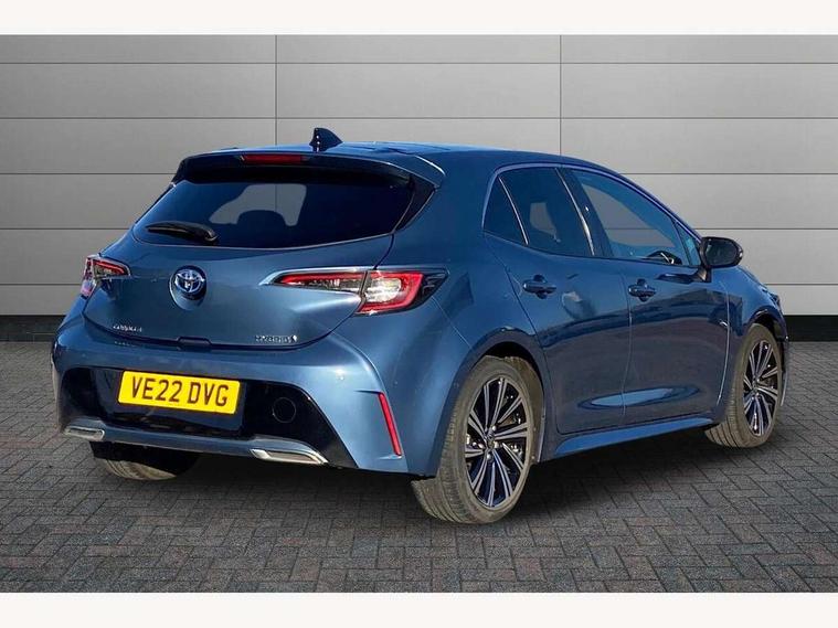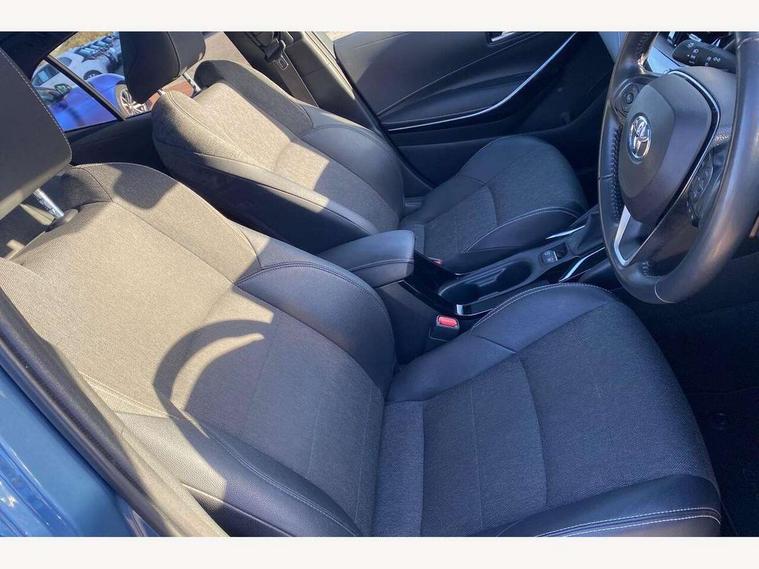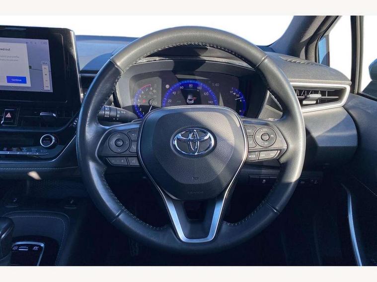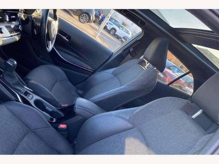 7" Multi information display screen, Bluetooth telephone connectivity, Connected car functionality upgrade, tracker, remote status and e-care, Door trim and centre console material, Dynamic radar cruise control (with RSA) including switch on steering wheel, E-call, Electrically assisted power steering, EV drive indicator, Intelligent park assist, Lane Departure Alert (LDA) switch on steering wheel, Memory on adjustable speed limiter, Push button start, Reversing camera, Smartphone integration with Apple CarPlay and Android auto, Gasoline particulate filter, Vehicle Stability Control (VSC), 6 speakers, 8" Touchscreen with MM19 Multimedia system and voice recognition, AM/FM radio, DAB Digital radio, Toyota touch 2 with go navigation system, USB and Aux in connectors + 12V front outlet, Anti-jam protection on power windows, Auto dimming inside rear view mirror, Auto up and down function on all power windows, Automatic folding mirrors, Automatic headlights with high beam assist, Black metallic surround on lower front grille, Black toyota logo in front, Black window frames, Body colour rear spoiler, Body coloured bumpers, Body coloured door mirrors, Body coloured outside door handles, Follow me home headlights, LED daytime running lights, LED front fog lights, LED Headlights, LED High mounted stop light, LED rear combi lights with LED lightguide, Power adjustable heated door mirrors, Power front windows, Power rear windows, Privacy glass, Rain sensing wipers, Rear bumper with chrome plated inserts, Rear side wing doors, Rear window defogger, Rear window wiper, Reverse tilting door mirrors, Shark fin antenna, Time adjustment on intermittent wiper, Turning signal integrated indicators in door mirrors, Unique lower skirt, Unique side rocker with black insert, UV-filter on driver and passenger windows, 3 rear headrests, 3 seat bench in 2nd row, 3 spoke leather steering wheel + gear knob, 60/40 split folding rear seat, Adjustable speed limiter switch on steering wheel, Audio, multimedia and telephone switches on steering wheel, Blue ambient interior illumination to centre tray, front cup holders and front door trim, Boot light, Centre room light, Clean air filter, Driver and front passenger personal light, Driver and passenger assist grip, Driver and passenger sun visor with mirror and light, Dual zone automatic air conditioning with ECO mode switch, Fabric/synthetic leather upholstery, Front and rear cup and bottle holders, Front door pockets, Front head restraints, Front passenger seat, Heated driver and front passenger seats, Illuminated entry system in room lamp, ISOFIX seat fixing (2 fixings on rear outer seats), Leather gear shift with satin chrome on gear shift console, Leather style armrests, Manual height adjustable for driver and front passenger seat, Paddle shifts, Parcel shelf, Passenger seat back pocket, Pollen filter, Power adjustable lumbar support on driver seat, Power window switches with satin chrome inserts, Rear armrest with 2 cupholders, Rear passenger coat hooks (2), Satin chrome inside door handles, Shopping bag hooks in luggage compartment, Sliding armrest on centre console box, Slow opening glovebox with lights, Tilt/telescopic steering column, Voice recognition switch on steering wheel, Whiplash Injury Lessening (WIL) feature (active headrest) for seats, Parking pack - Corolla, Toyota safety sense 2 pack - Corolla, 3x3 point rear seatbelts, Adjustable driver and front passenger seat belt extender to top anchor point, Anti lock braking system + Electronic brake force distribution, Brake assist function, Child locks on rear doors, Downhill Assist Control (DAC), Electronic parking brake, Emergency brake light signal (EBS), Front passenger airbag on/off switch, Front seatbelt reminder, HAC - Hill start assist control, Rear seat belt reminder, Seatbelt pretensioners and force limiters, Supplemental restraint system (SRS) 7 airbags - dual driver, dual side curtain, side impact and driver knee airbags, Traction control, Tyre pressure warning system, Acoustic vehicle alert system (AVAS), Alarm with motion sensor and immobilizer, Remote central locking + deadlocks, Smart entry, Satin chrome dash trim, Soft touch texture on upper dashboard, Space saver spare wheel, Unique wheel finish with red wheel cap,
