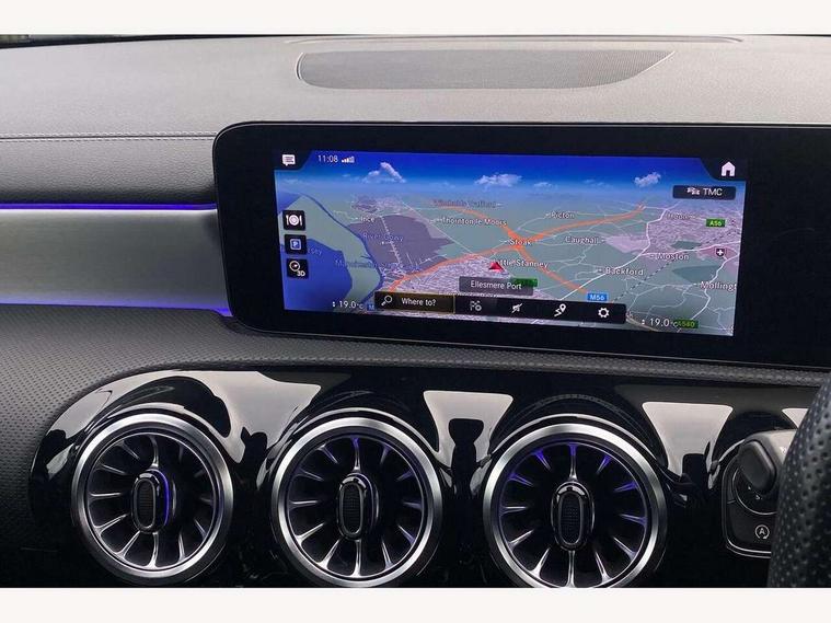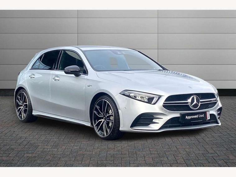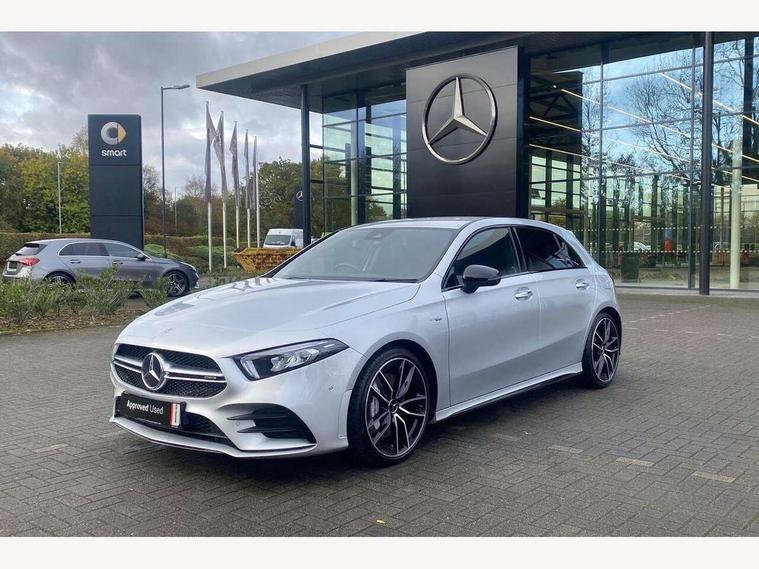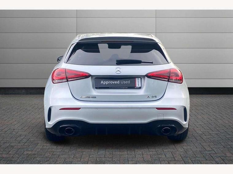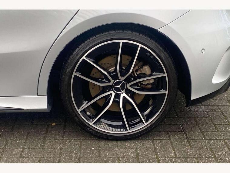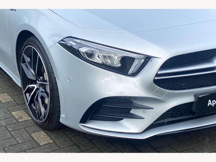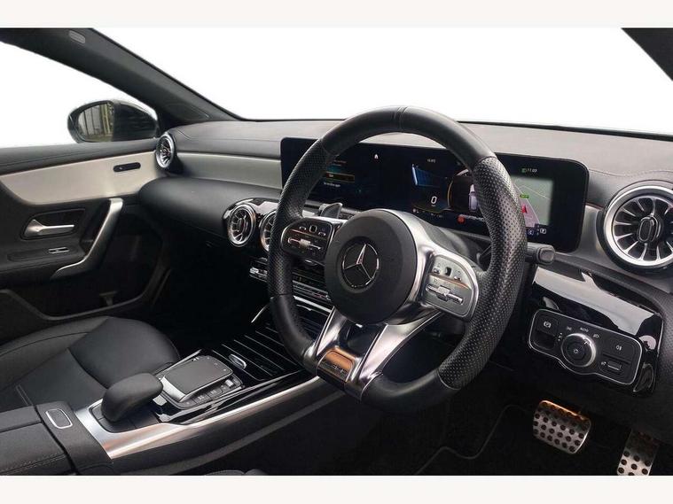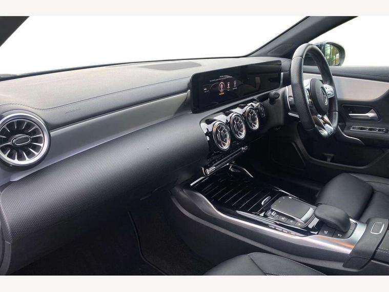 10.25" Digital instrument cluster display screen, 10.25" media display, 180 degree rear view camera with parking guidelines, Active parking assist with visual and audible warning of detected obstacles, Attention assist, Brake pad wear indicator warning light, Car wash mode, Cruise control + speed limiter, Direct steering, Dual bluetooth interfaces, DYNAMIC SELECT with driving programs (Slippery, Comfort, Sport, Sport+ and Individual), ECO start/stop function, Fluid level warning indicator for fuel, oil, coolant and washer fluid, Hard-disk navigation, Hey Mercedes Voice activation, Lamp failure indicator, Lane keeping system, Mercedes me connect including emergency call system, accident recovery, breakdown and maintenance management, Mercedes me remote services, Outside temperature gauge, Owners manual in English, Pre-installation for private car sharing, Preinstallation for Mercedes Benz link, Service indicator (ASSYST), Smartphone integration with Apple CarPlay and Android auto, Speed sensitive power steering, Trip computer, Ultrasonic sensors positioned in the front and rear bumpers, AMG performance suspension, Rear axle multi-link, 10 speakers, 2 USB ports (type C) in rear stowage compartment and one in front of center console, DAB Digital radio, MBUX multimedia system with DAB digital radio and touchpad including satellite navigation, Mercedes-Benz sound system - 100W, 4 Electric Front and Rear windows, Adaptive brake lights, AMG bodystyling - Front apron with splitter in chrome, rear apron with chrome trim and chrome visible trim elements in tailpipe, AMG Front apron with flics as air deflector elements on the outer air intakes, AMG radiator grille with twin blade lamella and AMG Lettering, AMG Rear apron with specific diffuser look with four vertical fins and two round chrome plated tailpipe trim elements with a diameter of 90 mm, AMG spoiler lip on roof, AMG Sports exhaust system with two round tailpipes measuring 90 mm in diameter attached in rear apron, AMG lettering plus ribbing on the inside of the, Automatic headlights, Black weather strip, Body colour bumpers, Body colour door handles, Body colour side skirt, Electric adjustable and heated door mirrors with integrated LED side indicators, Front wings wheel arches with TURBO 4MATIC lettering, Headlamp assist automatic headlamp activation, Heated glass rear windscreen + timer control, High gloss black beltline, LED High level third brake light, LED high performance headlamps with integrated LED daytime running lights, LED tail lamp, Privacy glass, Radio aerial, Rain sensing windscreen wipers with two sensitivity settings, Rear fog lights, Rear side wing doors, Rear wiper, Trim elements on louvres in outer air inlets in high gloss black, Wider wheel arches for AMG wheels, Window line trim strip in high gloss black, 3 seat bench in 2nd row, 40:20:40 split folding rear seats, AMG Performance steering wheel in nappa leather, Auto Mercedes-Benz child seat recognition sensor, Black air vents with surround in silver chrome, Black roof lining, Brushed stainless steel sports pedals with rubber studs, Controller on centre console with chrome surround, Floor mats with stitched edging and AMG lettering, Front centre armrest with storage compartment, Front seat backs luggage nets, Front seat cushion length adjustment, Heated front seats, Height/reach adjustable steering column, Illuminated AMG front door sills with changeable cover, Interior lighting - 64 colour Ambient lighting, Interior mirror with reading lamps in black and frameless, Manual height adjustable front seats, Rear armrest with 2 cupholders, Rear head restraints, Seat occupancy sensor for front passenger seat, Silver coloured aluminium gear shift paddles on steering wheel, Single front passenger seat, Sports seats with integrated headrests, Stowage compartment in centre console with retractable cover, Sunvisors with illuminated vanity mirrors, Touchpad on center console, Twin front cupholders, Two zone thermotronic luxury automatic climate control, AMG night pack - A Class, Light and sight pack - A Class, Mirror package - A Class, Seat comfort pack - A Class, 3 rear 3 point seatbelts, ABS with Brake Assist, Active bonnet, Active brake assist includes forward collision warning system with autonomous braking, Adaptive brake assist with hold function and hill start assist, Black seatbelts, Childproof locks manually operated for rear doors and electrically operated for rear power windows, Crash responsive emergency lighting, Driver and passenger head and side airbags, Drivers knee airbag, Dual stage driver/passenger airbags, Electronic parking brake, ESP curve dynamic assist, ESP with ASR, Front and rear seatbelt reminder, Front brake calipers with AMG lettering, ISOFIX and top tether child seat fixing points in two outer rear seats, Perforated front brake discs, Tyre pressure monitoring system, Warning triangle and first aid kit, Window airbags, Alarm system/interior protection/immobiliser, Keyless entry lock/unlock, Keyless Go, Remote central locking and crash sensor with emergency opening function, Urban guard vehicle protection system with immobiliser and interior protection, Light aluminium with longitudinal grain interior trim, 19" AMG 5 twin spoke light alloy wheels, Summer tyres, Tirefit sealant kit,