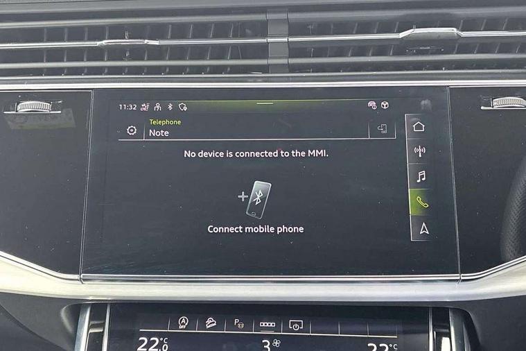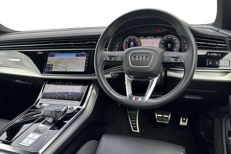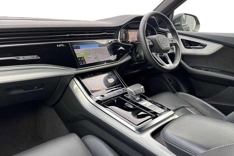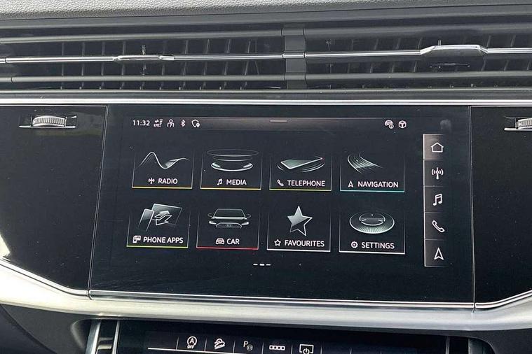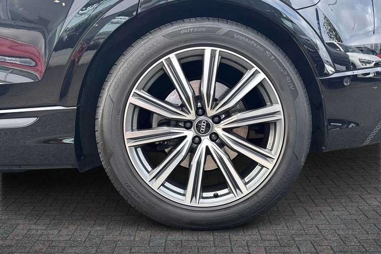 10.1" and 8.6" Dual colour touchscreens, Audi connect safety and service (e-call), Audi connect with Amazon Alexa Integration, Audi drive select, Audi parking system plus includes 360 degree display with front and rear sensors, Audi virtual cockpit - 12.3" high resolution LCD display with fully customisable instrument cluster, Automatic start/stop system, Electro-mechanical PAS, Low washer fluid indicator, MMI - Multi Media Interface control system, MMI navigation plus with MMI touch, Natural voice recognition, On board computer, Operating buttons in black, glass look with haptic feedback, Power operated tailgate, Rear view camera, Service interval indicator, Smartphone interface includes wireless Apple carplay/Android Auto, 48V Mild hybrid technology, Adaptive sport air suspension, Diesel particulate filter, Quattro all wheel drive with self locking centre differential, Audi music interface with 2 USB ports with charge and data functions, Audi sound system with 6 channel amplifier, 180 watt amplifying capacity and 10 loudspeakers including subwoofer, Aux-in socket, DAB Digital radio, 3rd brake light, Acoustic windscreen, Aluminium window trim, Audi HD Matrix LED headlights with dynamic front and rear indicators, Auto dimming frameless rear view mirror, Body colour door mirrors, Coming/leaving home lighting function, Electric front+rear windows, Electrically folding auto dimming/adjustable/heated door mirrors with memory function, LED side indicators and kerb view function for passenger side, Headlight washers, Heat insulating glass in windshield, Illuminated door sill trims with S line logo, LED signature daytime running lights, Platinum grey front spoiler lip and diffuser insert with honeycomb grille in black, Privacy glass - dark tinted rear and rear side windows from B-pillar backwards, Rain and light sensors, Rear side wing doors, Rear wiper, S line badges on front wings, S Line body styling, S line bumpers in full body colour paint finish, S line roof spoiler, S Line side skirts, S line side ventilation grille, 2 zone automatic climate control, 3 bench rear seats in 2nd row, 4-way lumbar support for front seats, 40:20:40 split folding rear bench seat, Black cloth headlining, Comfort front centre armrest, Driver seat memory function, Electrically adjustable front seats, Front head restraints, Front/rear floor mats, Heated front seats, ISOFIX child seat mounting for front passenger seat and 2 outer rear seats with top tether child seat mounting for all 3 rear seats, LED interior ambient lighting, Luggage compartment sill protection in stainless steel, Rear centre armrest with 2 cupholders, Rear headrests, Single front passenger seat, Stainless steel pedals, Sunvisors with illuminated vanity mirrors, 3 point seatbelts on all seats, Audi pre sense front, Child locks on rear doors, Driver and front passenger, front side and curtain airbags, Electromechanical parking brake, Electronic Stability Control (ESC) including ABS, ASR and EDL, Front passenger airbag deactivation, Hill descent control, Hill hold assist, Predictive pedestrian protection, Seatbelt monitoring, Traction control, Tyre pressure loss indicator, Warning triangle and first aid kit, Anti theft alarm with tow away protection, Anti-theft wheel bolts and wheel loosening detection, Immobiliser, Keyless go with remote central locking, Dark matt brushed aluminium inlay, Tool kit, Tyre repair kit,