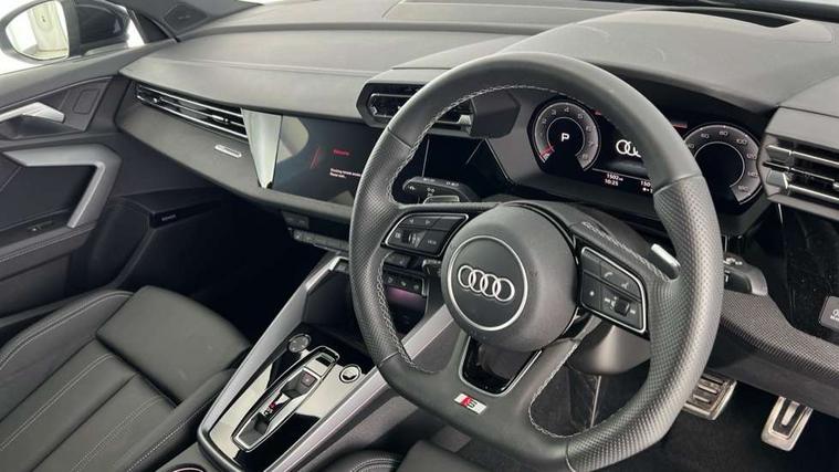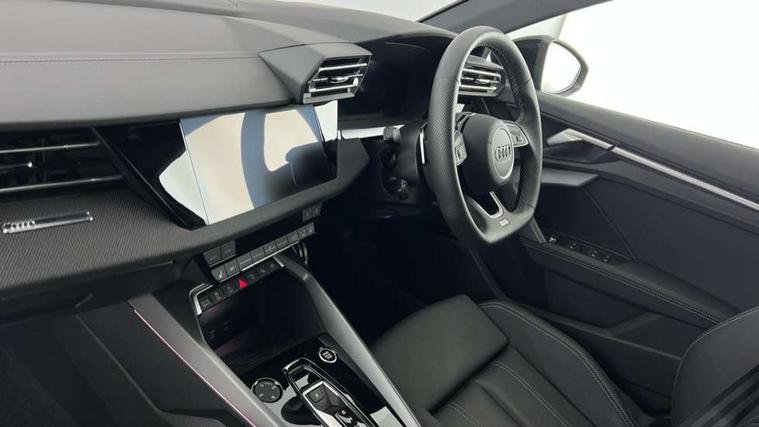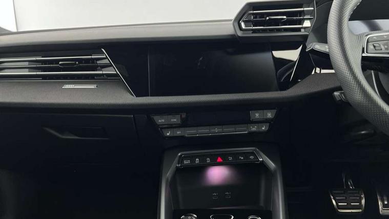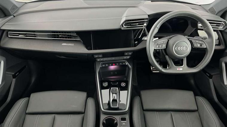 Adjustable speed limiter, Audi drive select, Audi smartphone interface with app store includes wireless Apple carplay, Android auto and Amazon alexa integration, Audi virtual cockpit plus - 12.3" full HD resolution dynamic digital instrument cluster, Automatic start/stop system with recuperation, Bluetooth interface, Camera based traffic sign recognition, Collision avoidance assistant, Cruise control, Distraction and Fatigue warning, e-Call (emergency call), Electromechanical power speed sensitive steering, Emergency assist, Lane departure warning system, MMI Navigation Plus with high resolution 10.1" colour touch screen display, Park Assist with parking system Plus, Service indicator, Trip computer, Voice control system with natural language interaction, Sports suspension, Audi Phonebox light with wireless charging, Audi sound system - 10 loudspeakers including centre loudspeaker and subwoofer, DAB Digital radio, USB ports with charging function in the rear, Acoustic glass windscreen, All weather light, Anthracite grey Audi rings (front and rear), Audi beam uses LEDs to project the Audi logo onto the ground as you exit your A3, Auto dimming frameless rear view mirror, Automatic dynamic range control, Black accents front and rear bumpers, Black accents in the area of the Audi single frame grille, Black accents window trims strips, Dipped beam, main beam, position light and turning light, Electrically adjustable/heated/folding/auto dimming door mirrors with integrated LED indications + kerb view function for passenger side, Exterior model badging, Front and rear side air inlets in grained matt black with dark liquid chrome frame, Front electric windows, Heat insulating glass windscreen, Illuminated door sills with aluminium inserts at the front with S logo, Intersection light, LED 3rd brake light, LED brake lights, LED daytime running x3, LED headlights with LED rear lights and dynamic rear indicators, LED rear number plate lights, LED reverse light, LED tail lights, Light and rain sensors, Manoeuvring light, Motorway light, Privacy glass - dark tinted rear window, rear door and side windows, Rear boot, Rear diffuser and grill in grained matt black with inlay in dark liquid chrome, Rear electric windows, Rear side wing doors, Static Cornering lights, 12V socket and storage compartment in front centre console, 3 seat bench in 2nd row, 3 spoke flat bottomed leather multifunction sport steering wheel with gear shift paddles, 3-zone deluxe automatic air conditioning, 4 way electrically adjustable lumbar support for driver and front passenger, 40/20/40 split folding rear seat bench, Black cloth headlining, Black front and rear floor mats, Front and rear centre armrest in artificial leather with contrasting stitching on armrests and instrument panel, Front and rear headrests, Heated front seats, Height and reach adjustable steering wheel, Manual boot compartment lid, Manually adjustable front seats, Rear centre armrest with cupholder, S badging on the steering wheel, Seat side bolsters, Single front passenger seat, Stainless steel pedals and front footrest in black, Twin leather upholstery with front sports seats S embossed logo, Aluminium interior elements pack - A3, 3x3 point rear seat belts, Driver and front passenger airbag with passenger airbag deactivation, Electronic Stabilisation Control (ESC) including ABS, ASR and EDL, First aid kit with warning triangle and 2 safety vests, Front side airbags with head airbags and interaction airbag, Hill hold assist, Pre-sense front with pedestrian and cyclist detection, Seatbelt monitoring, Tyre pressure loss indicator, Anti theft alarm, Anti-theft wheel bolts, Electronically operated child locks, Immobiliser, Remote central locking with safelock, Black dashboard,