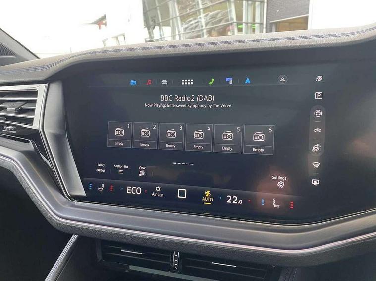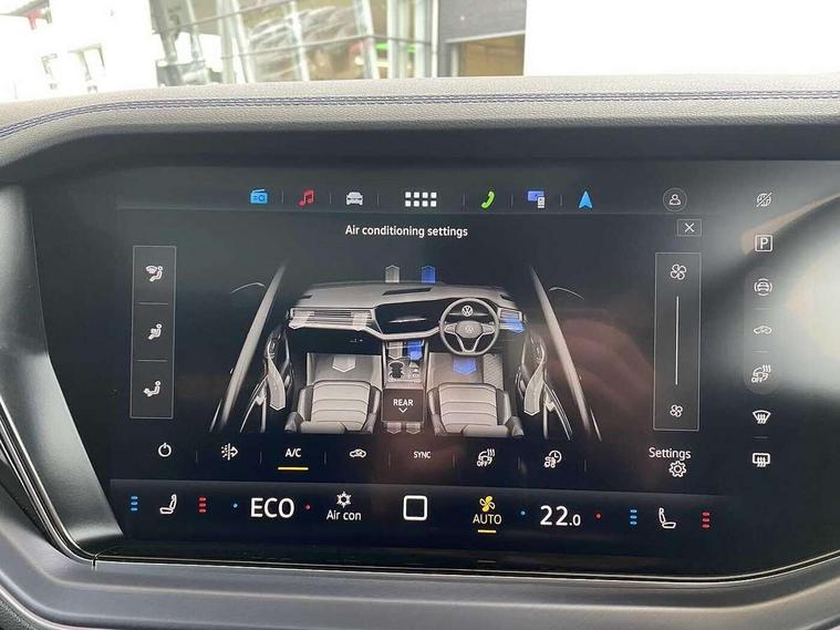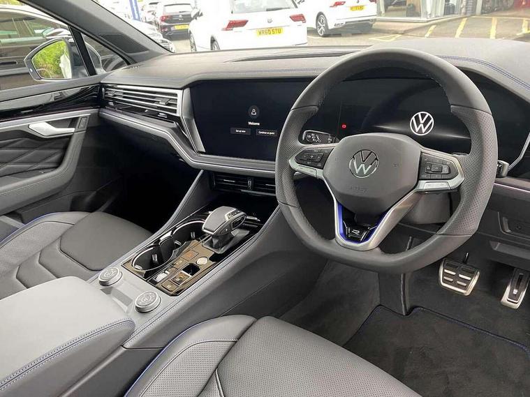 15" Screen Top infotainment system Premium (MIB3), Adaptive cruise control, Advanced driver attention and drowsiness monitor, Driver profile selection, Dynamic road sign display, E-Sim card for online connectivity, eCall emergency system, Innovision cockpit, Intelligent park assist, Mobile phone interface with inductive charging, Multi-colour Active Info display, Park Assist - Sensor controlled steering aid to assist parallel or bay parking, PAS, Warning signal and warning light for front and rear seatbelts not fastened, Wireless app connect, Adaptive chassis control, Air suspension, Charging cable - Mode 2 / 10-amp / 2.3 kW, Charging cable - Mode 3 / 32-amp / 7.2 kW, Standard electronic engine sound actuator, DAB Digital radio, Diversity antenna for AM/ FM reception, We Connect and We Connect Plus functionality, Automatic coming/leaving home lighting function, Automatic headlights, Black door mirrors, Black style comfort bumpers, Dynamic headlight range control with dynamic cornering light, Electric front tilt/slide panoramic sunroof and fixed rear sunroof, Electrically power adjustable, heated, folding, auto dimming, front passenger exterior door mirror lowering function, External USB type C socket and charging sockets, Gloss black roof rails, HD LED Matrix beam plus digital headlight projection with variable light distribution, Headlight washers, Highway light, LED 3rd brake light, LED daytime running lights, LED rear combination lamp with variable lighting functions and special styling, Poor weather light, Rain sensor, Rear exhaust tailpipe, Rear fog light with back up light on both sides, Rear light bar and illuminated logo, Rear side wing doors, Rear wiper, Stainless steel door sill protection, 12V socket in centre console, 3 rear headrests, 3 seat bench in 2nd row, 30 colours options interior ambient lighting, 4 zone climate control, Additional Interior Lighting, Airbag label on sun visor and B-pillar, Brushed stainless steel pedals, Door and side trim panel with Leather quilting, Double sun visors with illuminated vanity mirrors, Front + rear carpet mats, Front centre armrest, Illuminated scuff plates in door apertures, Leather wrapped multifunction sports steering wheel, heated, with touch control and shift paddles, Mechanical rear seat release, Power adjustable lumbar support in front, Power seats in front, right side with memory features and seat cushion depth adjustment, Puglia leather upholstery with "R" ergoComfort, Rear seat backrest and split folding with center armrest, Single front passenger seat, Memory pack plus - Touareg, 3 point seatbelts, outer rear with ECE lable, ABS, Child locks on rear doors, Curtain airbags, Disc brakes in front blue with R-Logo, Disc brakes in rear blue, Driver and front passenger safety-optimised head restraints, Driver/Front Passenger airbags, Extended pedestrian protection measures, Front assist, Front seat side impact airbags, Generative braking with start and stop system, Height adjustable 3 point front seatbelts with pre tensioners, Passenger airbag deactivate switch, Three 3 point rear seatbelts, Two tone horn, Warning triangle and first aid kit, Alarm system with interior protection, Easy open and close sensor controlled luggage compartment opening and closing with remote unlocking, Keyless Access Keyless locking and starting system with SAFELOCK, Aluminium decorative inserts, Black decorative trims, Gloss black decorative inserts in centre console, 285/35 R22 106Y XL Low rolling resistance tyres, Tool kit, Tyre mobility kit including compressor and sealing foam,