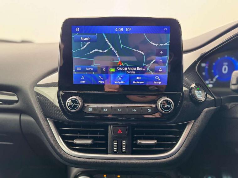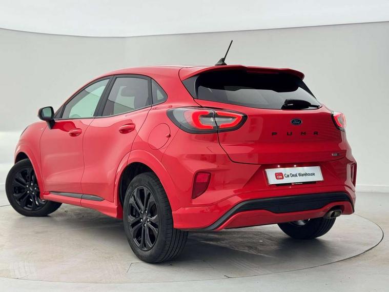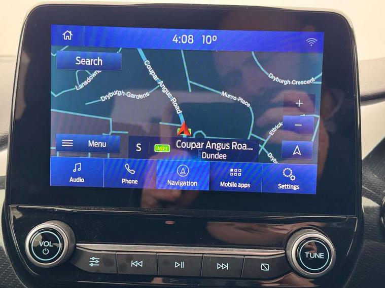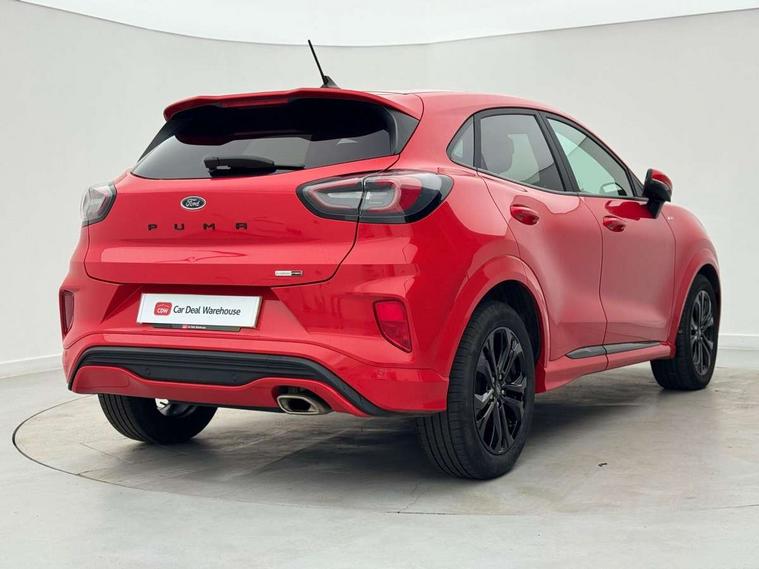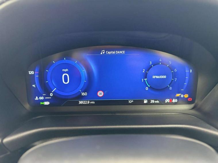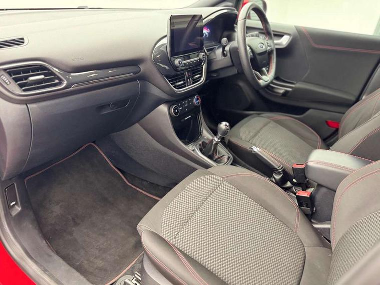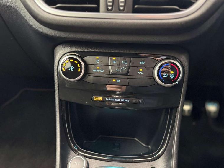 Ford easy fuel, Full digital 12.3" instrument cluster, Power assist steering, Power start button, Rear parking sensor, Selectable drive modes(Normal, sport, Eco, trail, slippery), Automatic rain sensing wipers, Body coloured door mirrors, Front fog lights with cornering lights and LED rear lamps, Power foldable heated door mirrors with puddle lamps, Projector headlamps with LED day time running lights, Quickclear heated windscreen, Rear wiper, ST-Line body kit with large rear spoiler wth sports suspension, Centre console with armrest and stowage, Cloth upholstery, Driver seat height/lumbar adjust, Ford megabox extended bootspace, Front and rear floor mats, Front and rear head restraints, Manual air conditioning, ST-Line flat bottomed sensico leather steering wheel with leather handbrake and aluminium gear knob, Driver assistance pack with Lane departure warning - Puma, Ford SYNC 3 navigation pack - Puma, 3 rear seatbelts, Electronic stability control (ESC) and hill start assist, Pedestrian/cyclist detection & post-collision braking, Tyre pressure monitoring system (TPMS), Thatcham alarm,