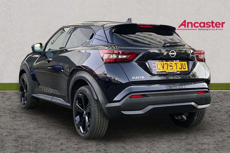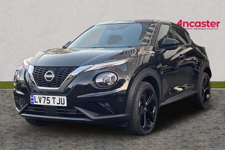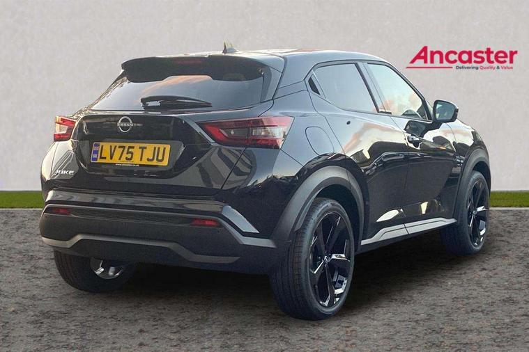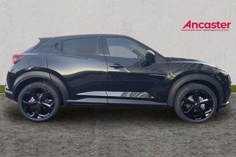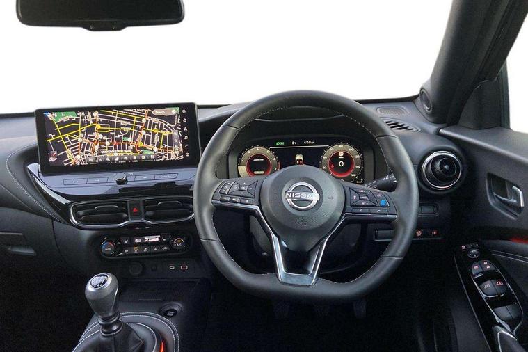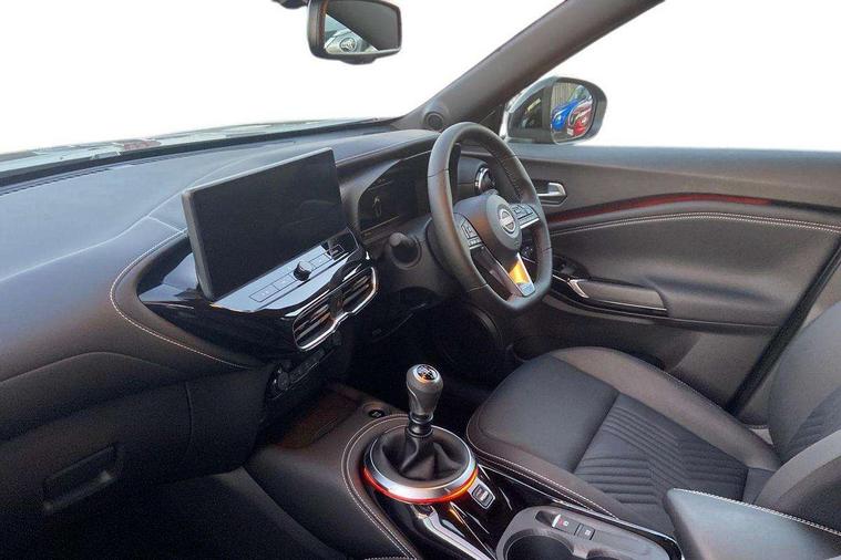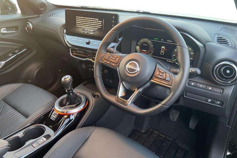12.3" full colour TFT screen combimeter, Drive modes select (Eco, normal and sport), Emergency and breakdown call, Front parking sensor, Idle start/stop system, Intelligent driver alert system, Intelligent lane intervention, Lane departure warning system, Nissan connect 12.3" touch screen entertainment system, Nissan connect nav with TomTom traffic, Nissan connect services, Outside temperature sensor, Power Steering, Rear parking sensor, Stop/start button, Traffic sign recognition, Trip computer, Voice recognition, WiFi connectivity, Wireless Apple CarPlay and Google Android auto, Wireless Smartphone charger, 10 Bose speakers 8 speakers and 2 headrest speakers for driver/passenger seats, 2 X Rear console USB port, Bluetooth system, USB, Aux-in and 12V socket, Bose personal plus audio system, DAB Digital radio, Auto dimming frameless rear view mirror, Automatic hazard signal with emergency stop signal, Body colour door handles, Electrically adjustable door mirrors with integrated indicators, Follow me home headlights, Front and rear electric window with one touch driver window, High beam assist, LED 3rd brake light, LED daytime running lights, LED front fog lights, LED headlamps, LED rear fog lamp, LED rear lamps, One touch passenger window, Rear privacy glass, Rear side wing doors, Rear wiper, Roof spoiler, Shark fin roof antenna in solid Black, Solid black door mirrors, Three blink turn signal, 3 height adjustable rear headrests, 3 seat bench in 2nd row, 60/40 split folding rear seat, Card holder on driver sunvisor, Door ambient lighting, Driver seat back pocket, Driver side rear coat hanger, Driver/passenger sunvisors and vanity mirrors, Front and rear cabin lights, Front armrest, Front door pockets with bottle holders, Front head restraints, Front/rear passenger grab handles, Gear console ambient circle lighting, Height adjustable driver's seat, Internal chrome door handles, Luggage board, Luggage space lighting, Monoform sporty seats, Multifunction steering wheel, Passenger seat back pocket, Rear door bottle holders, Single front passenger seat, Smooth synthetic leather steering wheel, Synthetic leather kneepad, Synthetic leather shift knob, Synthetic leather upholstery, Telescopic steering wheel adjustment, Two cupholders in front centre console, Two rear isofix child seat anchorage points with top tether, Welcome light and console tray ambient lighting, Advanced safety shield pack - Juke Manual, Comfort pack - Juke, Heat pack with height adjustable passenger seats - Juke, ABS with EBD and brake assist, Active ride control, Active Trace Control, Driver and passenger airbags, Driver and passenger side airbags, Electric handbrake with auto hold function, Electronic Stability Programme (ESP), Front and rear curtain airbags, Height adjustable seatbelts, Hill start assist, Intelligent emergency braking with pedestrian and cyclist recognition, Rear door child safety locks, Seatbelt reminder for driver/front passenger and rear seats, Three 3 point rear seatbelts, Traction control, Tyre pressure monitoring system, VDC Dynamic Vehicle Control, Alarm, Immobiliser, Intelligent key and start push button with walk away lock and approach unlock functions, Remote central locking, 19" Alloy wheels, Tyre puncture repair kit,