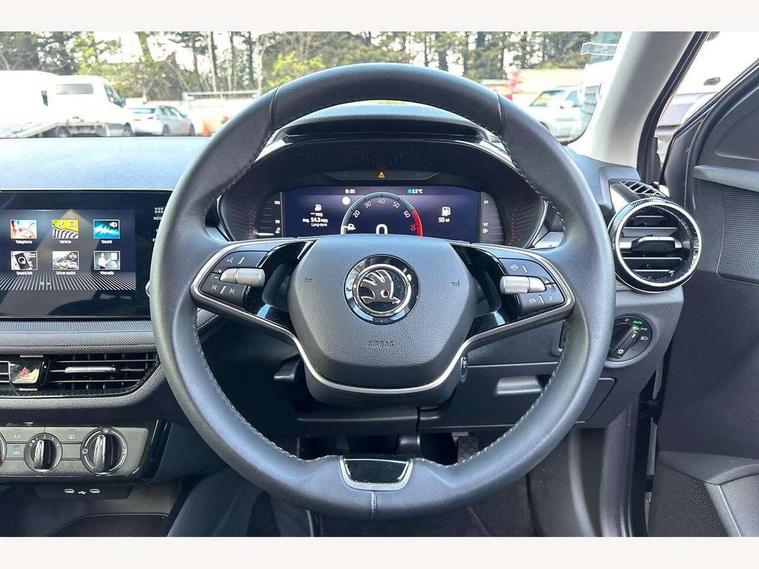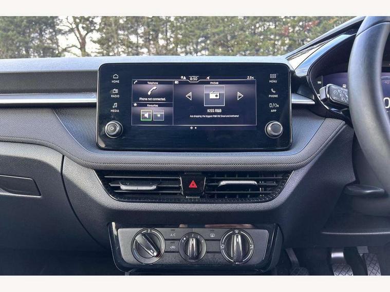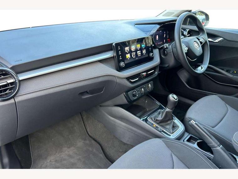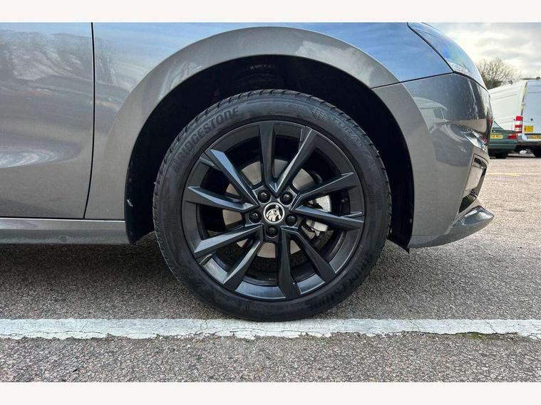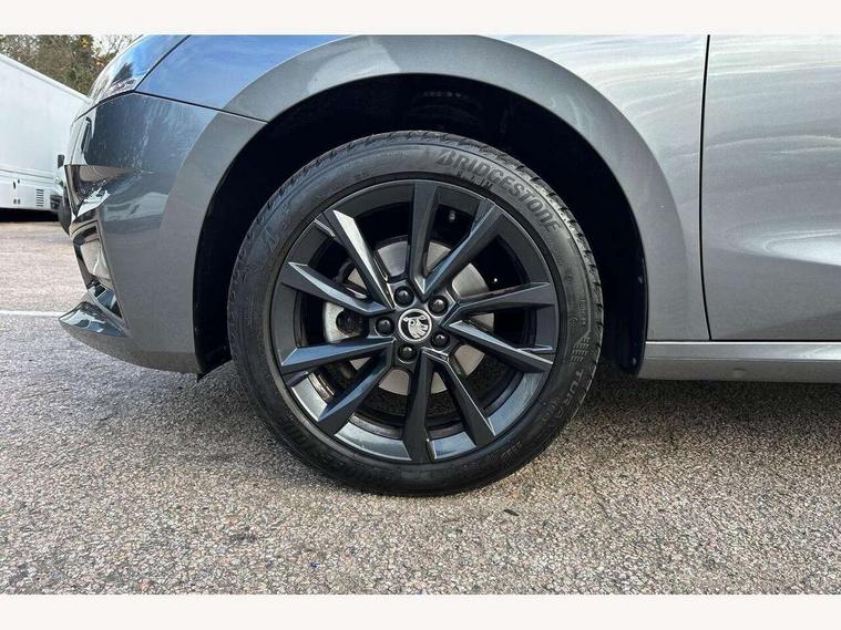 Advanced driver attention and drowsiness monitor, Bluetooth connection, Electromechanical power steering, Exterior temperature gauge, Service interval indicator, Traffic sign recognition, Virtual cockpit with 10.25" colour display, Wireless SmartLink for Apple CarPlay and Android Auto, 6 Speakers (4 in front and 2 in rear), Auxiliary socket for external MP3 player, DAB digital radio reception, Body coloured bumpers, Dimming rear view mirror with black frame, Door mirror integrated indicators, Front and rear electric windows, Front window wiper intermittent control, Headlight range control - Automatic, Ice scraper in fuel cap, LED daytime running lights with coming and leaving home feature, LED rear lights, Privacy glass, Rear LED fog light, Rear side wing doors, Rear window wiper with washing nozzles, Roof mounted spoiler, SKODA tailgate lettering in chrome, Third brake light, 2 reading lights in front and 2 reading lights in rear, 3 rear headrests, Backrest split and folding, Central console with removable cup holder and storage box, Chrome handbrake release button, Fabric upholstery, Front centre armrest, Gearshift knob/handle in leather, Grain satin black interior door handles, Hand brake lever handle in leather, Height adjustable front headrests, Height adjustable steering wheel, ISOFIX and TopTether anchorage points to the outer rear seats, ISOFIX and TopTether on the front passenger seat, Luggage compartment lighting, Manually adjustable lumbar support in front seats, Pollen filter, Rear seat bench unsplit, Single front passenger seat, Storm grey headlining, Sun visors with mirror and airbag label on passenger side, Textile floor mats, Ticket holder, Umbrella in drivers door, 3-point height adjustable front seats belts with pretensioner and force limiter, Automatic warning lights in case of crash, Driver and passengers airbag with switch off function, e-Call+, ESC including ABS, MSR, ASR, EDS, HBA and XDS, Front and rear seat belt warning, FRONT ASSIST (AEB City and AEB Inter Urban), Front side airbags, Head airbags, Hill hold control, One tone horn, Pedestrian protection, Three rear 3-points safety seat belts with pretensioner and force limiter including stop function for outer rear seat belts, Tyre pressure monitoring system, Anti-theft alarm system including immobiliser, interior monitoring, backup horn, and towing protection, Central locking with radio remote control, interior controls, SAFE function and 2 foldable keys, Colour Edition air vents, Grain satin black central console cover, Metallic grey upper decorative trim, Satin black door and side trim panel in front, Textile Kota grey lower decorative inserts, Anti-theft wheel bolts protection, Super-low rolling resistance tyres,