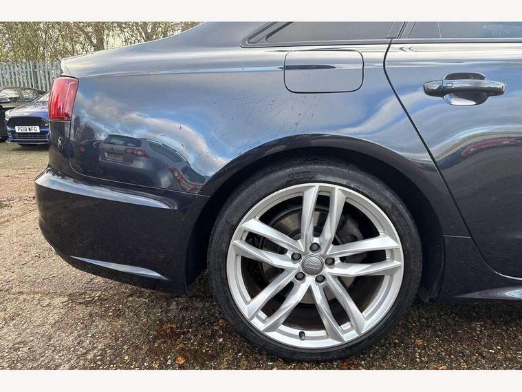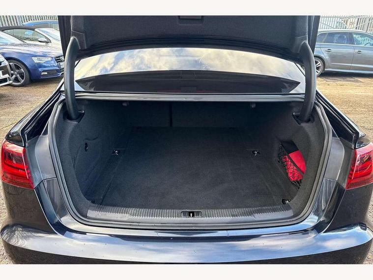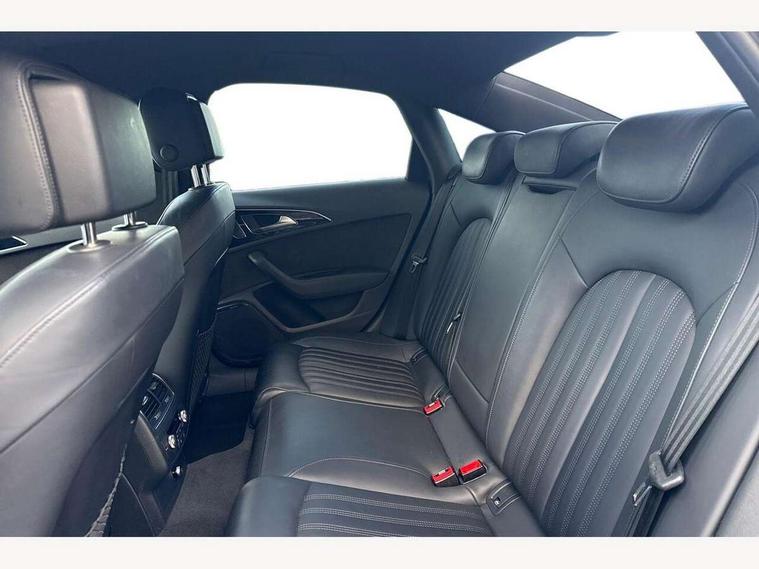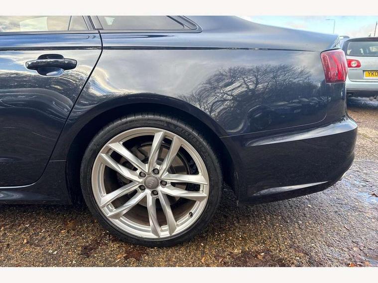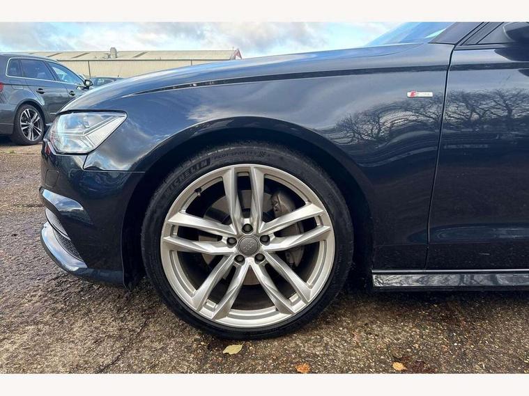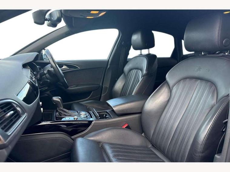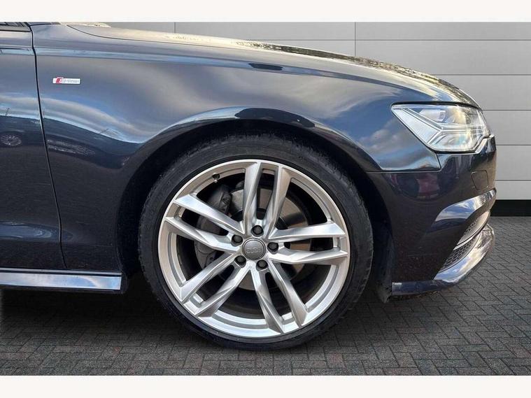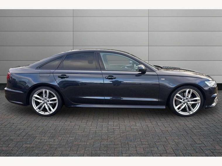 Audi drive select, Audi parking system plus with front and rear sensors, Audible and visual fasten seat belt warning - front and rear, Mobile telephone preparation - bluetooth interface, PAS, Service interval indicator, Diesel particulate filter, Audi music interface, Auxiliary input socket, DAB digital radio module, Auto dimming rear view mirror, Automatic headlights + automatic windscreen wipers, Body colour bumpers, Body colour door mirrors and handles, Body coloured door mirrors, Electric front/rear windows, Headlight washers, LED daytime running lights, LED rear lights, Platinum grey front lip spoiler, Privacy glass (to rear of B post), S Line body styling, 12 way electric front seats with driver's memory function, 12V power in rear centre console, 4 way electric lumbar support for driver and front passenger, 4 zone climate control, Aluminium door sill trims, Door sill trims with S line logo, Front centre armrest, Front head restraints, Front/rear floor mats, Height adjustable front seats, Height/reach adjust steering wheel, Isofix front passenger and rear seat preparation, Jack and tool kit, Perforated leather gearknob, Rear headrests, Split folding rear seat, Black styling pack - A6, Non smoking pack - A6, 3 point seatbelts on all seats, ABS/EBD, ASR traction control, Curtain airbags, Driver and passenger airbags, Driver/front passenger side airbags, Electromechanical parking brake, Electronic stability control, Front passenger airbag deactivation, Hill hold assist, Tyre pressure monitoring system, Warning triangle and first aid kit, Anti theft alarm, Anti-theft wheel bolts, Immobiliser, Keyless Start, Remote central locking, Alcantara door trim, Space saver spare wheel,