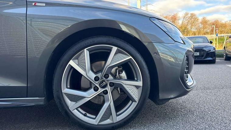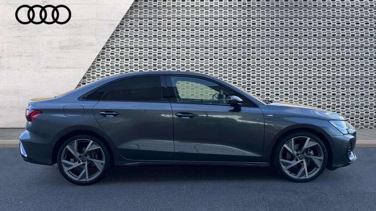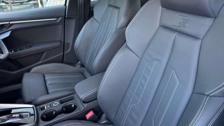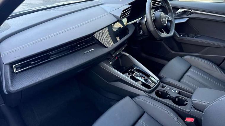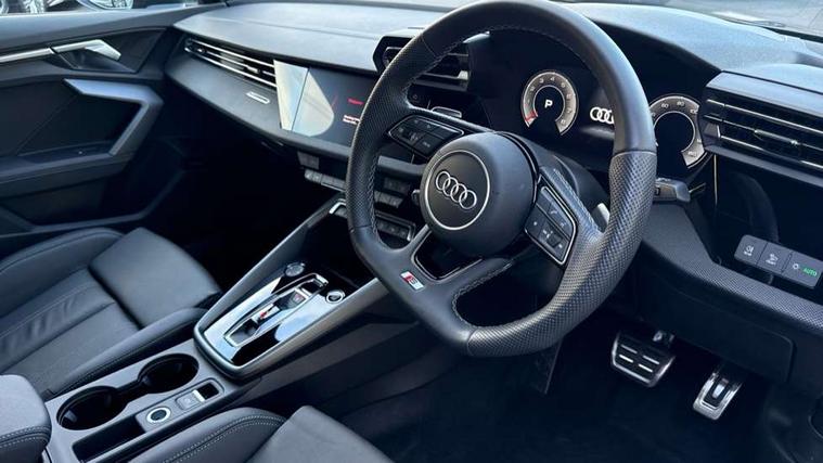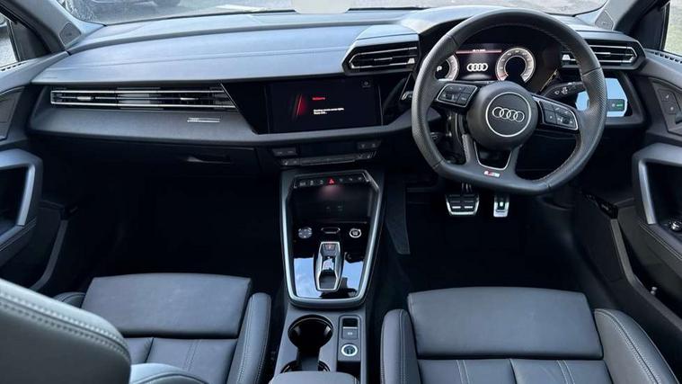 Adjustable speed limiter, Audi drive select, Audi smartphone interface with app store includes wireless Apple carplay, Android auto and Amazon alexa integration, Audi virtual cockpit plus - 12.3" full HD resolution dynamic digital instrument cluster, Automatic start/stop system with recuperation, Bluetooth interface, Camera based traffic sign recognition, Collision avoidance assistant, Cruise control, Distraction and Fatigue warning, e-Call (emergency call), Electromechanical power speed sensitive steering, Emergency assist, Lane departure warning system, MMI Navigation Plus with high resolution 10.1" colour touch screen display, Park Assist with parking system Plus, Service indicator, Trip computer, Voice control system with natural language interaction, Sports suspension, Audi Phonebox light with wireless charging, Audi sound system - 10 loudspeakers including centre loudspeaker and subwoofer, DAB Digital radio, USB ports with charging function in the rear, Acoustic glass windscreen, All weather light, Anthracite grey Audi rings (front and rear), Audi beam uses LEDs to project the Audi logo onto the ground as you exit your A3, Auto dimming frameless rear view mirror, Automatic dynamic range control, Black accents front and rear bumpers, Black accents in the area of the Audi single frame grille, Black accents window trims strips, Dipped beam, main beam, position light and turning light, Electrically adjustable/heated/folding/auto dimming door mirrors with integrated LED indications + kerb view function for passenger side, Exterior model badging, Front and rear side air inlets in grained matt black with dark liquid chrome frame, Front electric windows, Heat insulating glass windscreen, Illuminated door sills with aluminium inserts at the front with S logo, Intersection light, LED 3rd brake light, LED brake lights, LED daytime running x3, LED headlights with LED rear lights and dynamic rear indicators, LED rear number plate lights, LED reverse light, LED tail lights, Light and rain sensors, Manoeuvring light, Motorway light, Privacy glass - dark tinted rear window, rear door and side windows, Rear boot, Rear diffuser and grill in grained matt black with inlay in dark liquid chrome, Rear electric windows, Rear side wing doors, Static Cornering lights, 12V socket and storage compartment in front centre console, 3 seat bench in 2nd row, 3 spoke flat bottomed leather multifunction sport steering wheel with gear shift paddles, 3-zone deluxe automatic air conditioning, 4 way electrically adjustable lumbar support for driver and front passenger, 40/20/40 split folding rear seat bench, Black cloth headlining, Black front and rear floor mats, Front and rear centre armrest in artificial leather with contrasting stitching on armrests and instrument panel, Front and rear headrests, Heated front seats, Height and reach adjustable steering wheel, Manual boot compartment lid, Manually adjustable front seats, Rear centre armrest with cupholder, S badging on the steering wheel, Seat side bolsters, Single front passenger seat, Stainless steel pedals and front footrest in black, Twin leather upholstery with front sports seats S embossed logo, Aluminium interior elements pack - A3, 3x3 point rear seat belts, Driver and front passenger airbag with passenger airbag deactivation, Electronic Stabilisation Control (ESC) including ABS, ASR and EDL, First aid kit with warning triangle and 2 safety vests, Front side airbags with head airbags and interaction airbag, Hill hold assist, Pre-sense front with pedestrian and cyclist detection, Seatbelt monitoring, Tyre pressure loss indicator, Anti theft alarm, Anti-theft wheel bolts, Electronically operated child locks, Immobiliser, Remote central locking with safelock, Black dashboard,