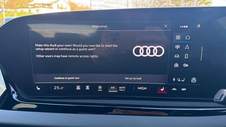 Adaptive cruise control, Advanced driver attention and fatigue montior, Audi application store, Audi assistant, Audi connect emergency call and service, Audi drive select, Audi smartphone interface, Audi virtual cockpit plus with 11.9" OLED colour display, Automatic start/stop system with coasting functionality, Camera based traffic sign recognition, Intersection assist, Lane departure warning, MMI navigation plus with high resolution 14.5" OLED touchscreen colour display, Park assist plus, Parking system plus with 360 display, Progressive steering with servotronic, Rear view camera, Swerve assist and turn assist, Traffic sign based speed limiter, Sports suspension lowered by 20mm, 2 USB-C ports in both the front and rear, Audi sound system impressive sound with 10 loudspeakers including centre speaker and subwoofer, 6-channel amplifier with a total output of 180 watts, DAB digital radio reception, Smartphone compartment with wireless charging, Aluminium window trims, Auto dimming rear view mirror, Body colour door mirrors, Door mirrors - electrically adjustable, heated, folding and auto dimming on both sides, Front and rear electric windows, Front door sill trims with aluminium inlays, illuminated with 'S' logo, High beam assist, LED headlights Plus incl. digital daytime running lights, turning light, all-weather light, motorway light, manouevring light and intersection light, LED rear lights pro incl. dynamic rear indicators and illuminated light strip with animated coming and leaving home function, LED third brake light, Privacy glass, Rear and side windows with heat insulating glass, Rear boot, Rear side wing doors, S Line badges on the front wings, S line bumpers, radiator grille and diffuser in phantom black and diffuser insert in matt anthracite, White rhombus logo projection light in exterior mirrors, Windscreen with acoustic glazing, 3 rear headrests, 3 seat rear bench, 3 spoke leather steering wheel with multi-function buttons with touch control, flattened on top and bottom, with S badging and contrast stitching, 3-zone automatic climate control, 40:20:40 split folding rear seat bench with centre armrest and cup holders, Comfort front centre armrest, Front and rear floor mats, Front seats with manual adjustment for position and 4-way electric lumbar support, Front sport seats with integrated headrest and S embossed logo, Headlining in black cloth, Heated front seats, i-Size child seat mounting on the front passenger side and outer rear seats, i-Size and top tether on the outer rear seats, Luggage compartment lid, electrically opening and closing, Manual steering column height and depth adjustment, Single front passenger seat, Stainless steel pedals and footrest, Steering wheel grips in perforated leather and shift paddles, Ambient lighting package plus - A5, 3x3 point rear seat belts, Driver airbag, Electric child safety locks, First aid kit with warning triangle and vests, Front emergency brake assist, Front passenger airbag, Front passenger airbag deactivation, Front side airbags with head airbag system and front interaction airbag, Hill hold assist, Seat belt monitoring with rear seat occupant reminder, Tyre pressure loss indicator, Anti theft alarm, Anti-theft wheel bolts, Keyless Go, Accent surfaces and control buttons in gloss black, Black dashboard with contrast stitching, Inlays in matt brushed aluminium with linear embossing, anthracite, Softwrap in leatherette with contrast stitching, Upper and lower interior elements in leatherette, Tyre repair kit,